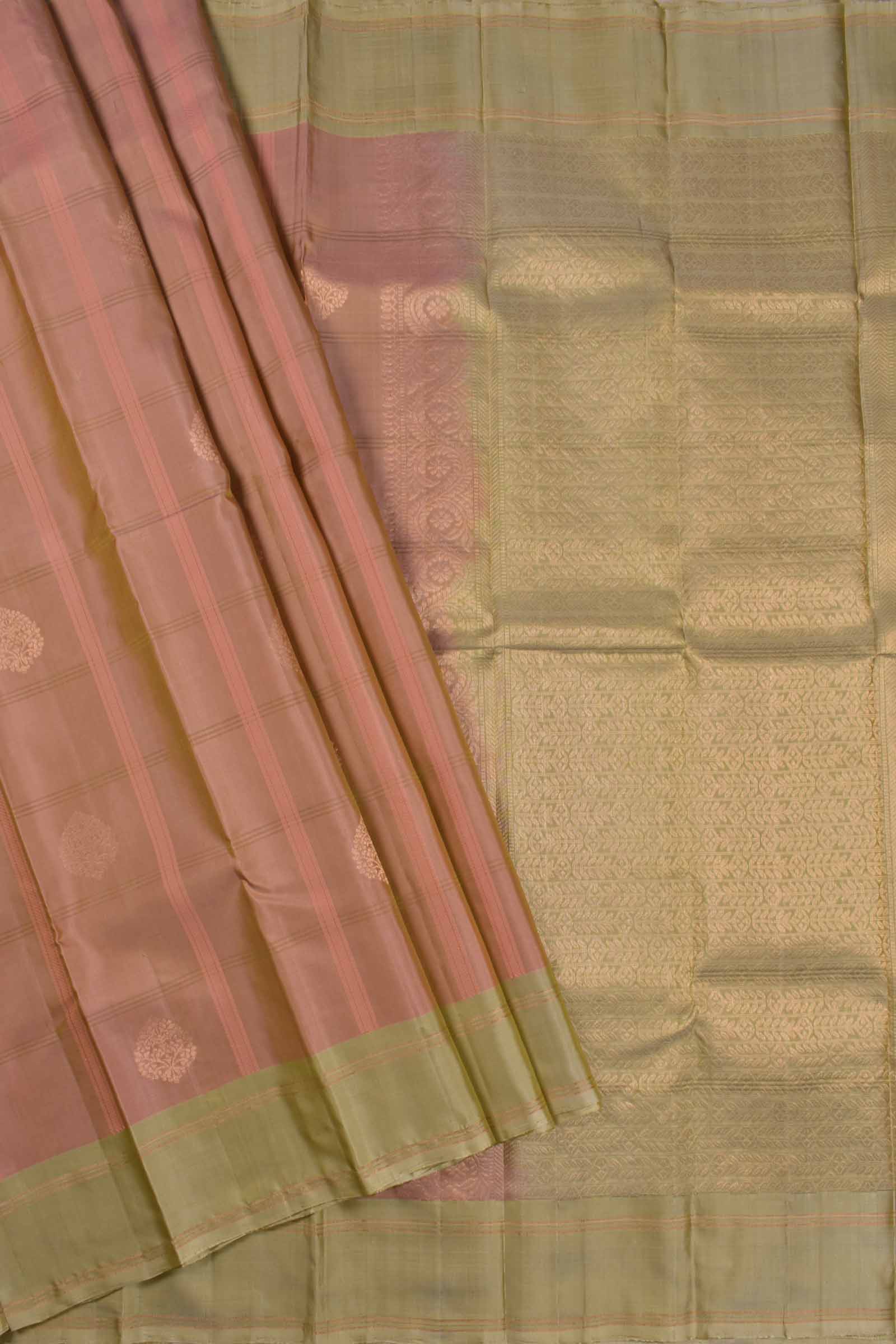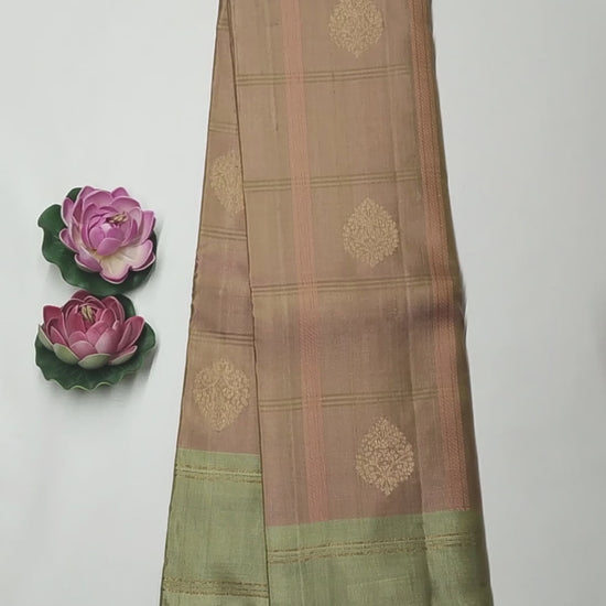 Light Copper Light Weight Pure Silk Fancy Butta Green Zari Border Pallu Saree NAA189