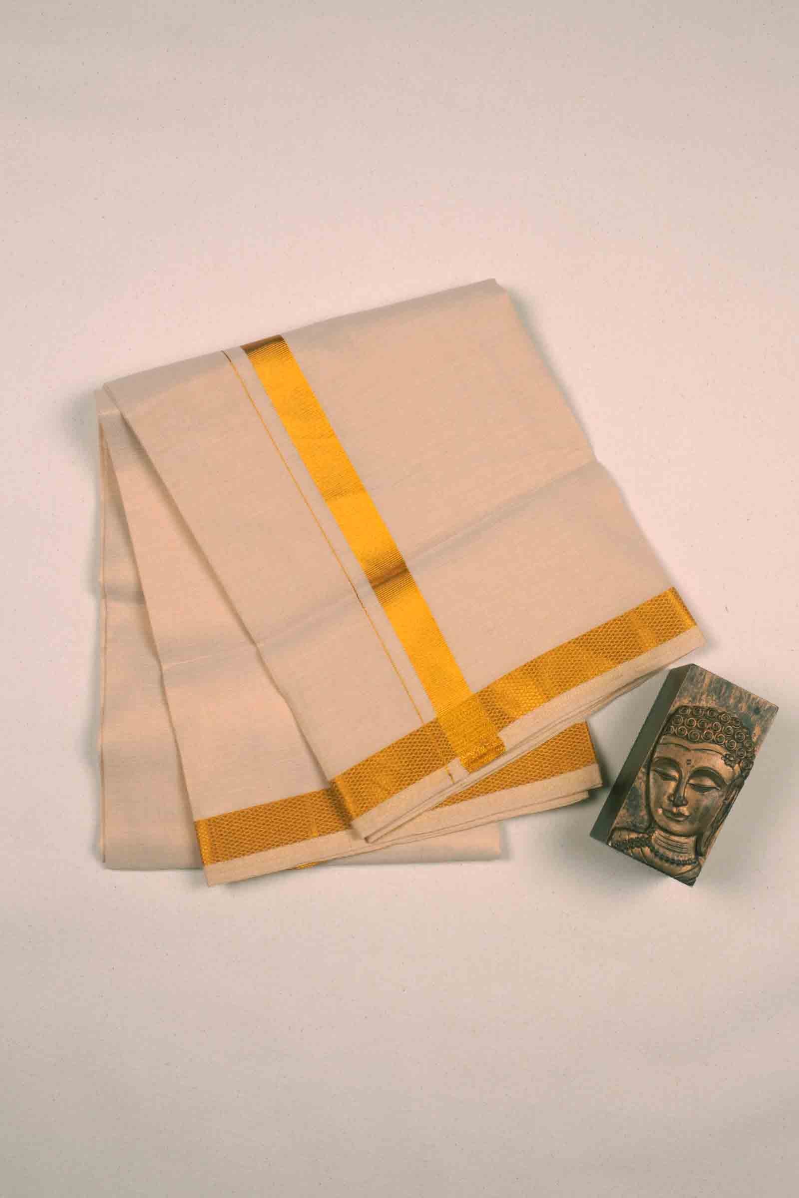 Light Golden Silk Traditional Golden Zari Border Mens Dhoti