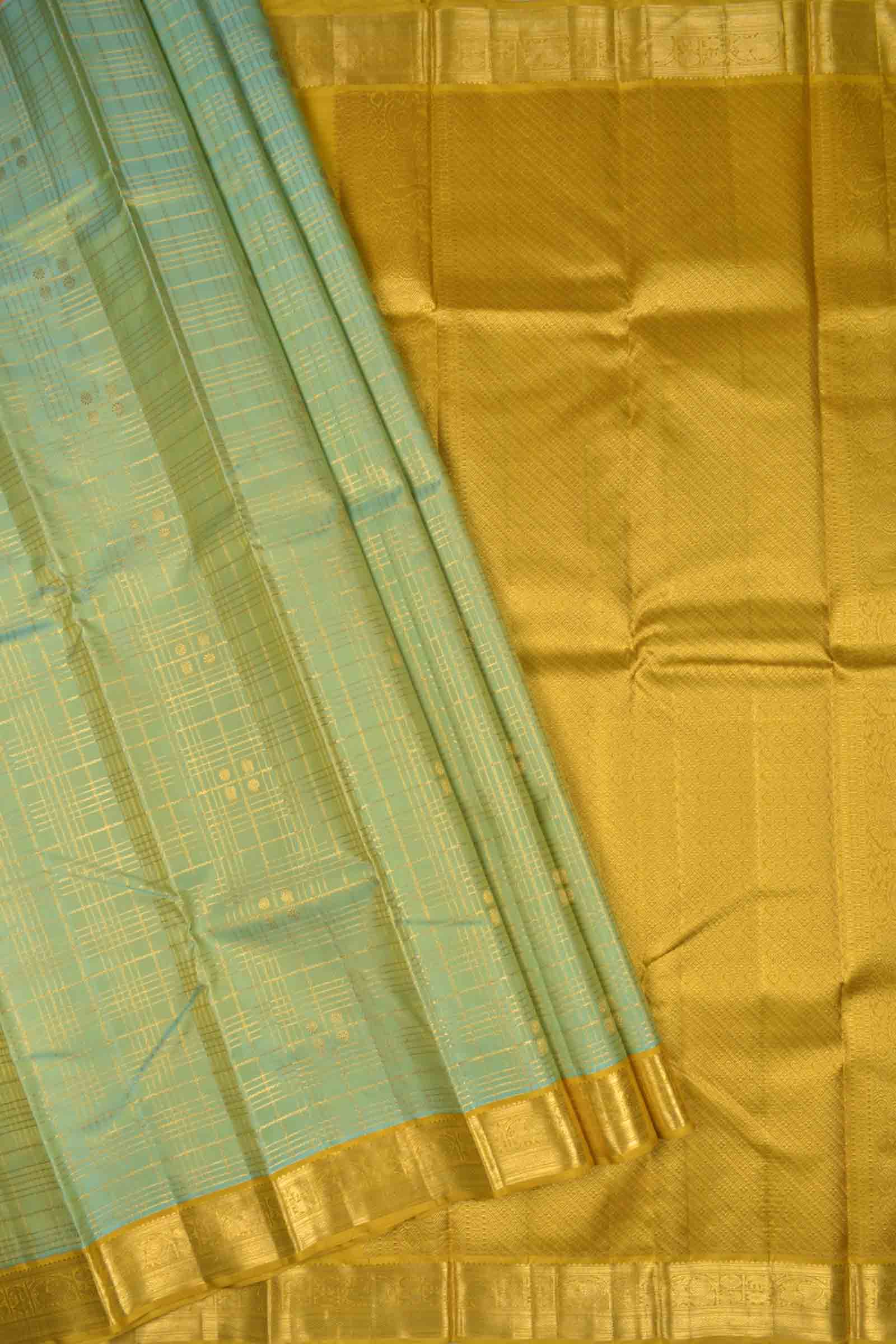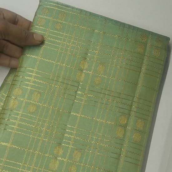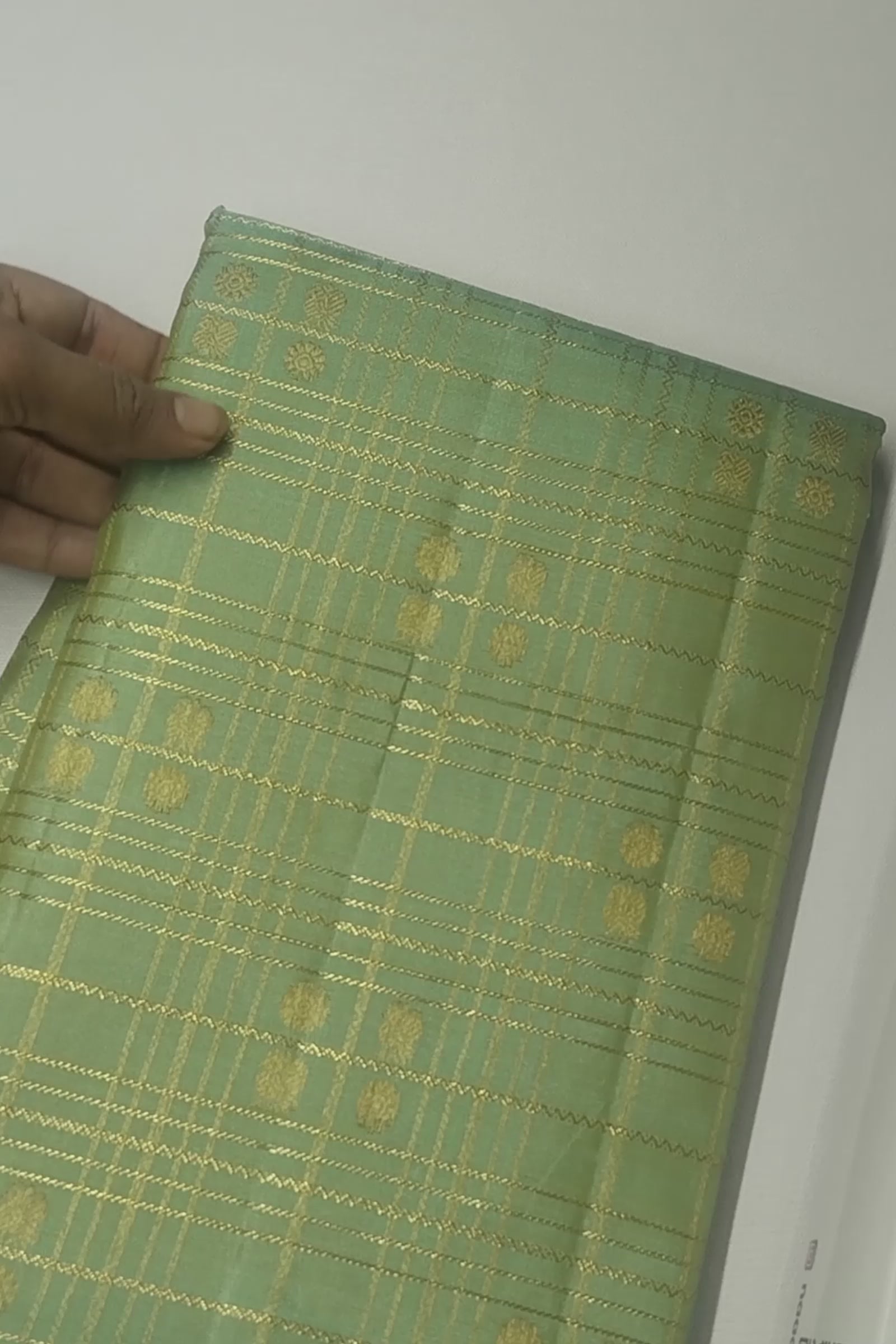 Light Green Light Weight Pure Silk Golden Checks Zari Border Saree NAA129