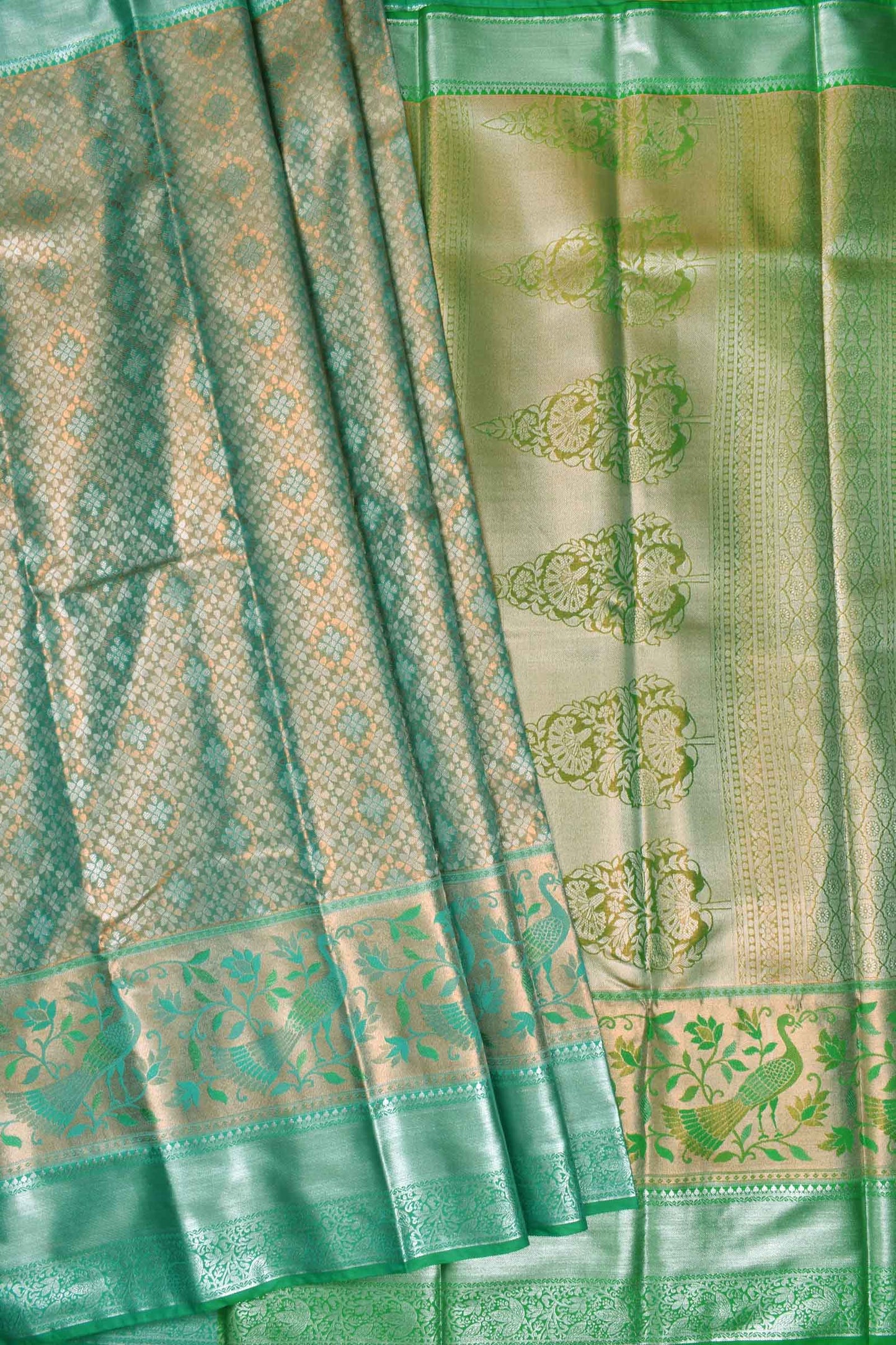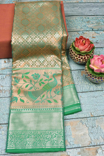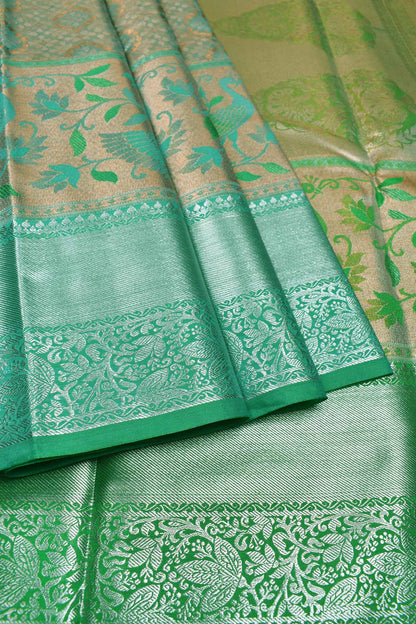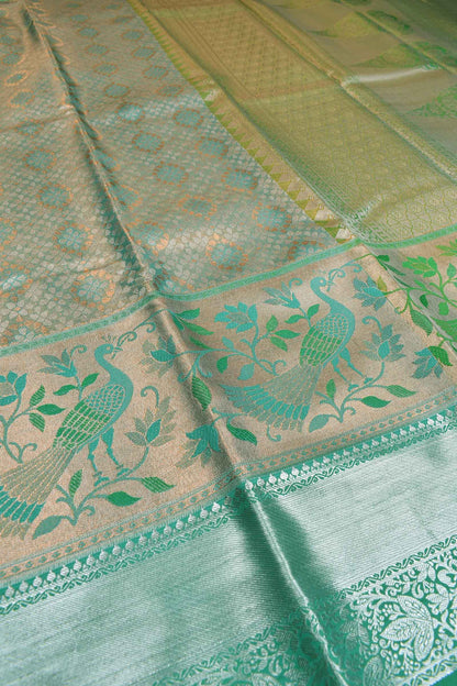 Light Green Semi Silk Peacock Border Bridal Tissue Saree