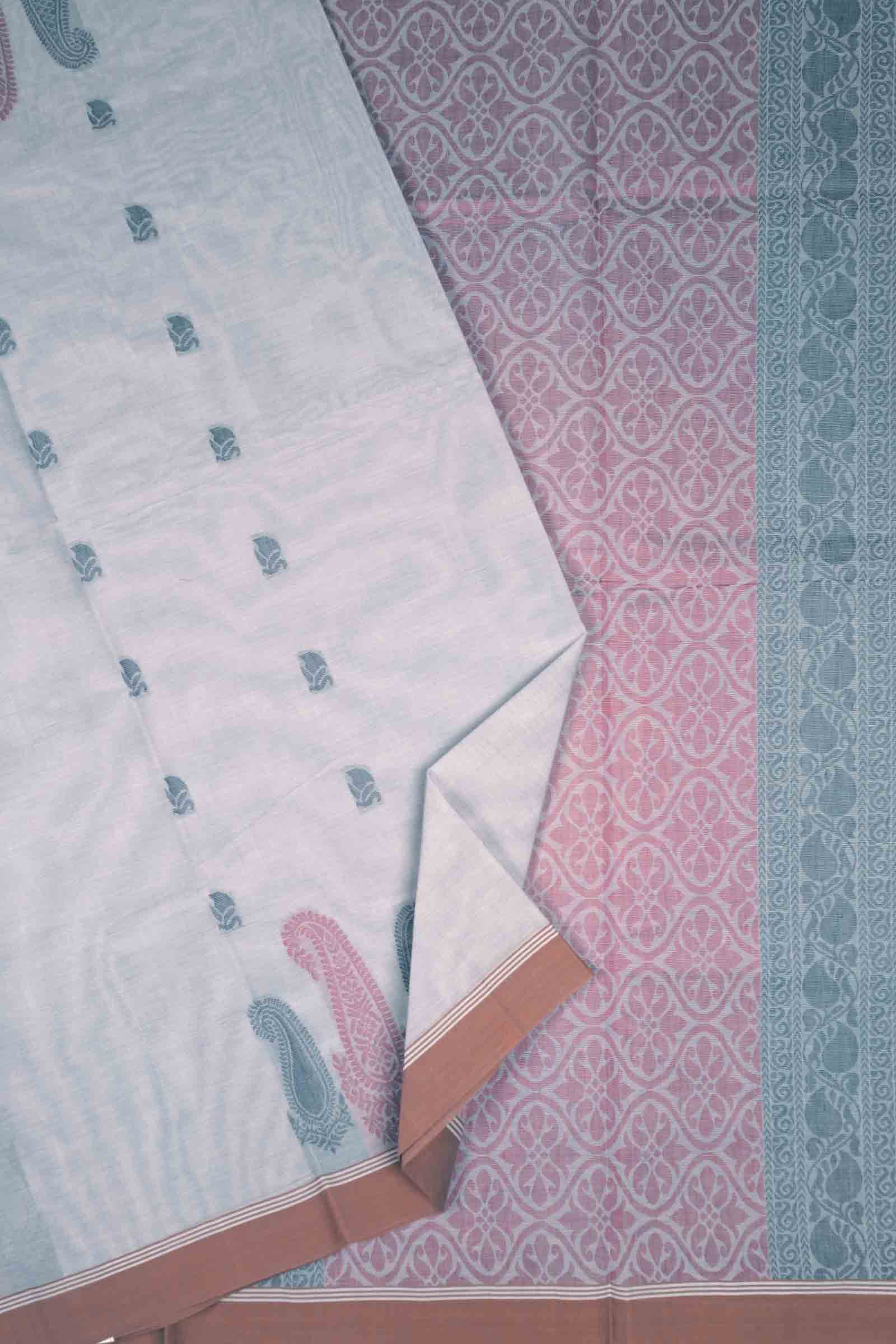 Light Grey Pure South Cotton Paisley Butta Saree