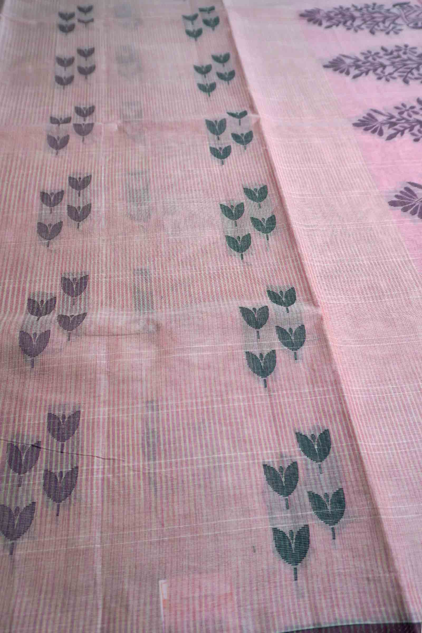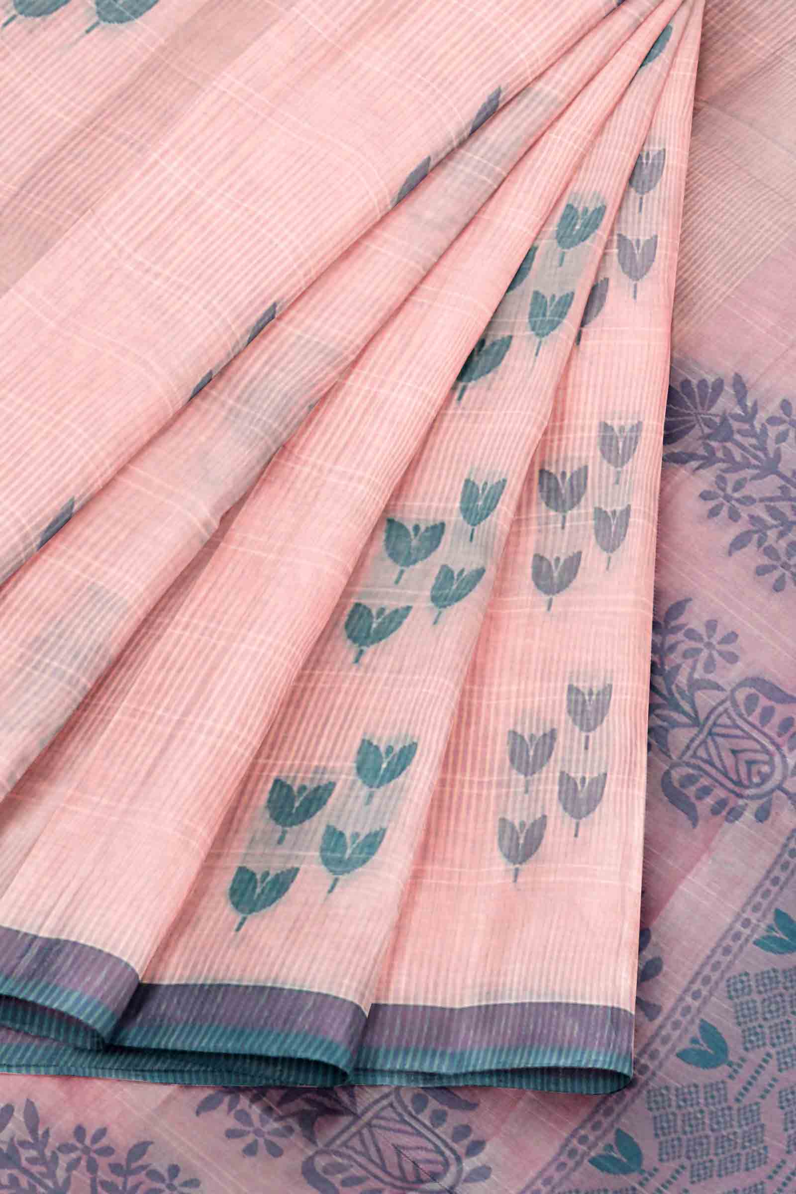 Light Pink Pure South Cotton Tulips Butta Saree - CHECKED
