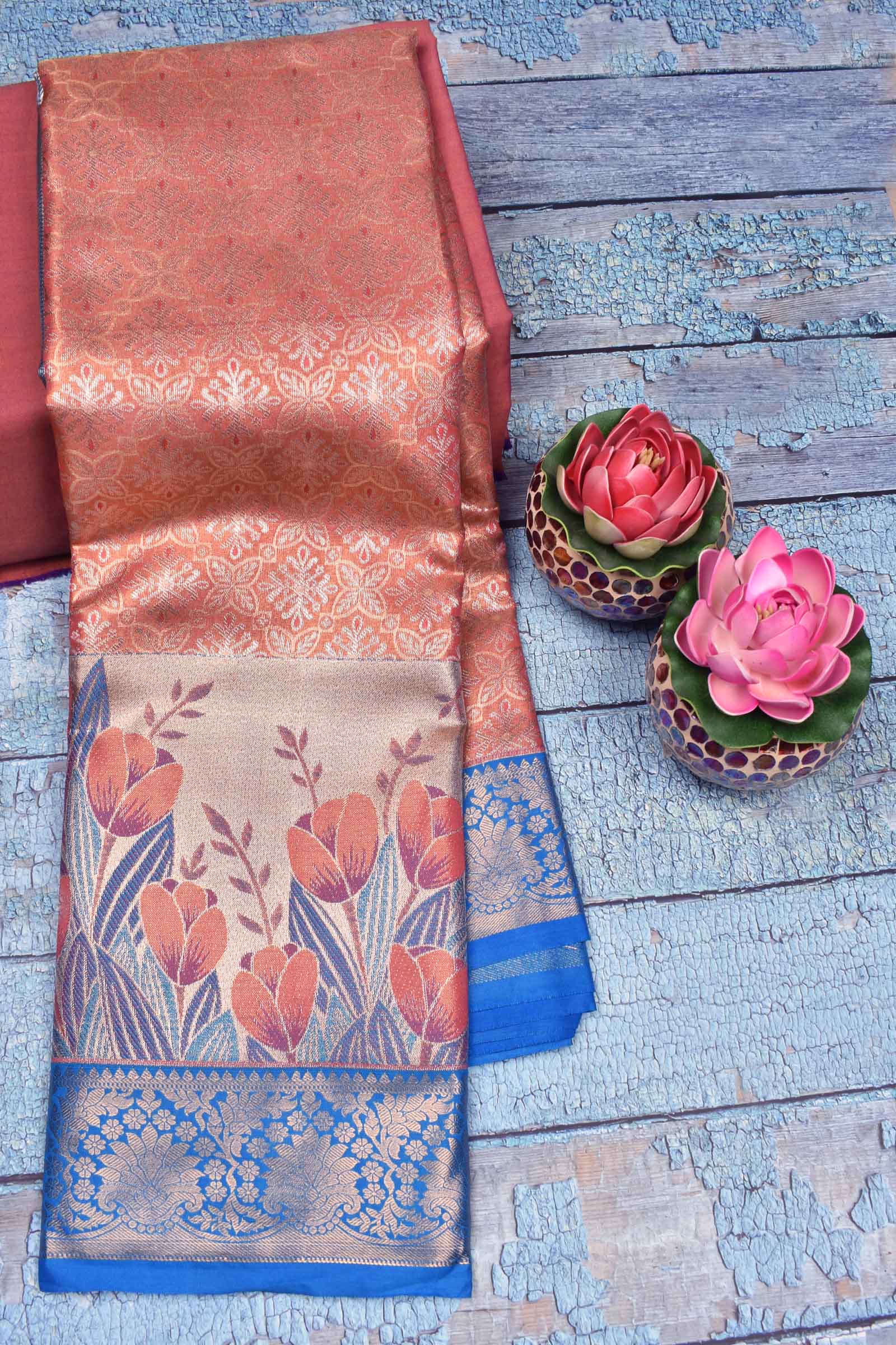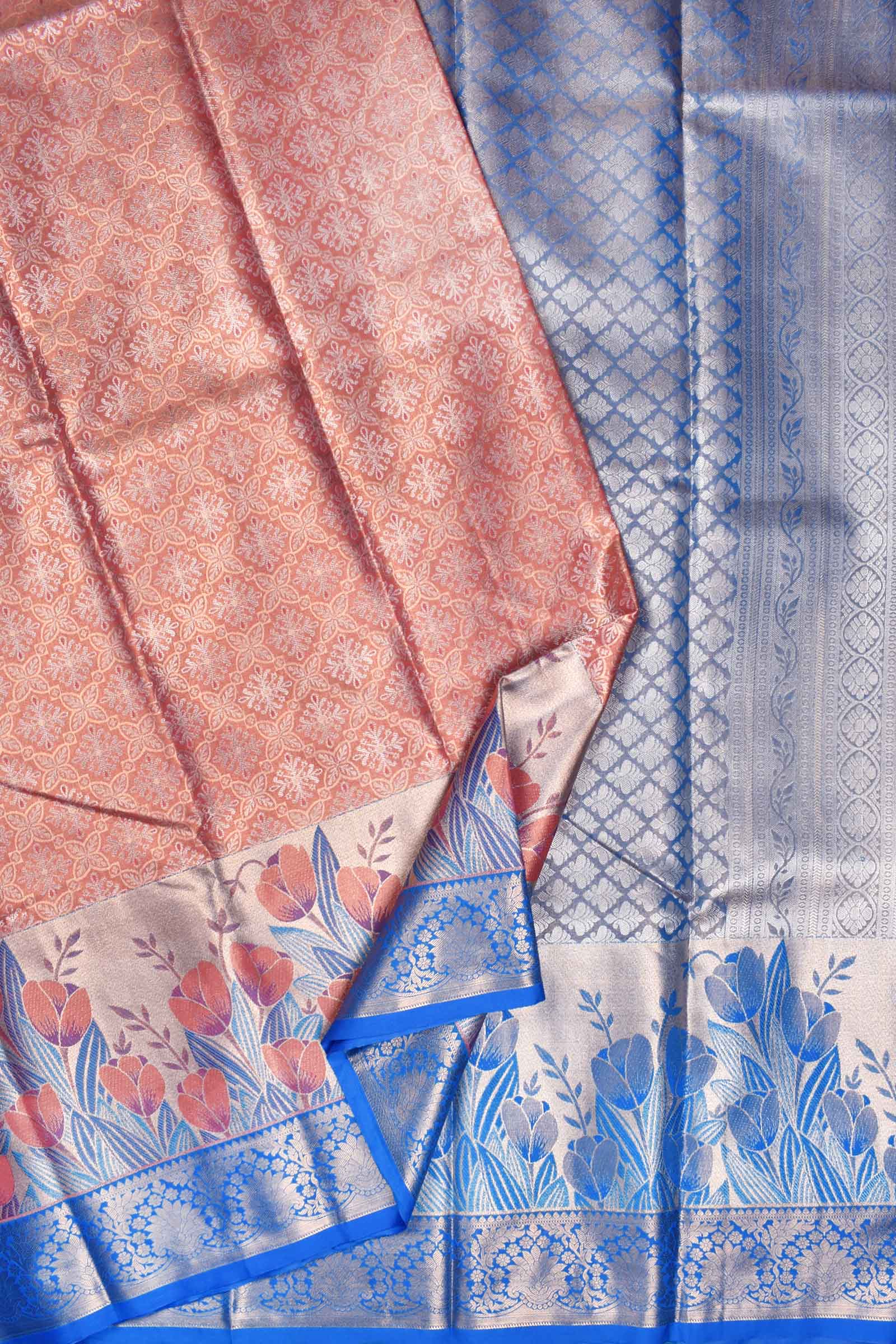 Light Orange Semi Silk All Over Jacquard Fancy Florals Contrast Border Bridal Tissue Saree