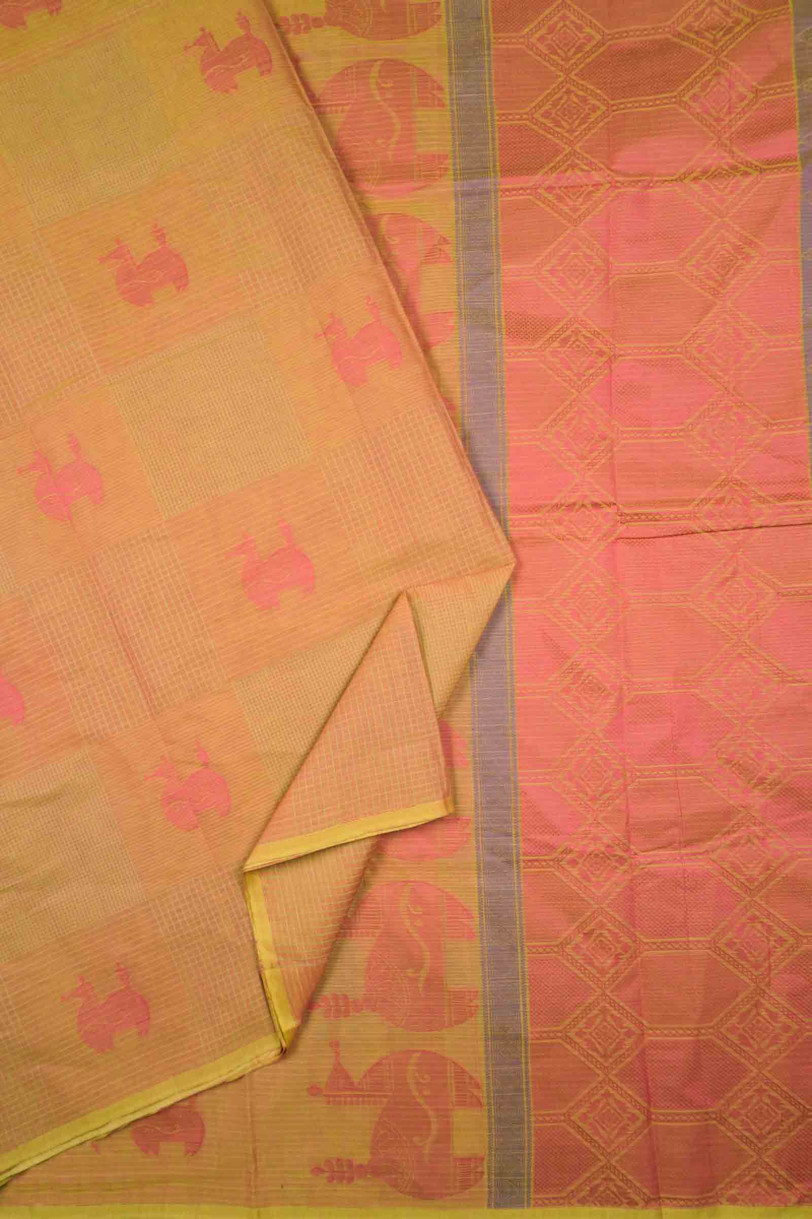 Light Orange Pure South Cotton Checks Llama Butta Saree