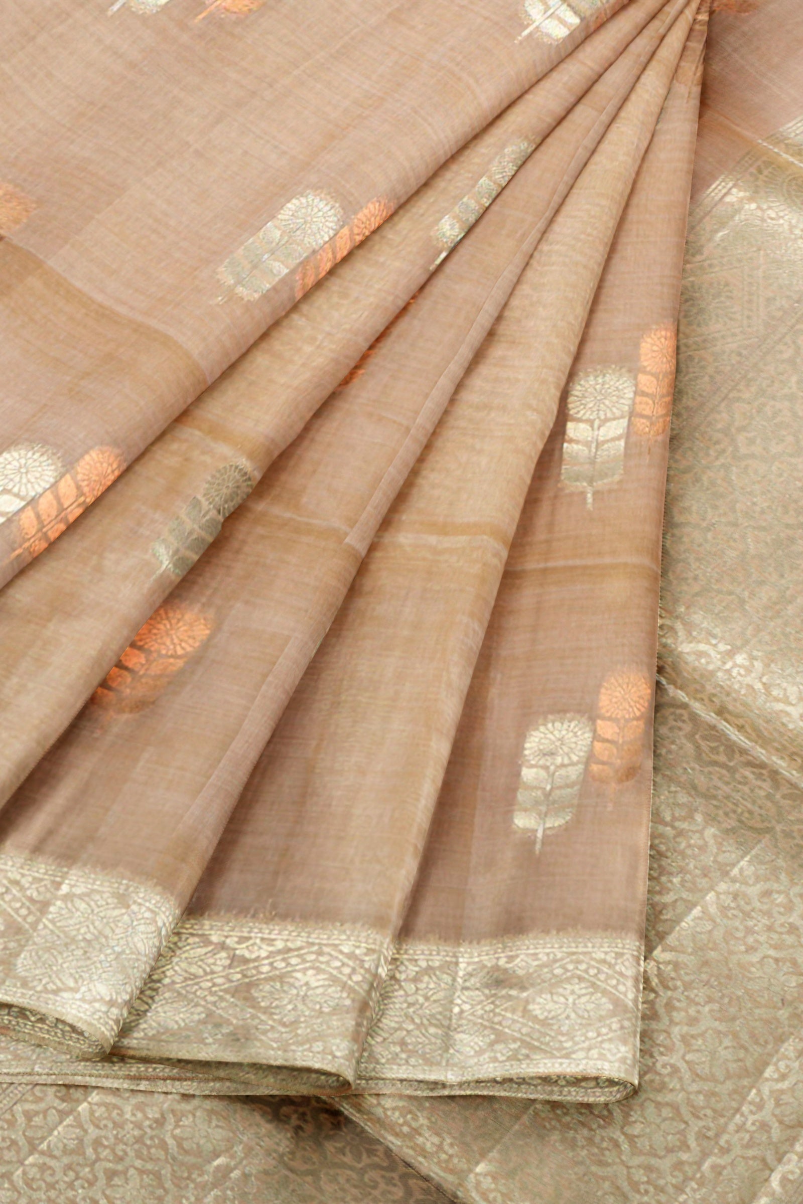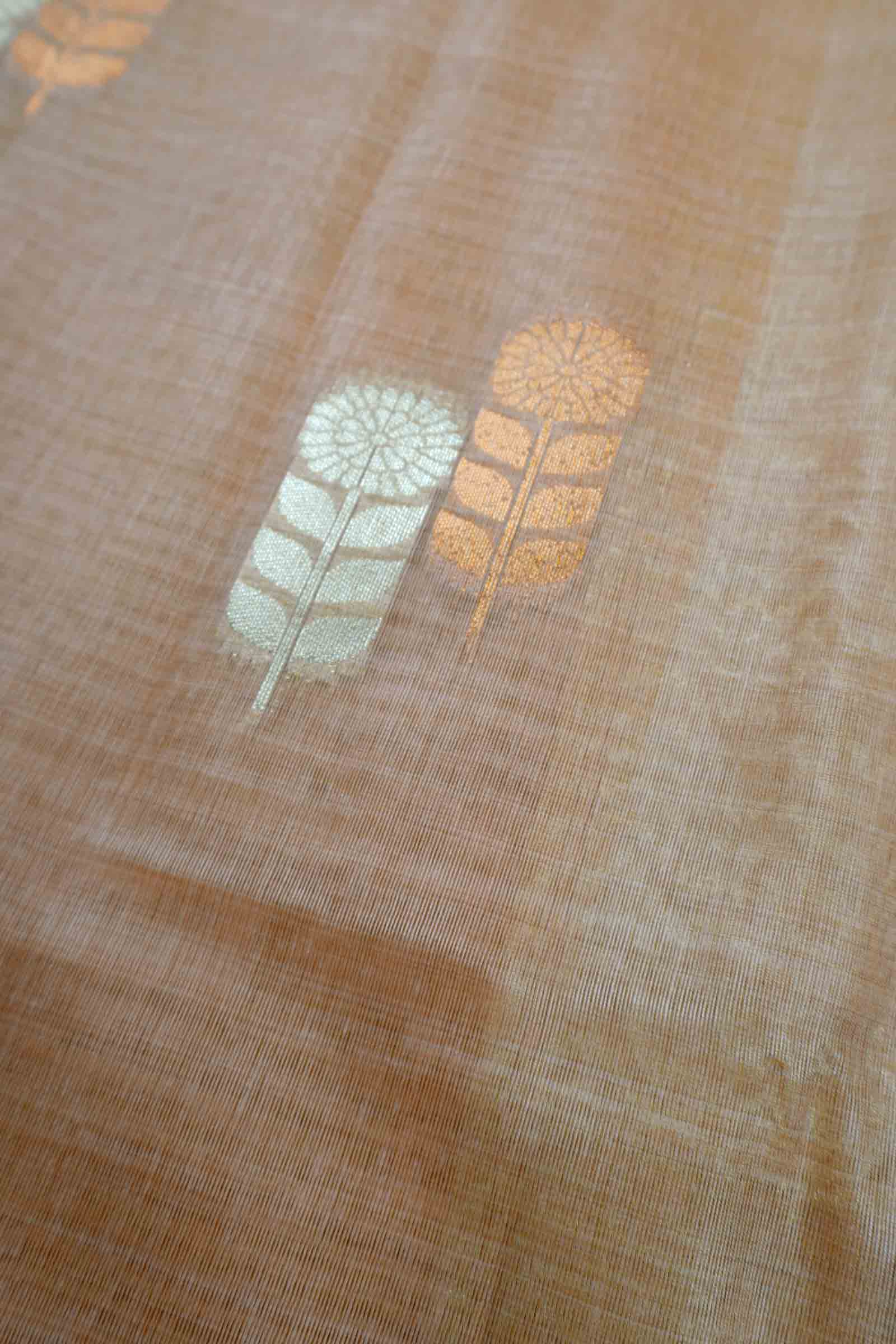 Light Pink Soft Bengal Cotton Dual Leaves Zari Border Saree