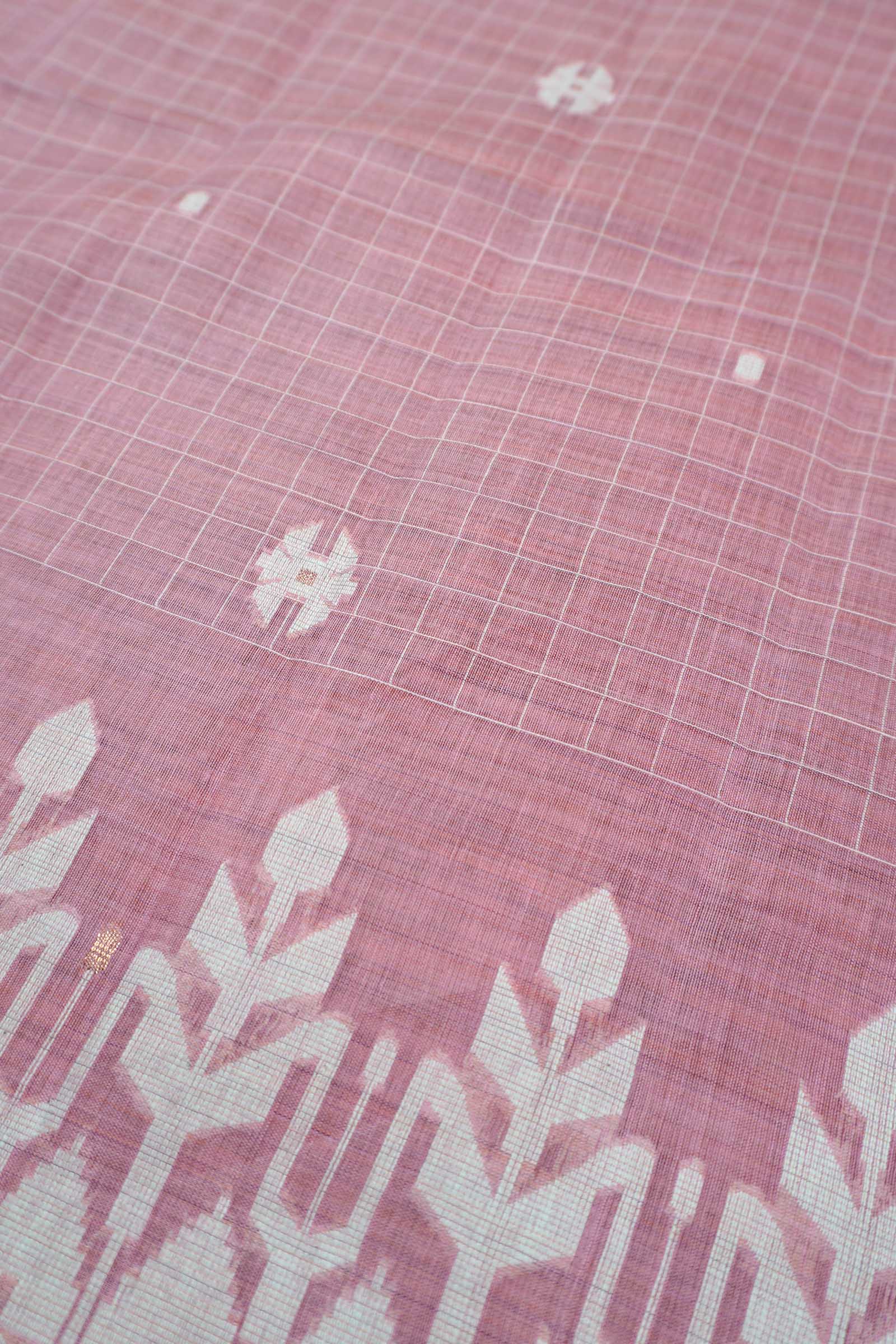 Light Pink Soft Bengal Cotton Mini Checks Jamdani Style Pallu Saree