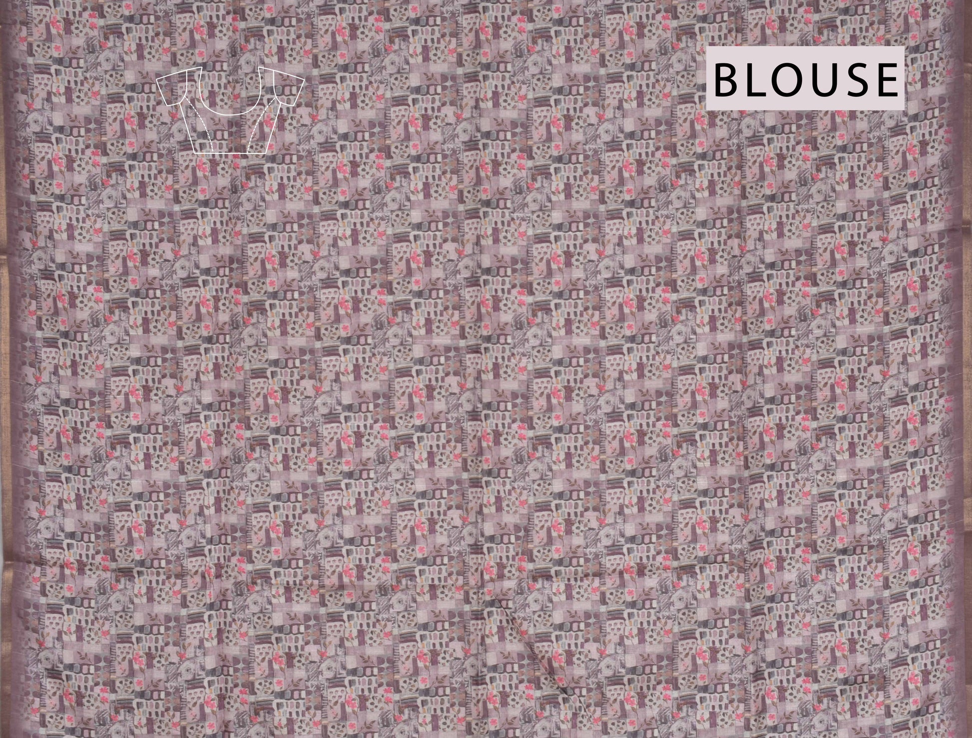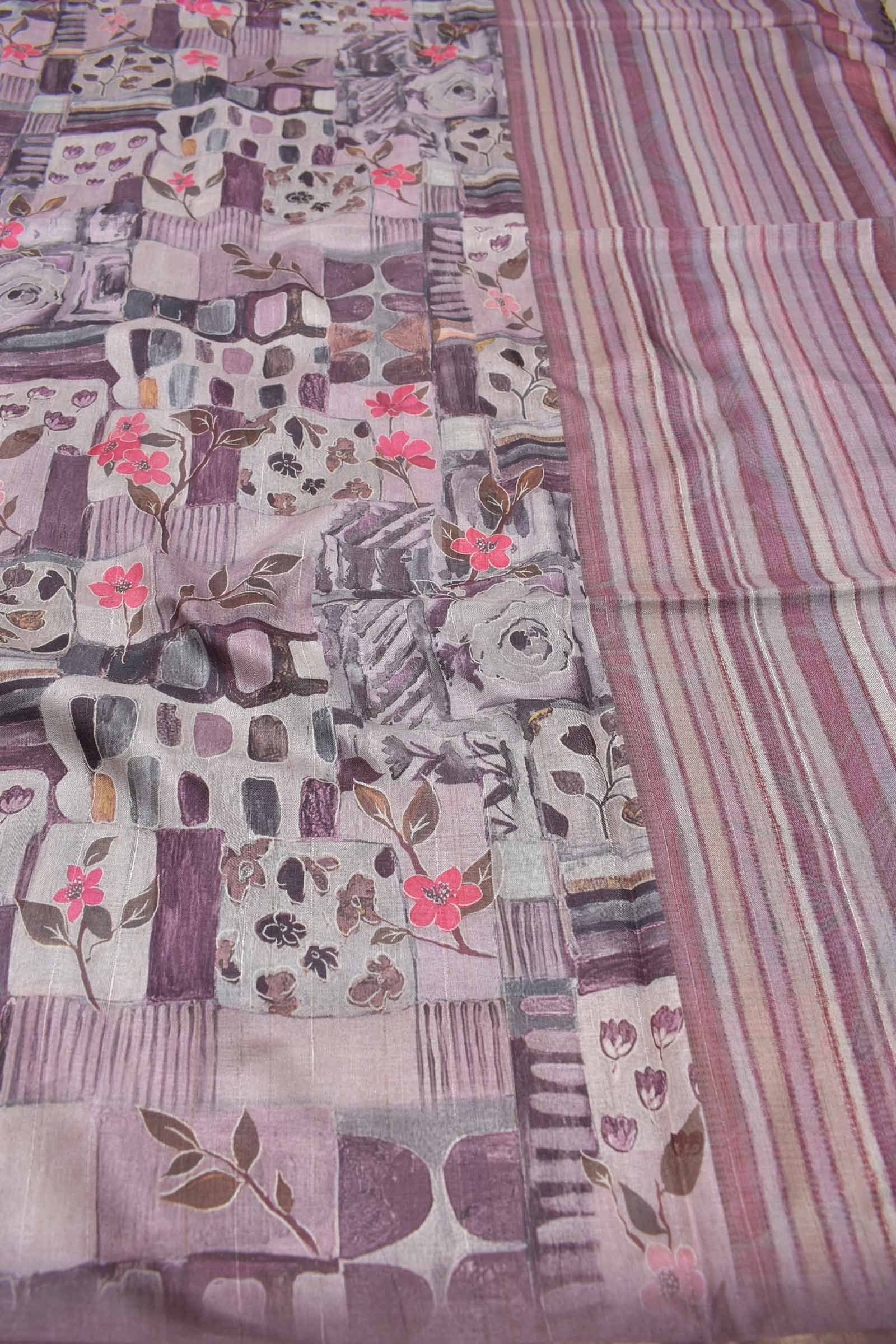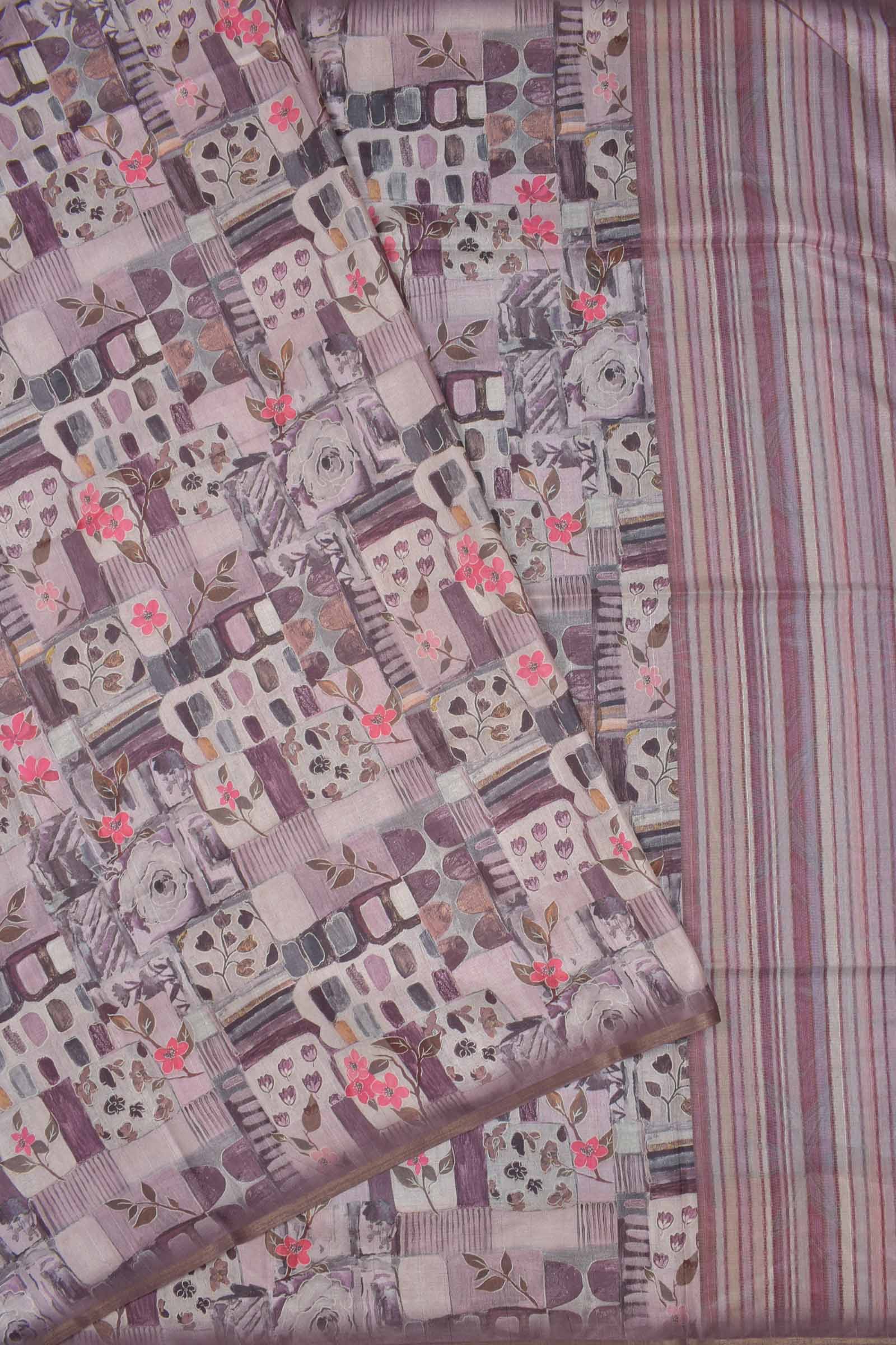 Pink Mauve Floral Frames Malai Semi Silk Saree