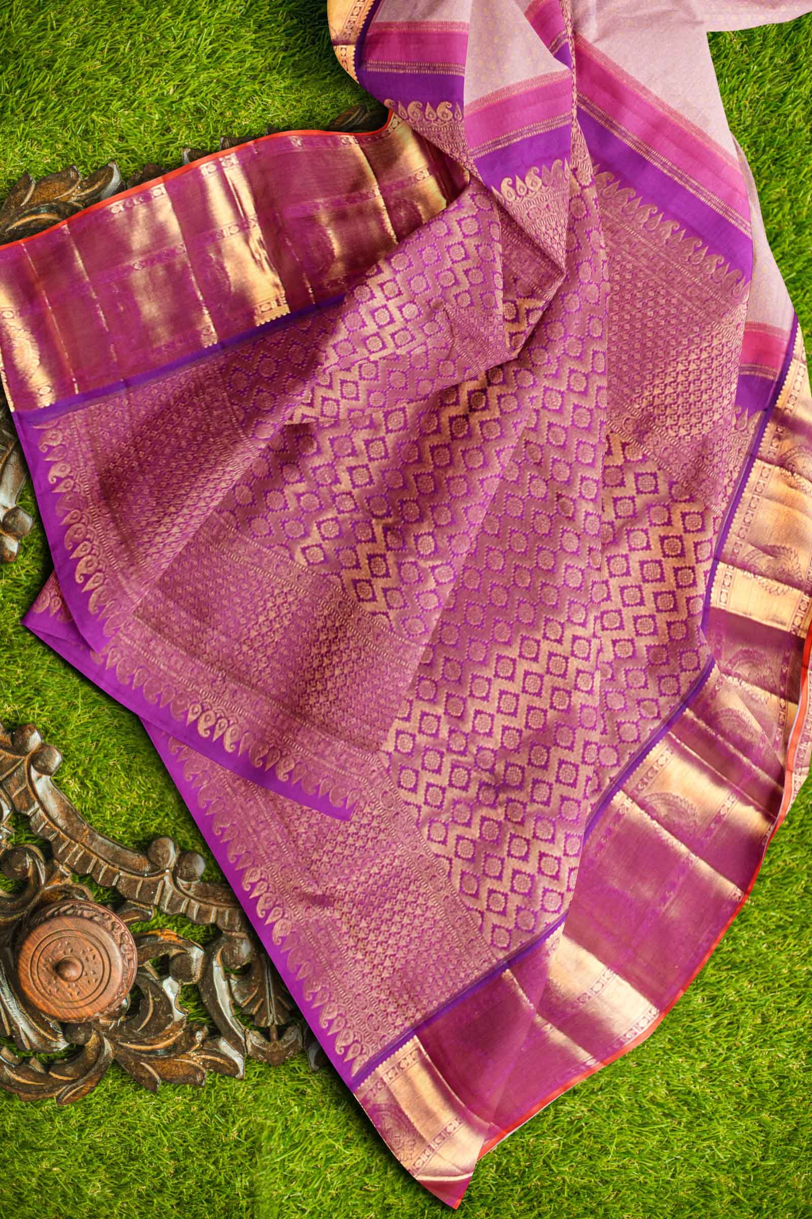 - Fabric: Kanchipuram Bridal Silk Saree with Contrast Pallu