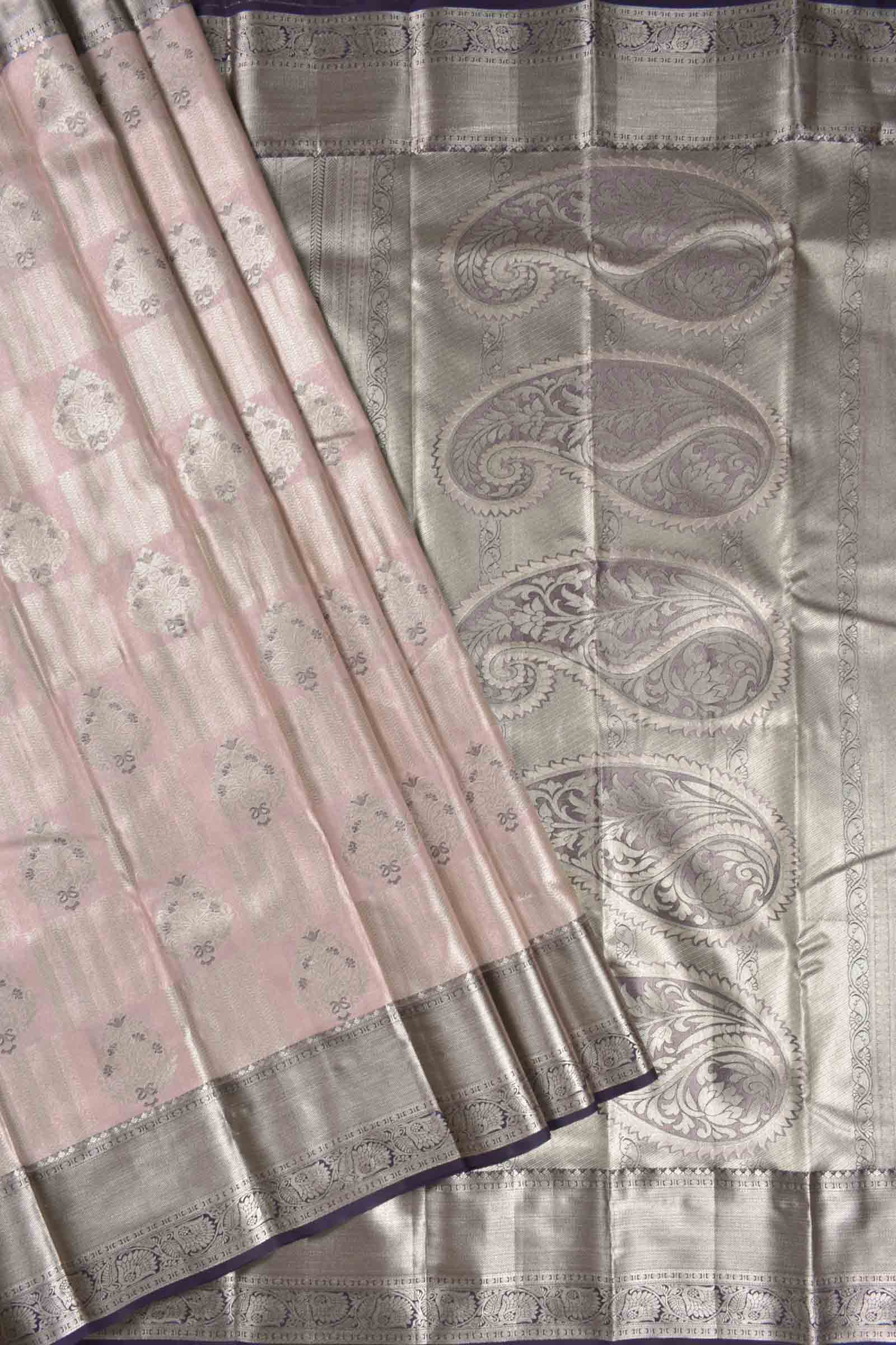 Pastel Pink Semi Silk Fancy Frame Butta Violet Zari Border Pallu Saree