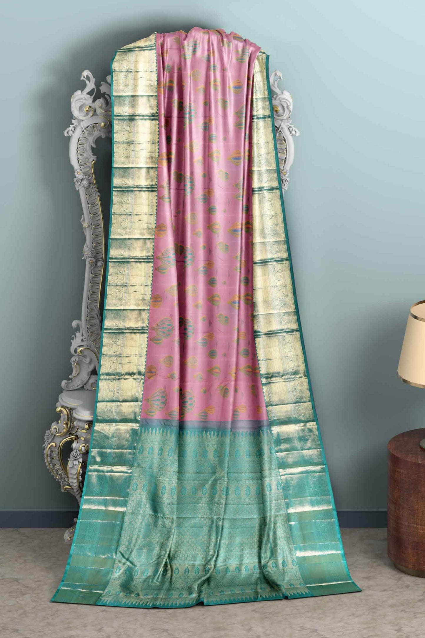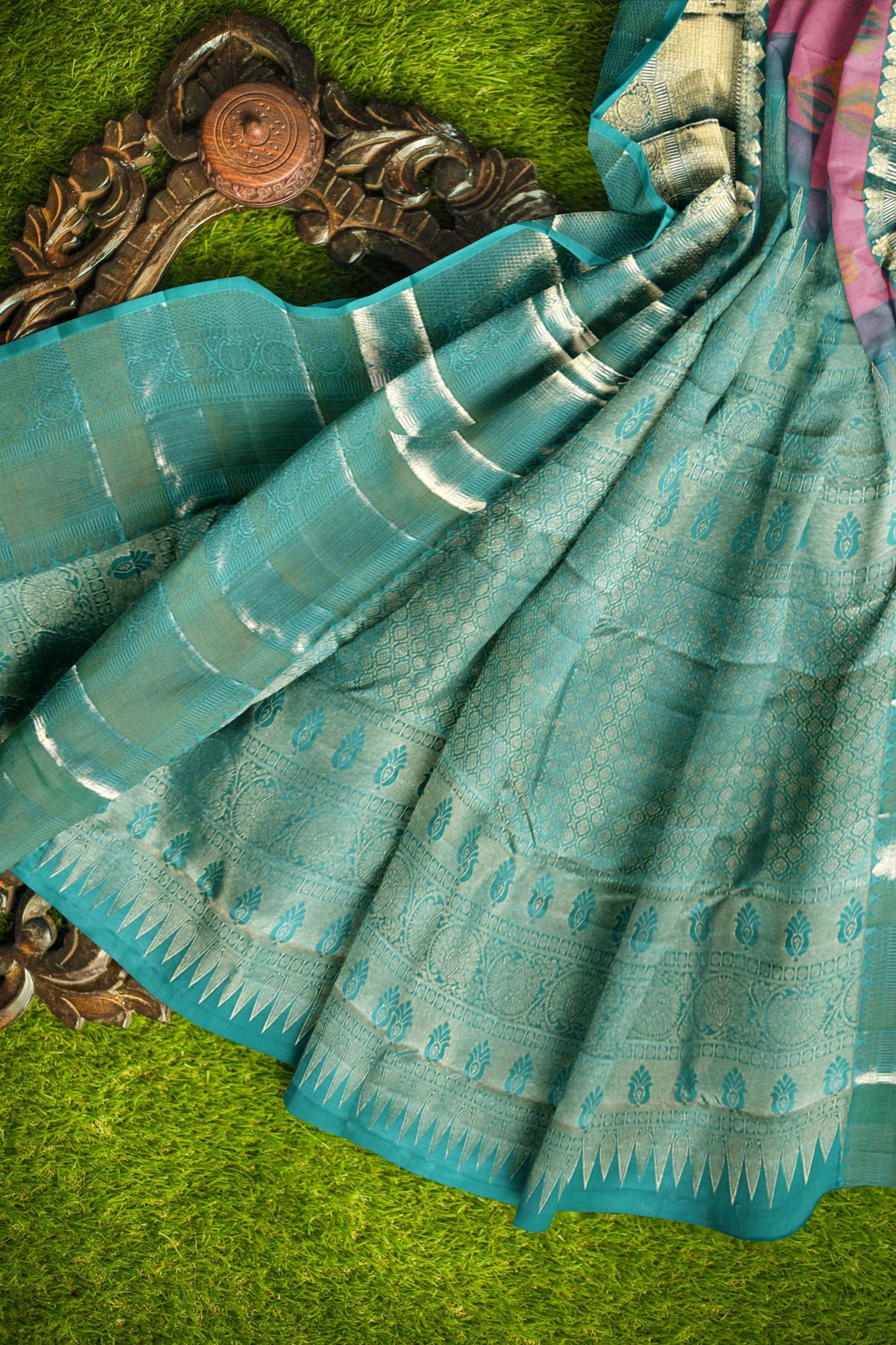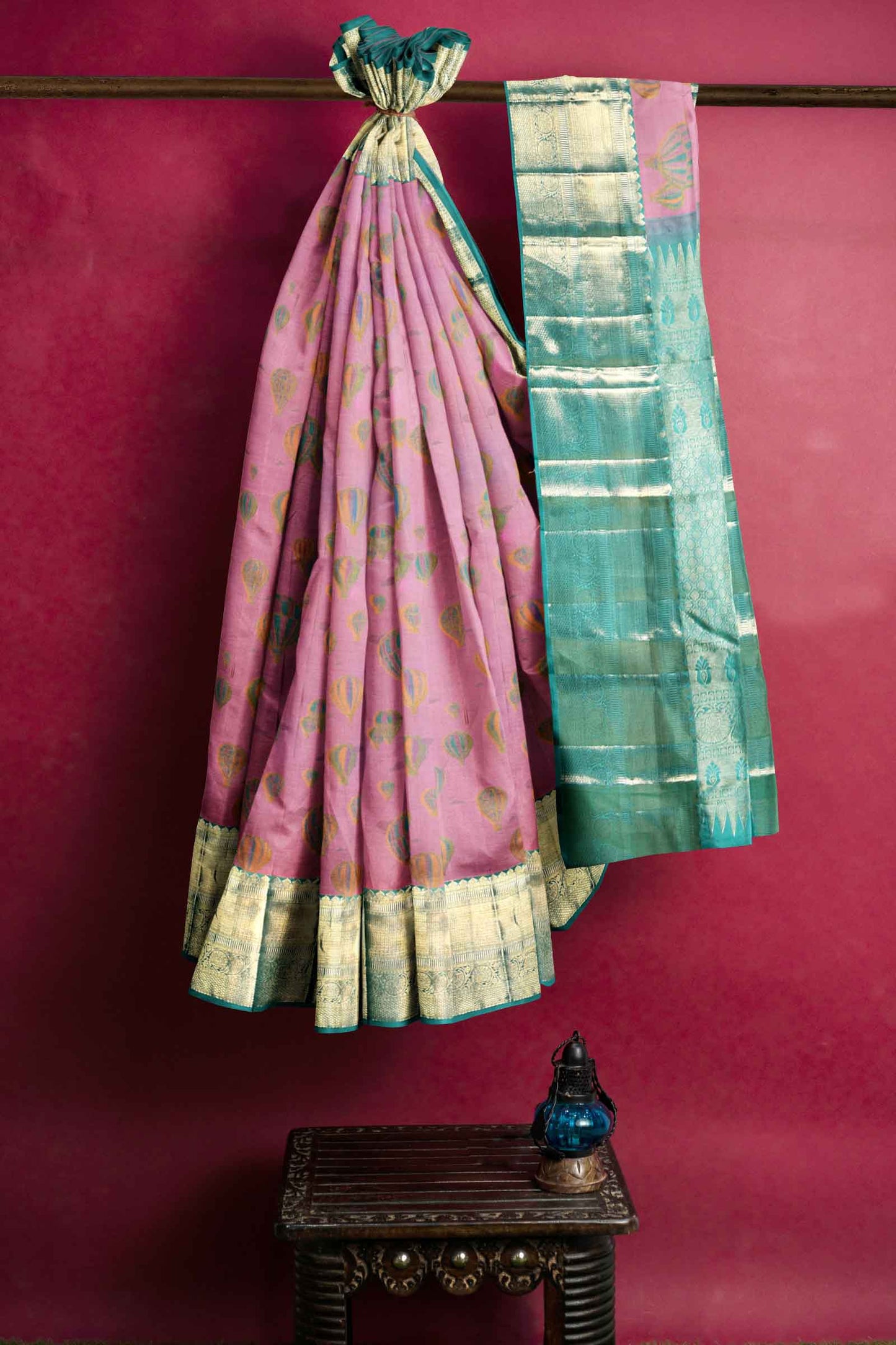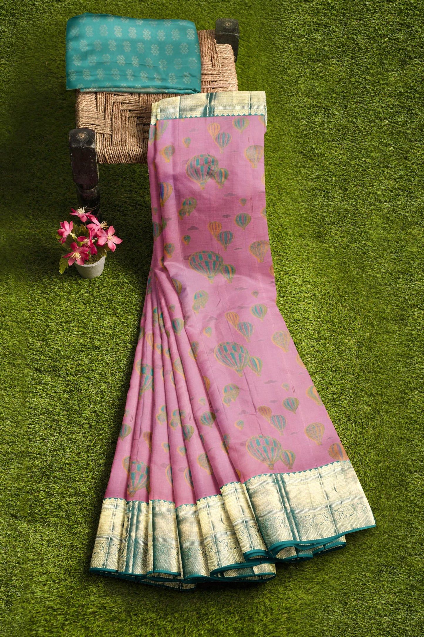 Light Violet Light Weight Pure Silk Contrast Blue Border Balloon Butta Saree