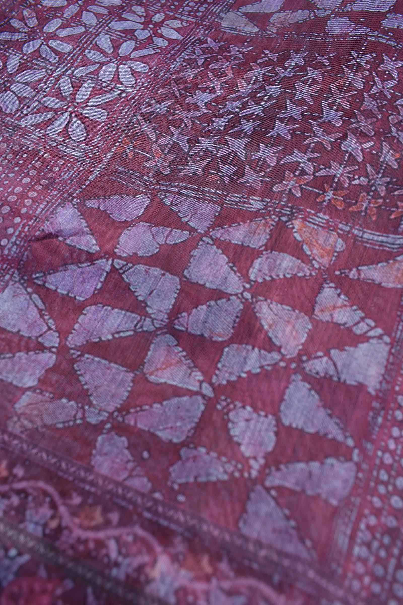 Light Violet Semi Chanderi Cotton Abstract Frames Digital Print Saree