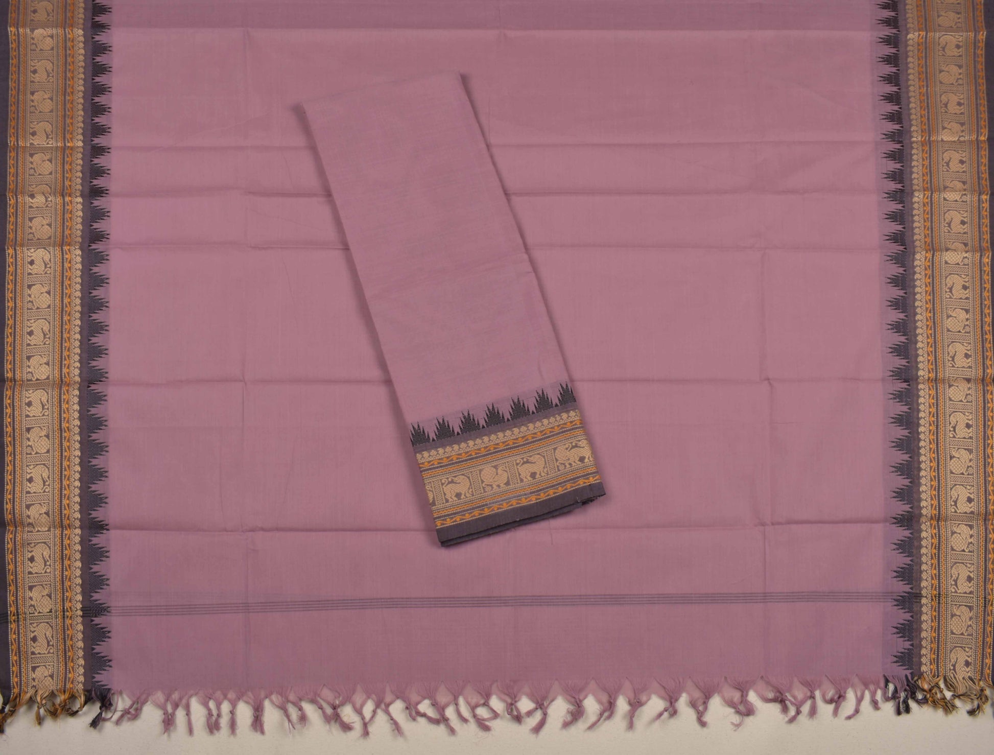 Light Voilet Pure Chettinad Cotton Chudithar Material Peacock Border Suit