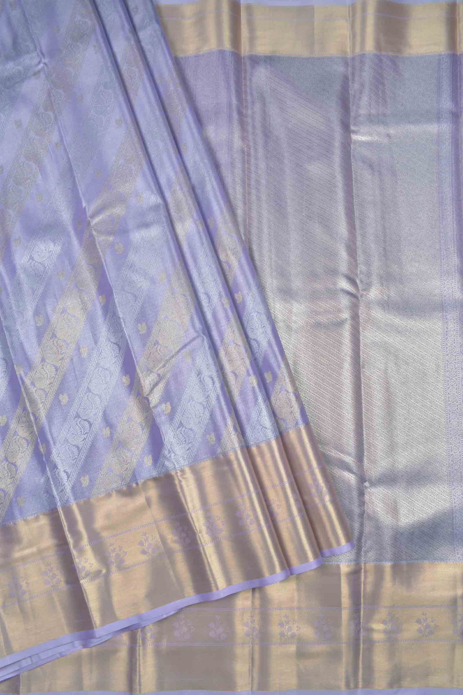 Light Voilet Semi Silk Tissue Fancy Peacock Print Zari Border Saree