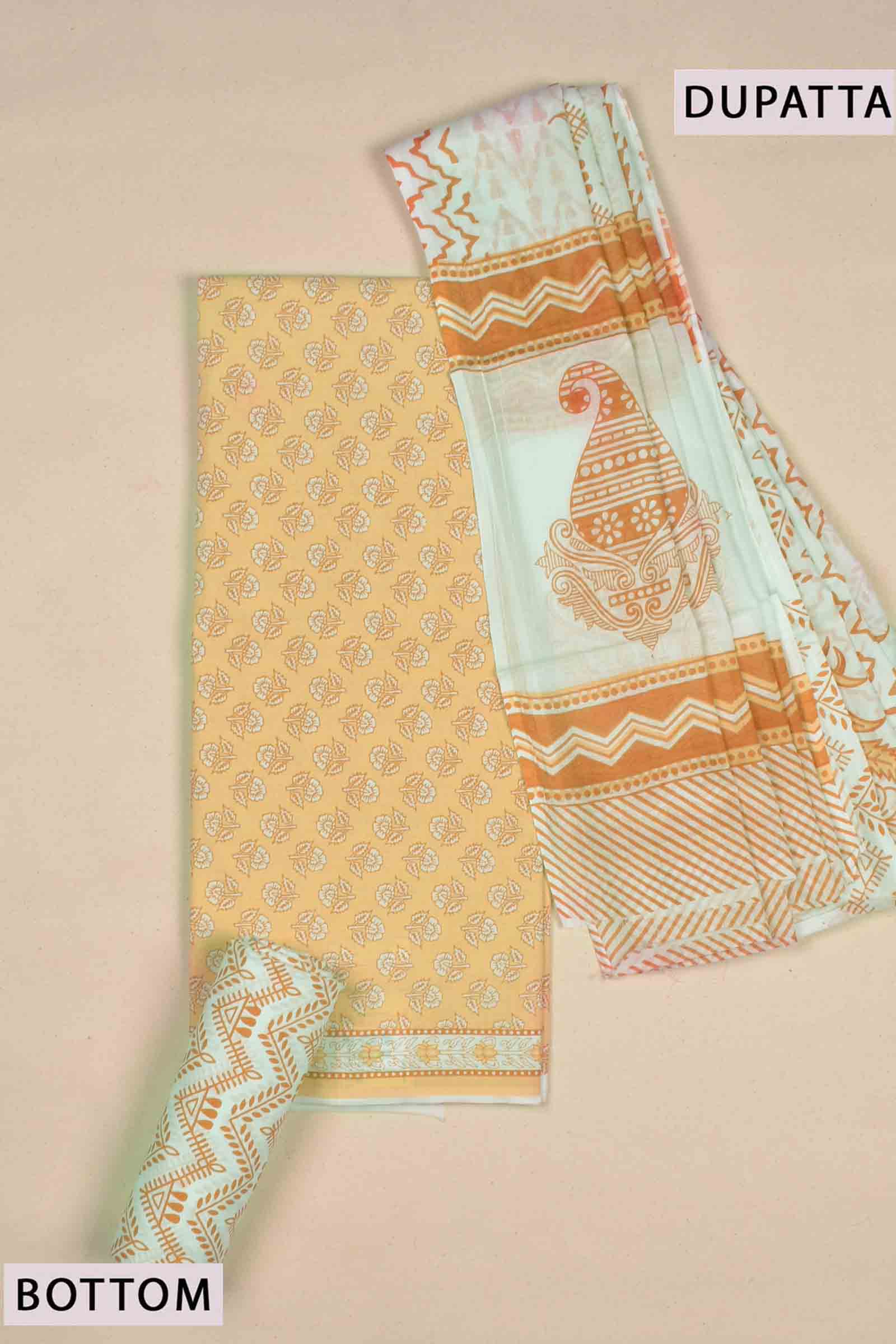 Light Yellow Jaipur Cotton Chudithar Material Floral Print Suit