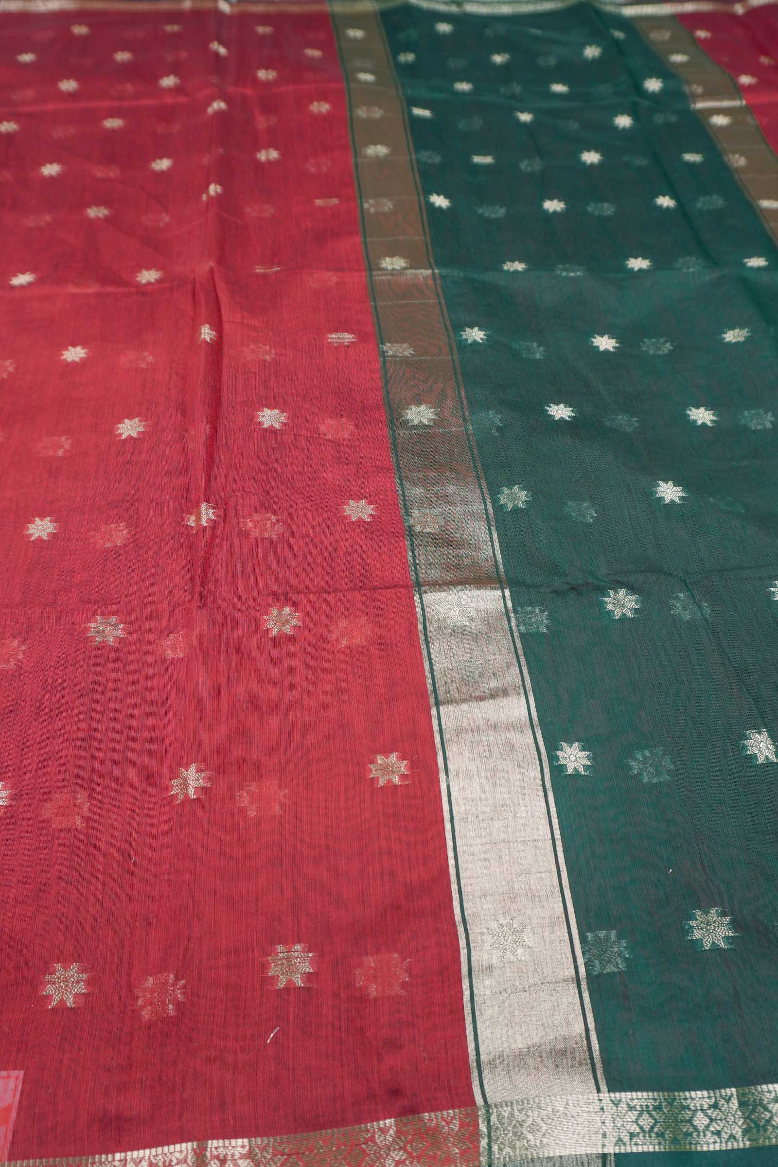 Maroon Semi Maheswari Cotton Sampada Puspa Butta Contrast Pallu Saree