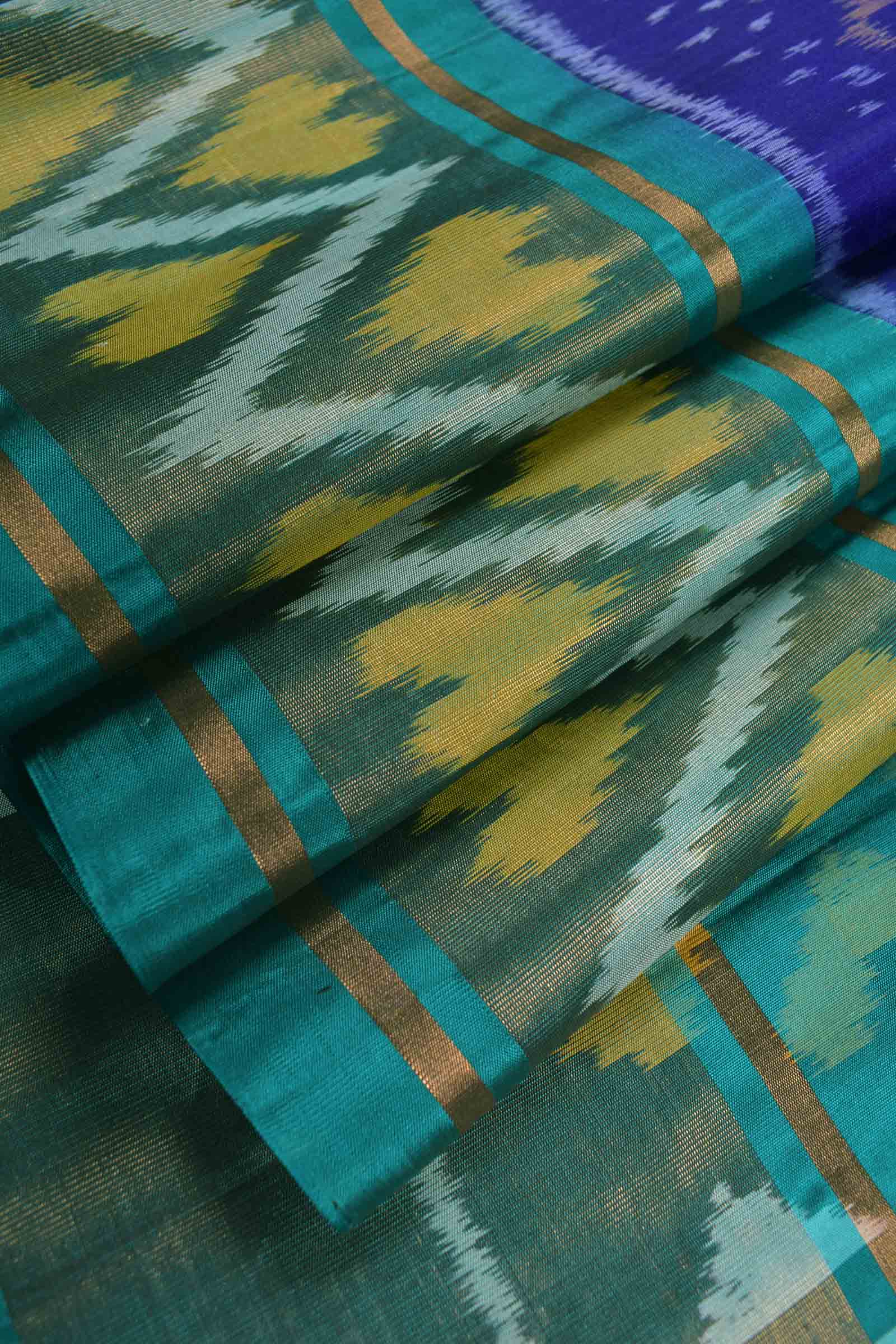 Medium Blue Pure Soft Silk Ikkat Pochampalli Fancy Pallu Saree NAA204