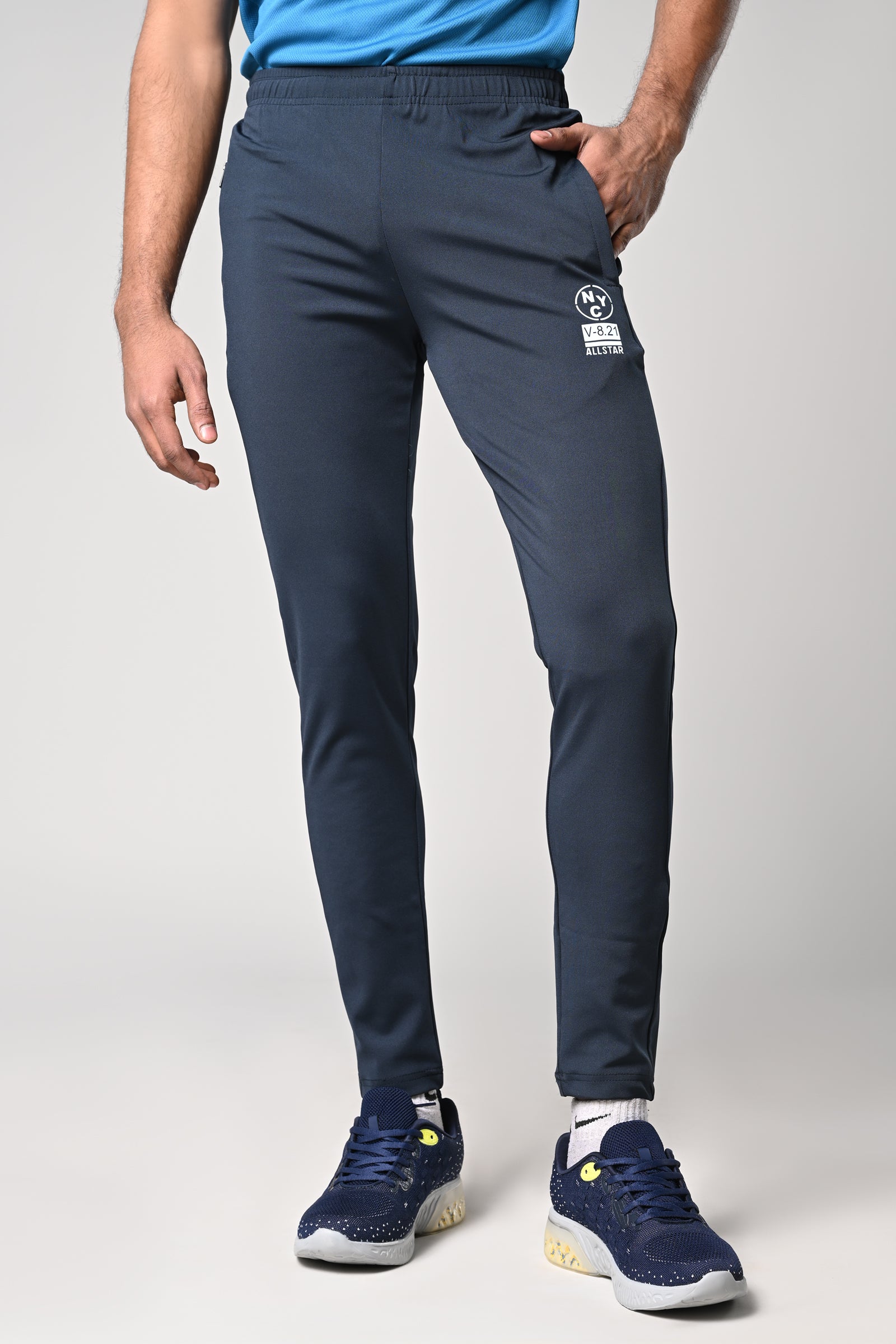 Men’s Navy-blue jersey fabric track pants with pockets