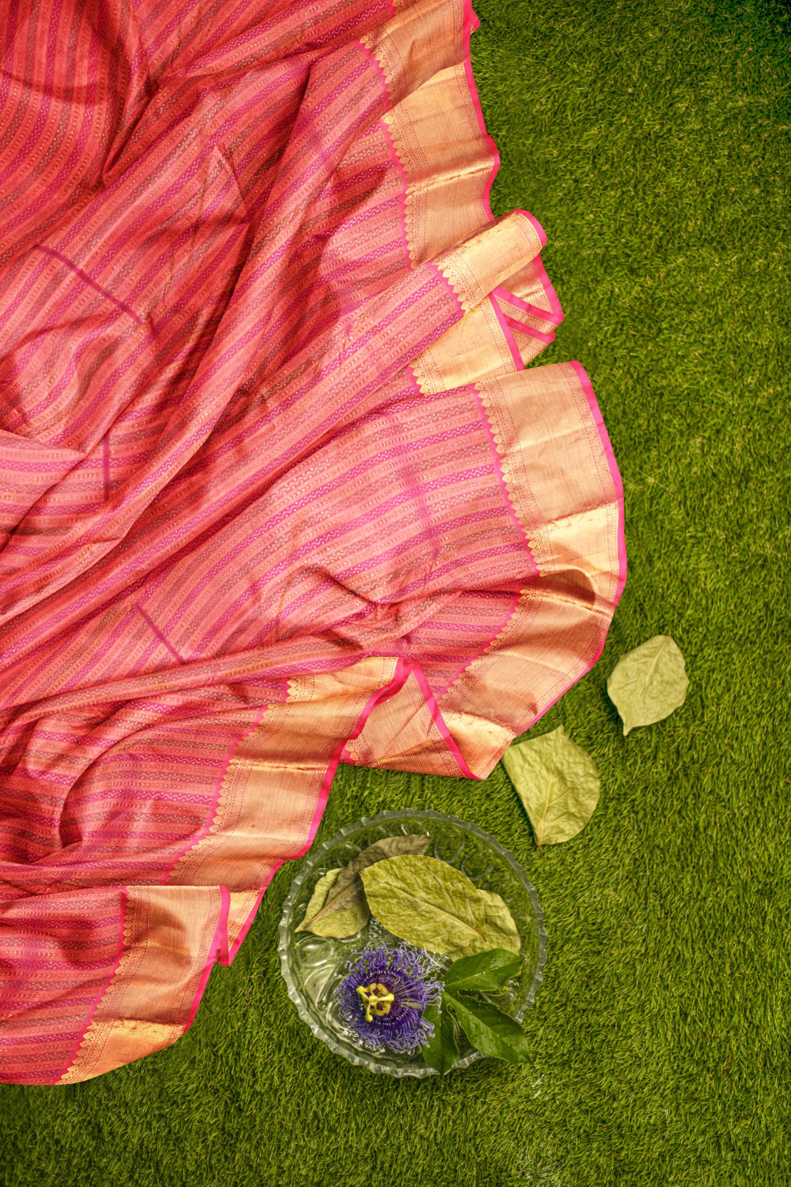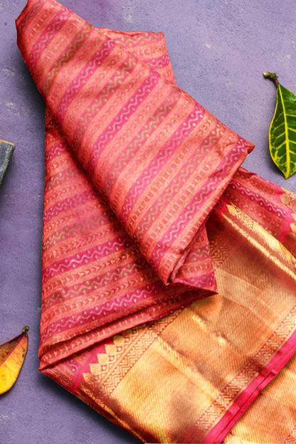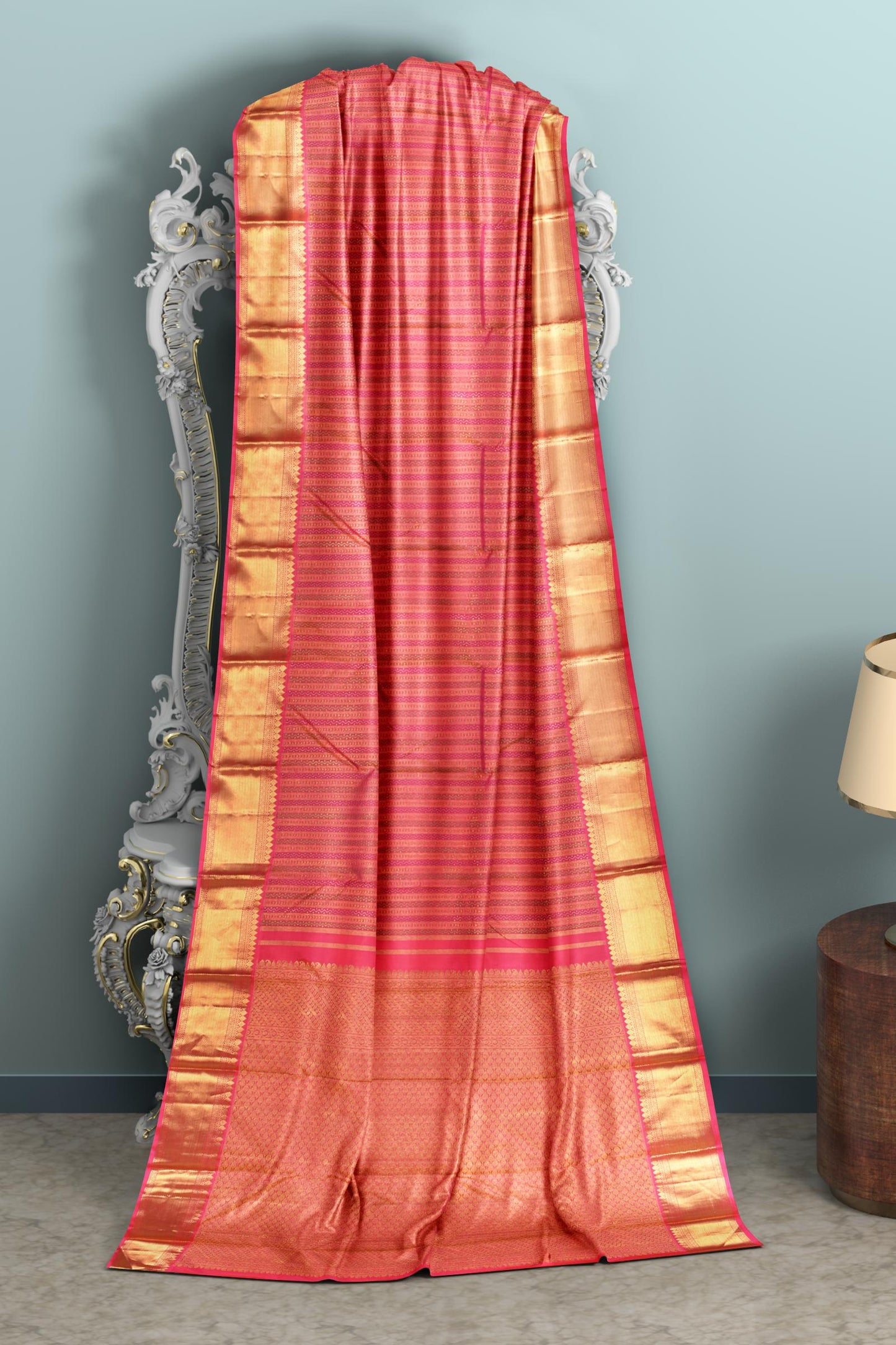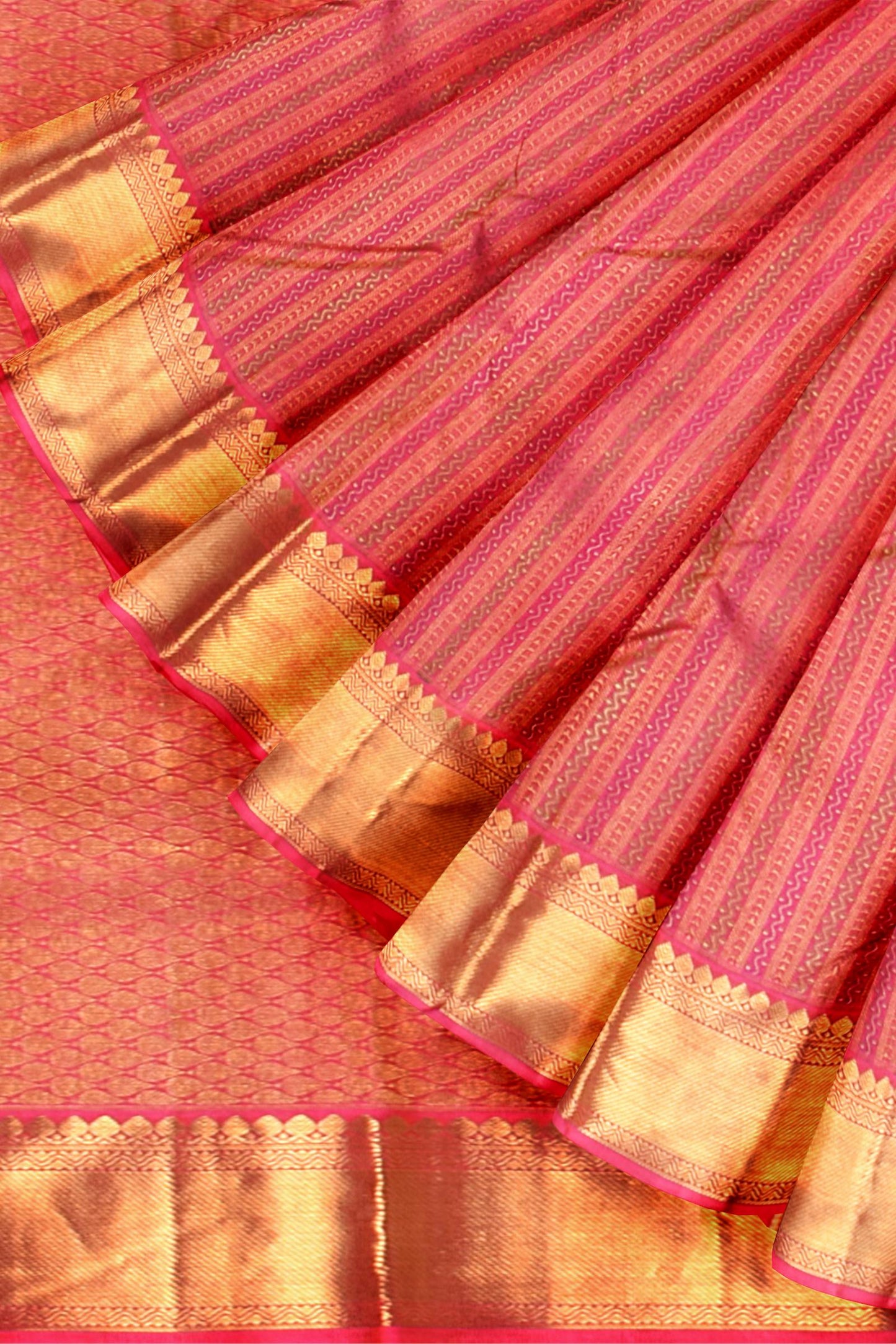 Pink Kanchipuram Bridal Pure Silk ZigZag Design Saree