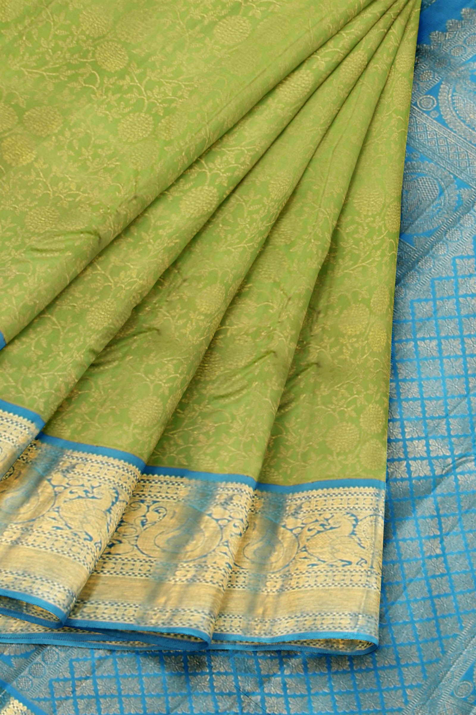 Green Kanchipuram Bridal Pure Silk Triple Flower Butta Body Blue Contrast Pallu Saree