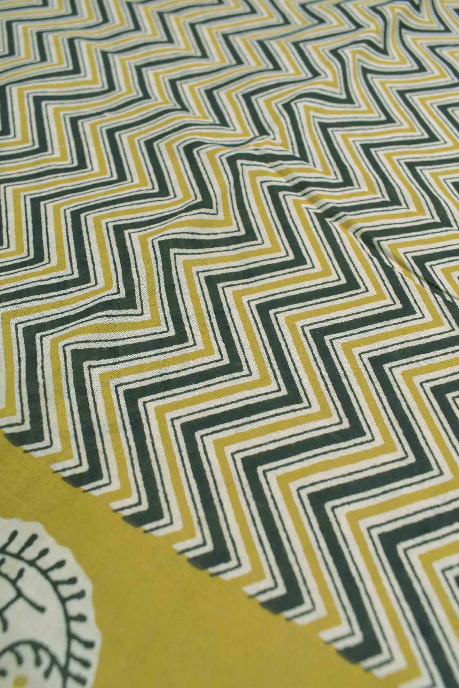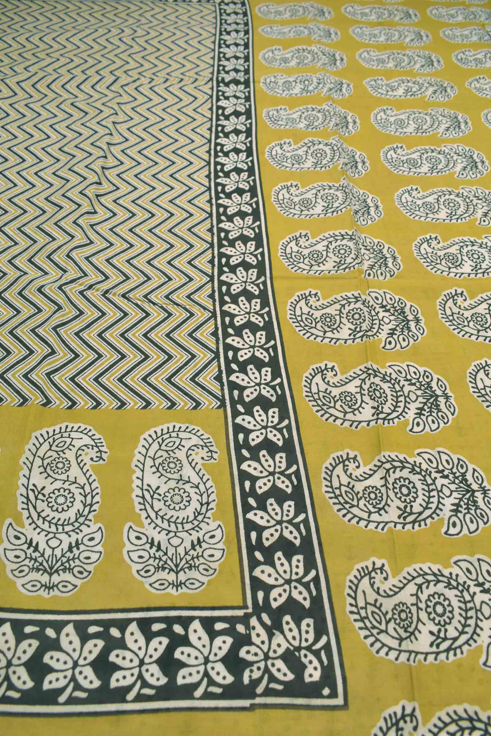 Mustard Yellow Jaipur Cotton Waves Printed Paisely Pallu Saree MODEL