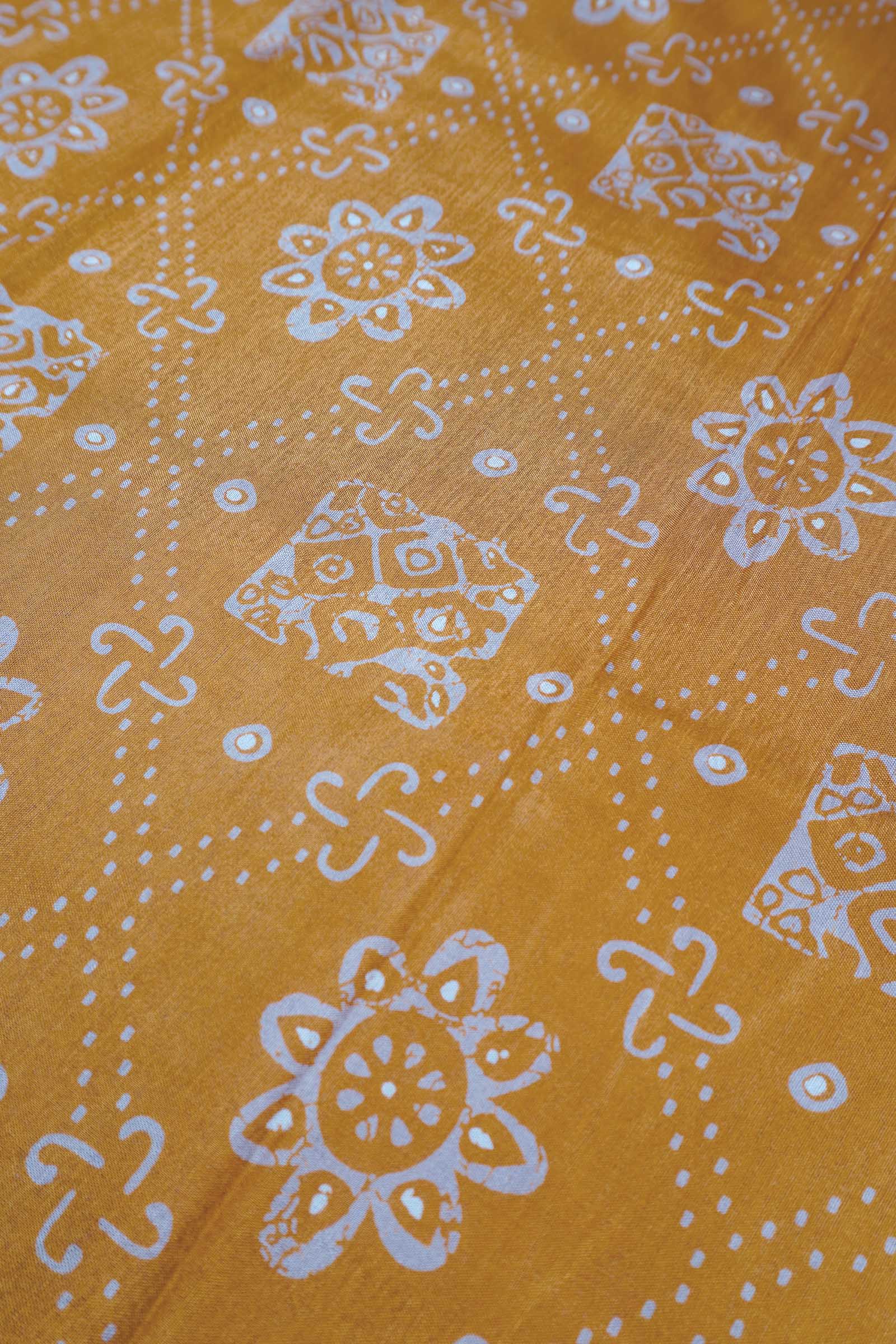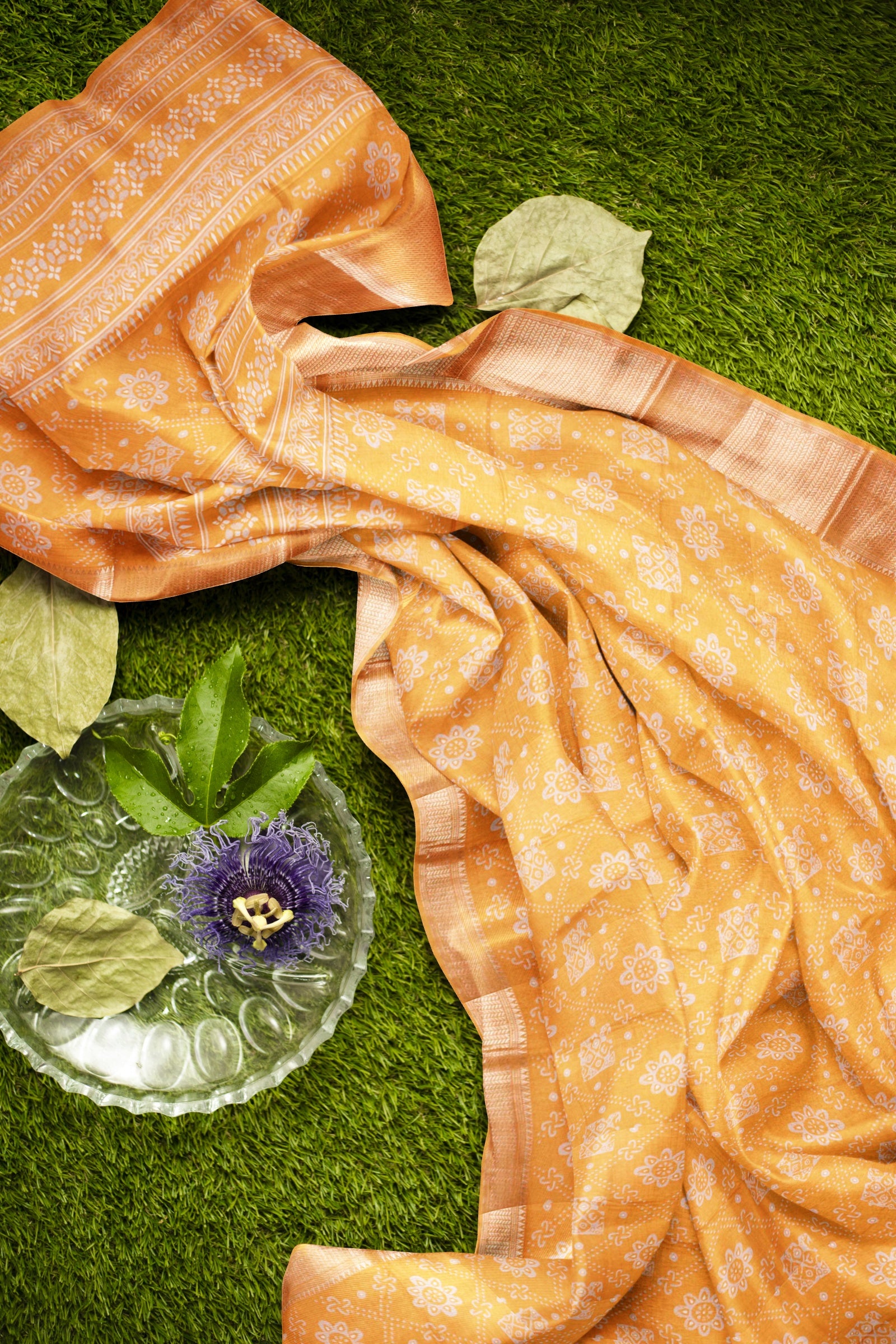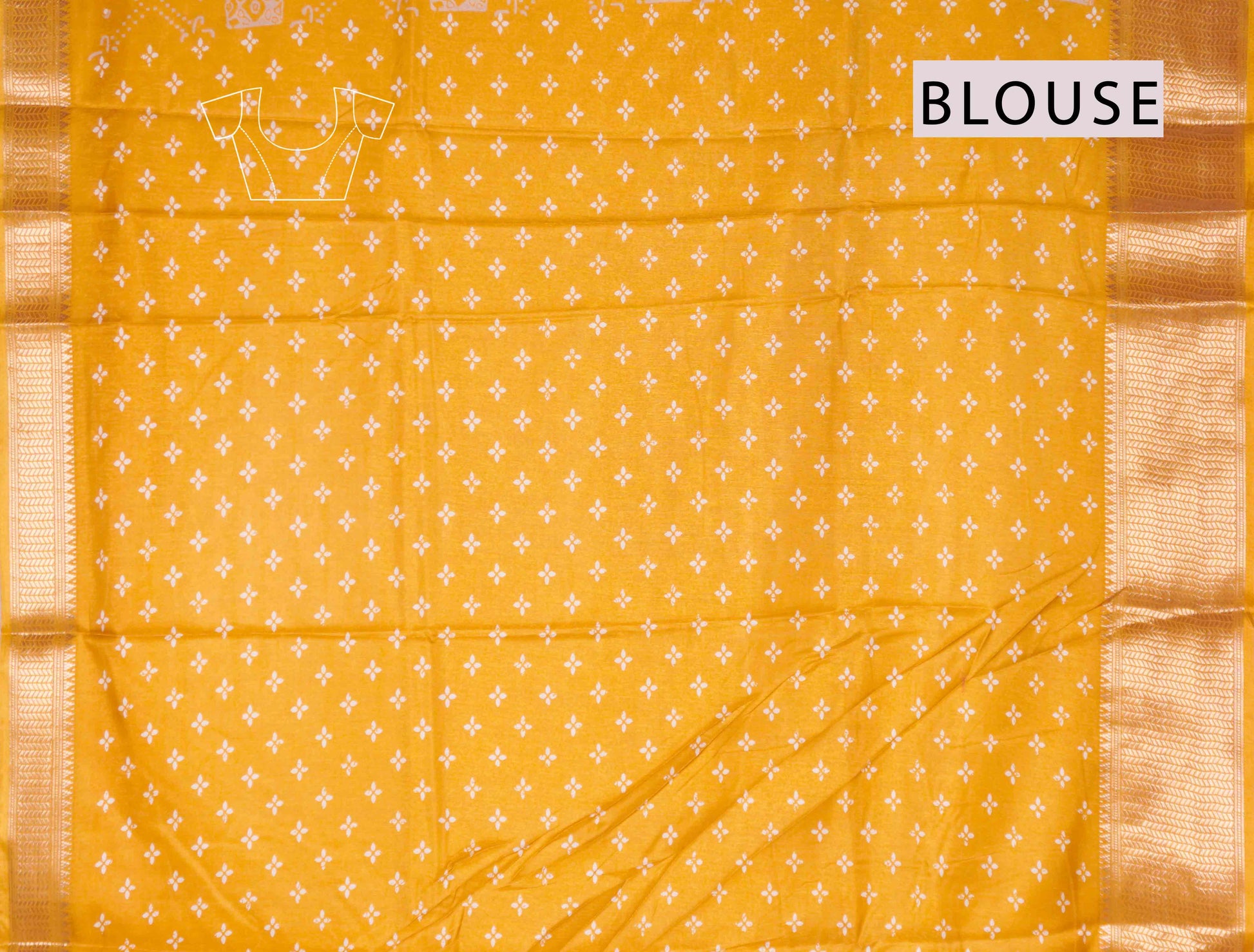 Dark Golden Yellow Semi Dola Floral Frames Zari Border Saree