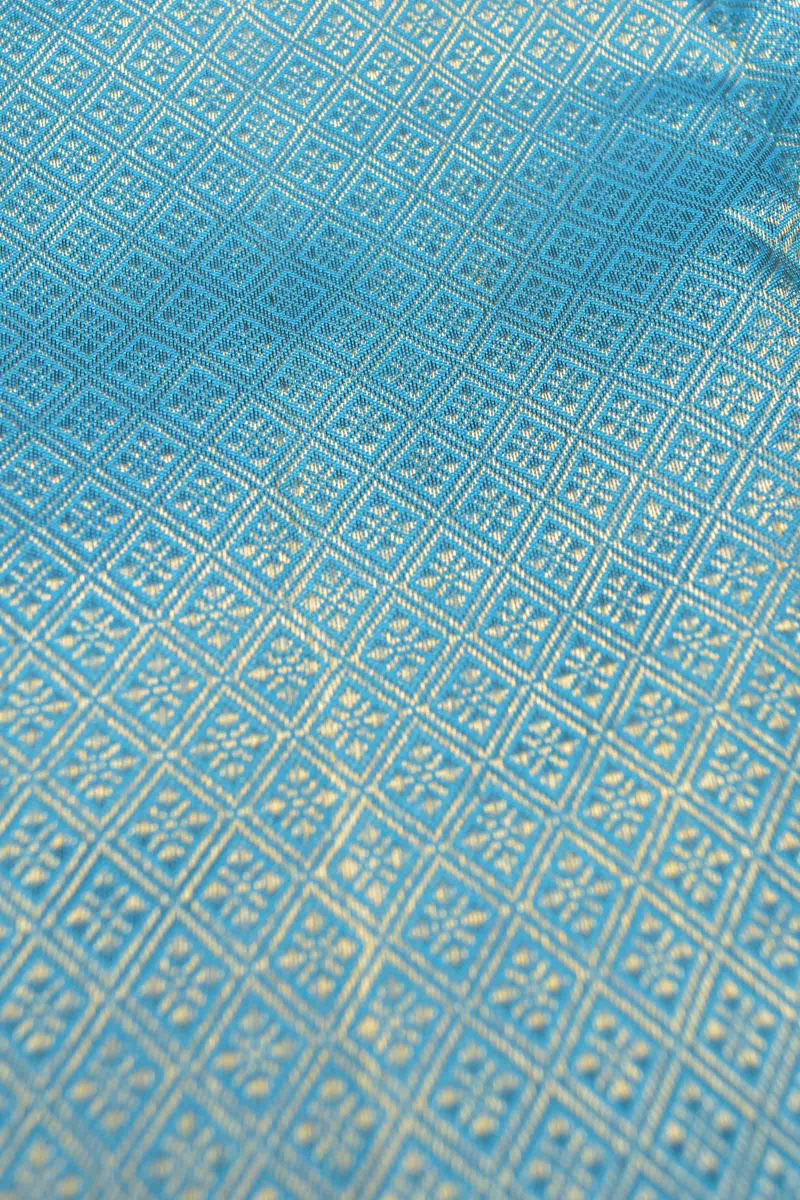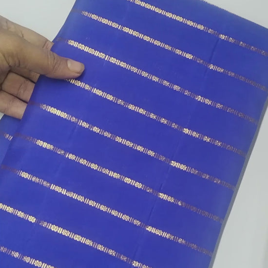 Navy Blue Pure Silk Golden Zari Lines Contrast Light Blue Zari Border Pallu Saree NAA132