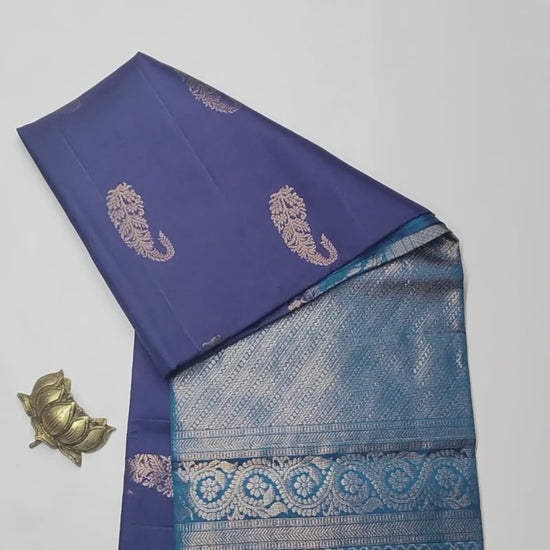 Navy Blue Pure Soft Silk Fancy Mango Butta Blue Zari Border Pallu Saree NAA193