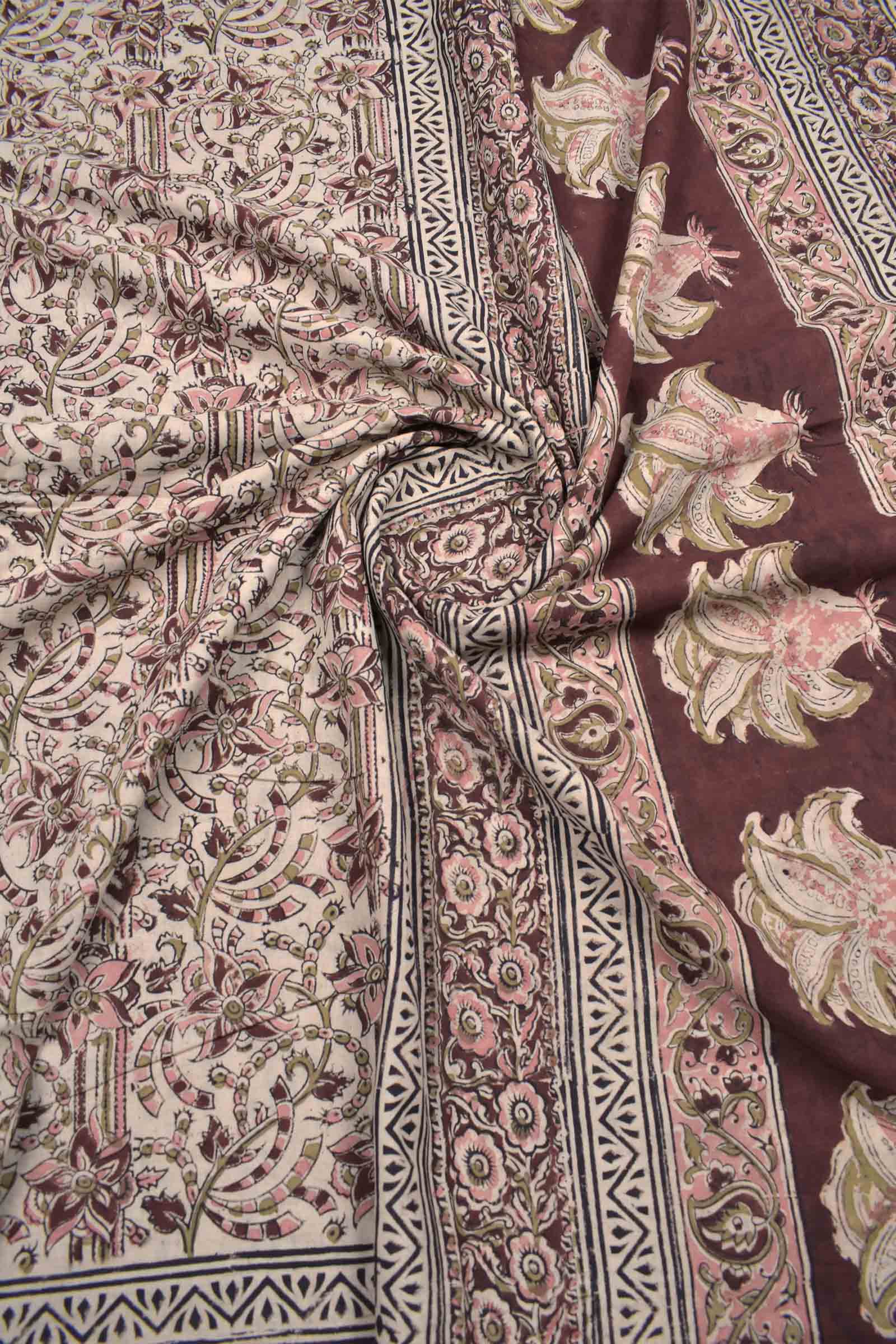 Off White Kalamkari Pure Cotton Pink Stars Printed Saree