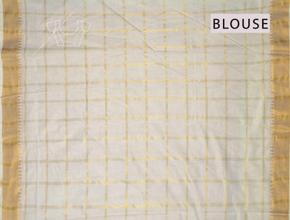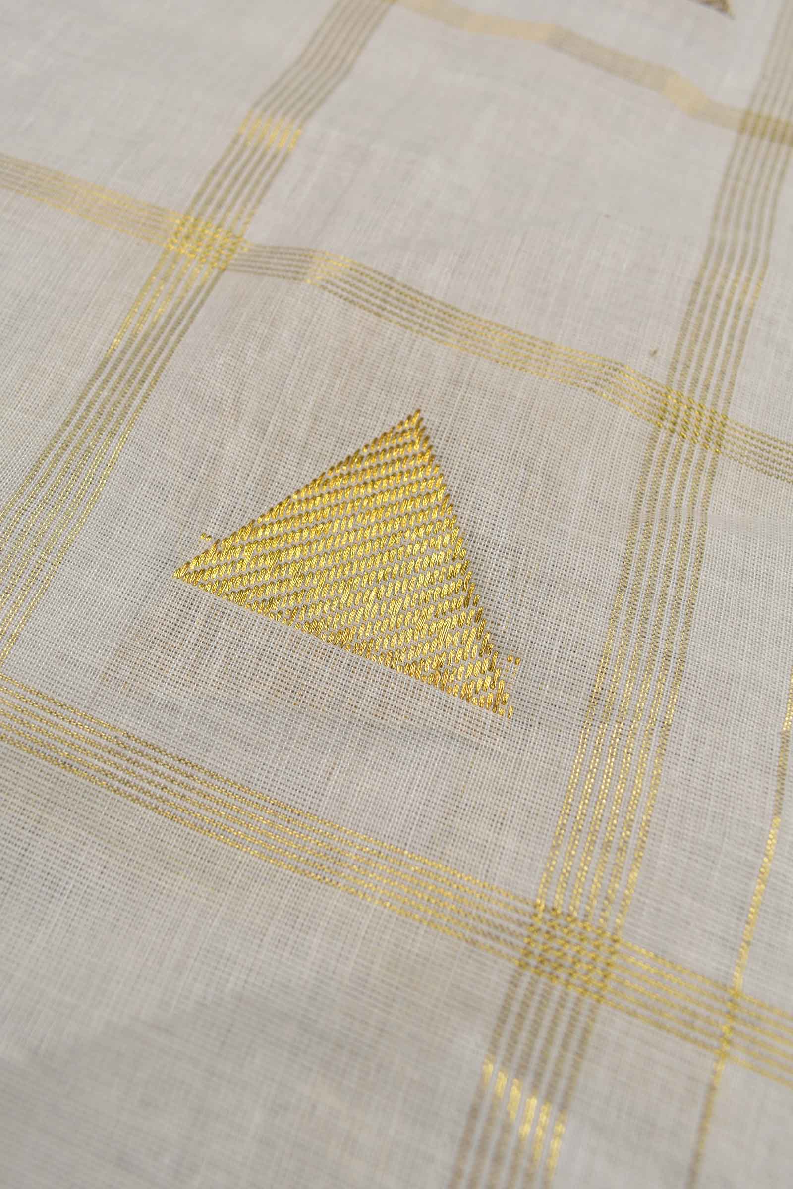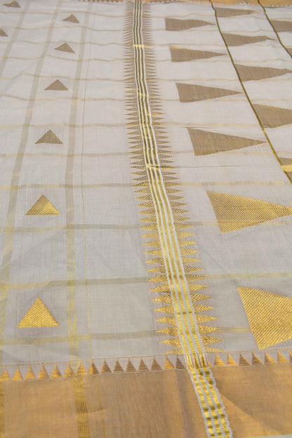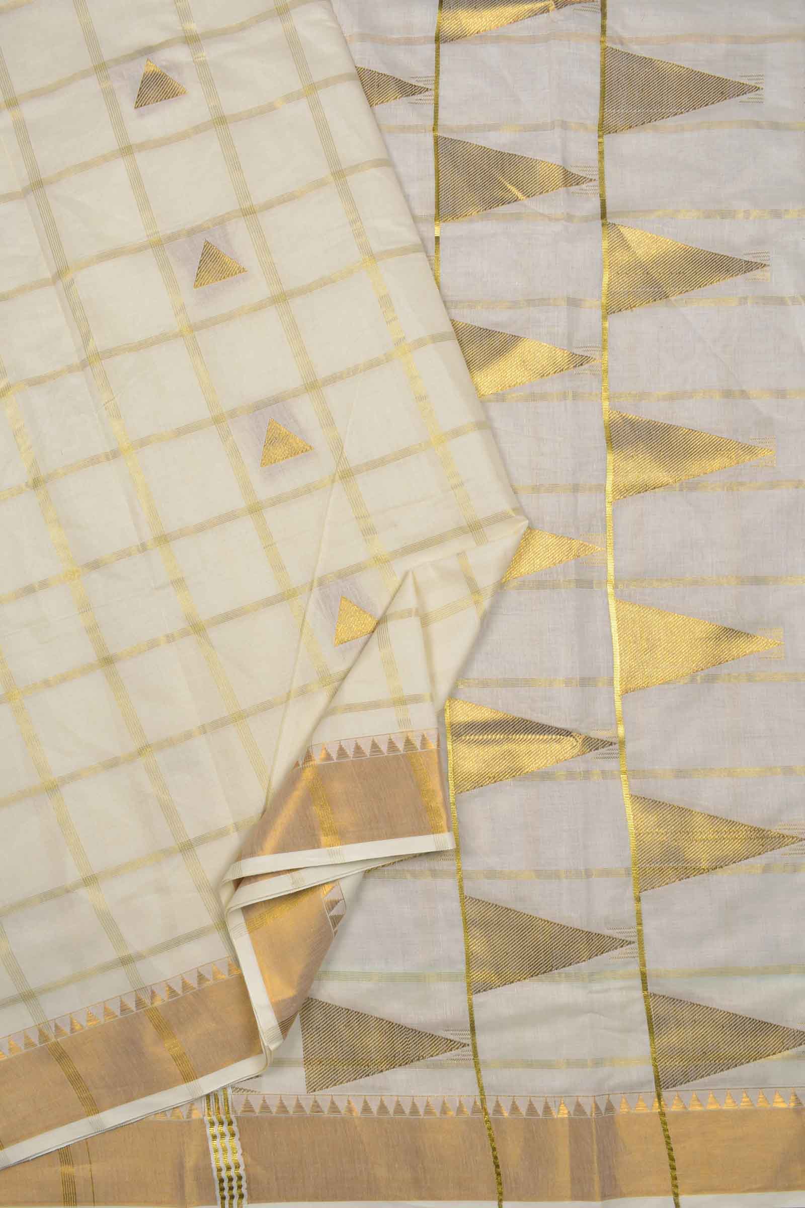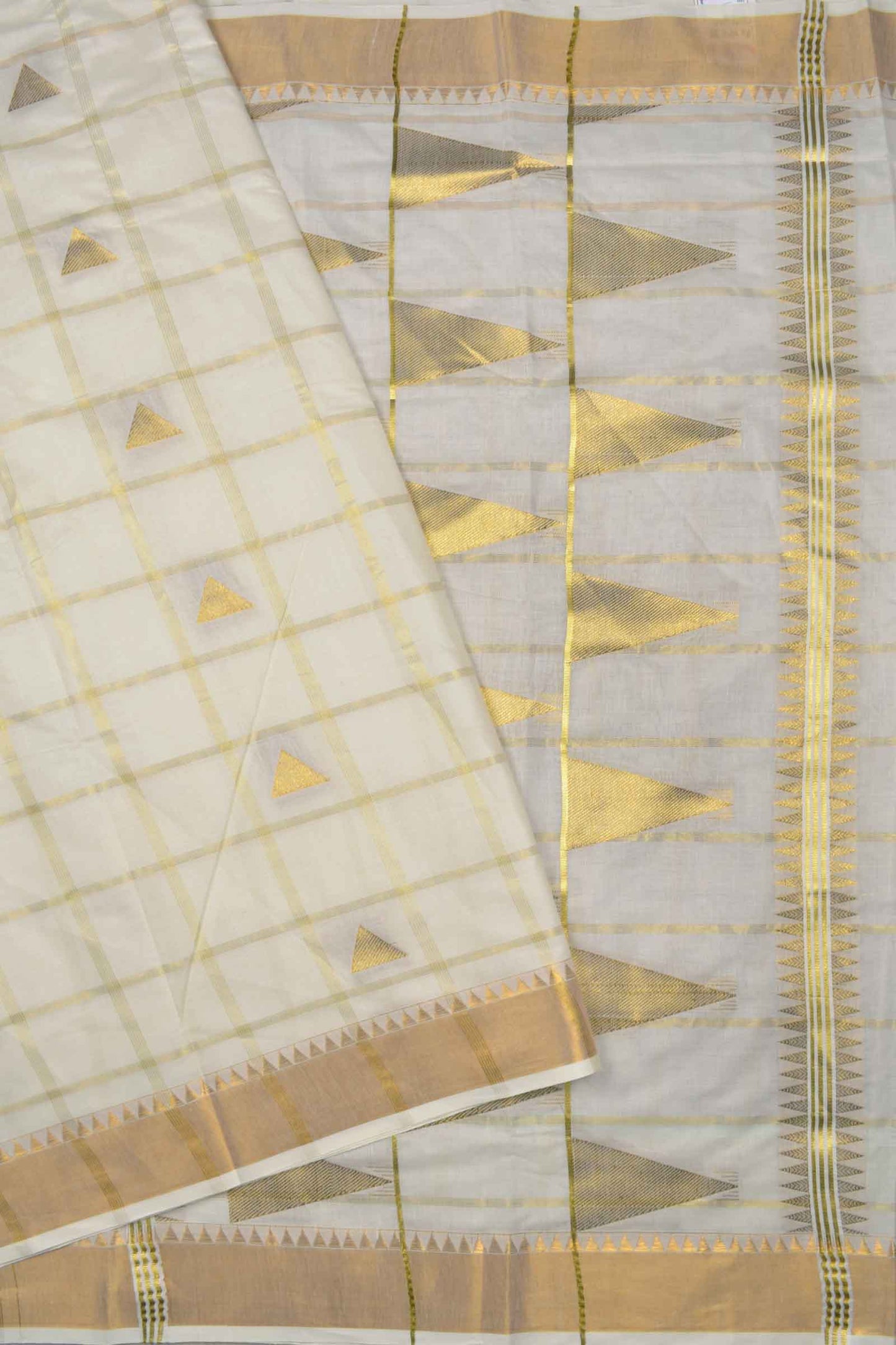 Off White Kerala Cotton Checked Butta Golden Traingle Pallu Saree