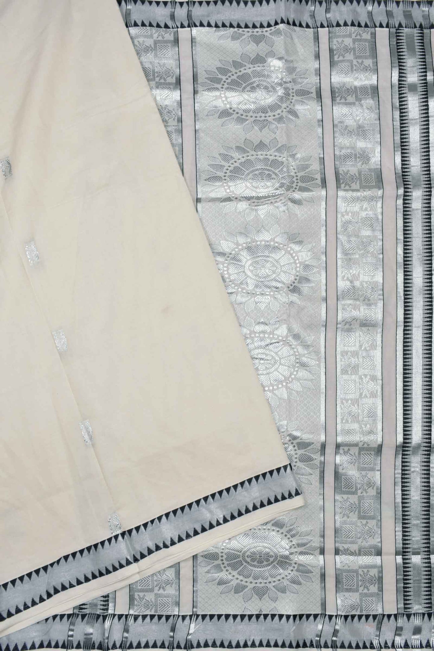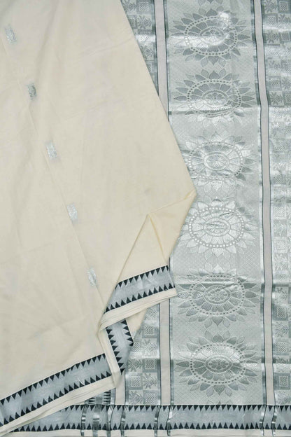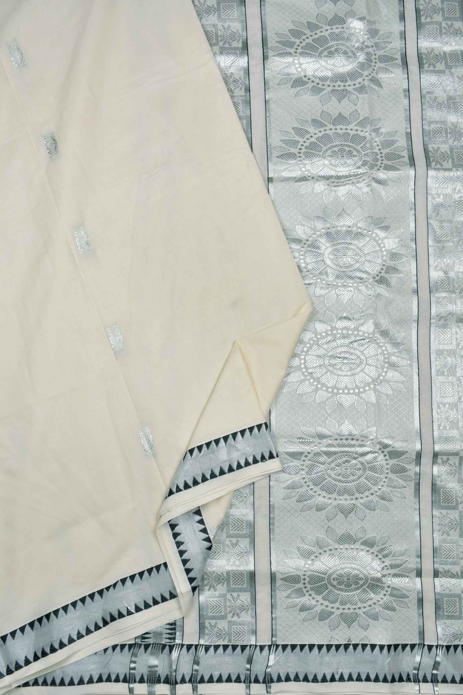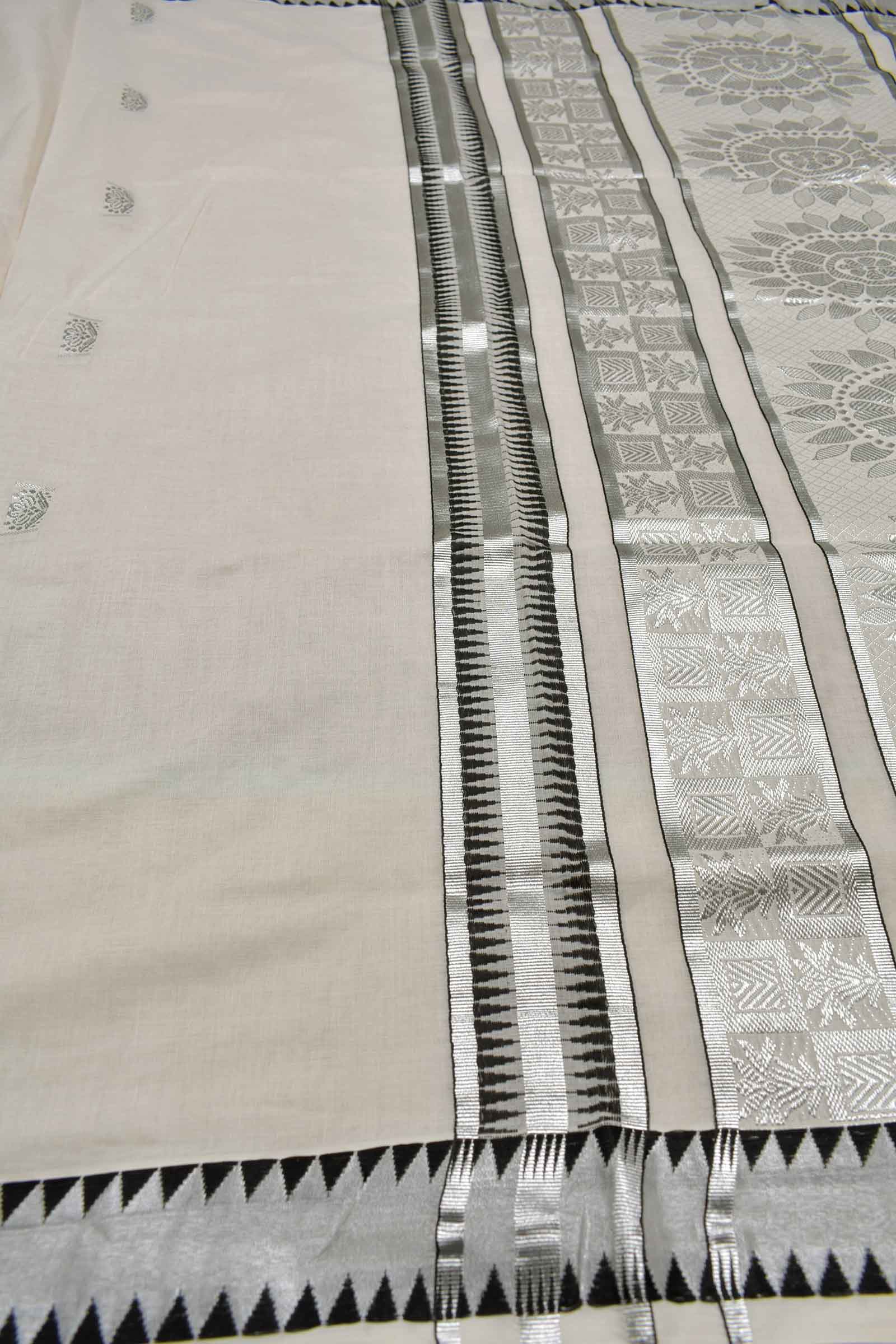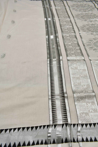 Off White Kerala Cotton Floral Butta Fancy Pallu Saree