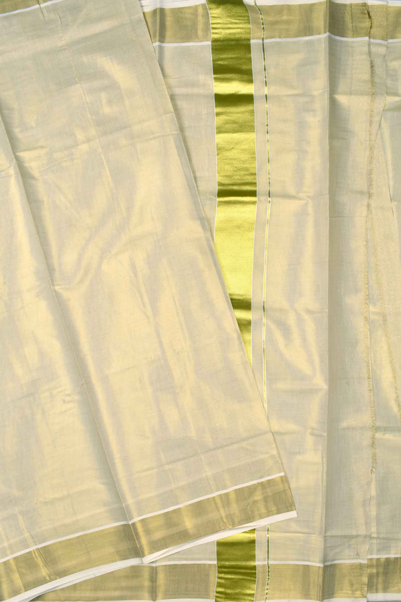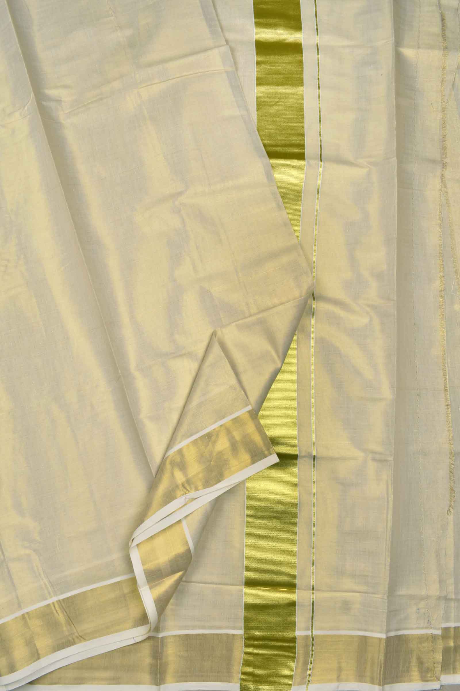 Off White Pure Kerala Tissue Cotton Plain Golden Zari Saree