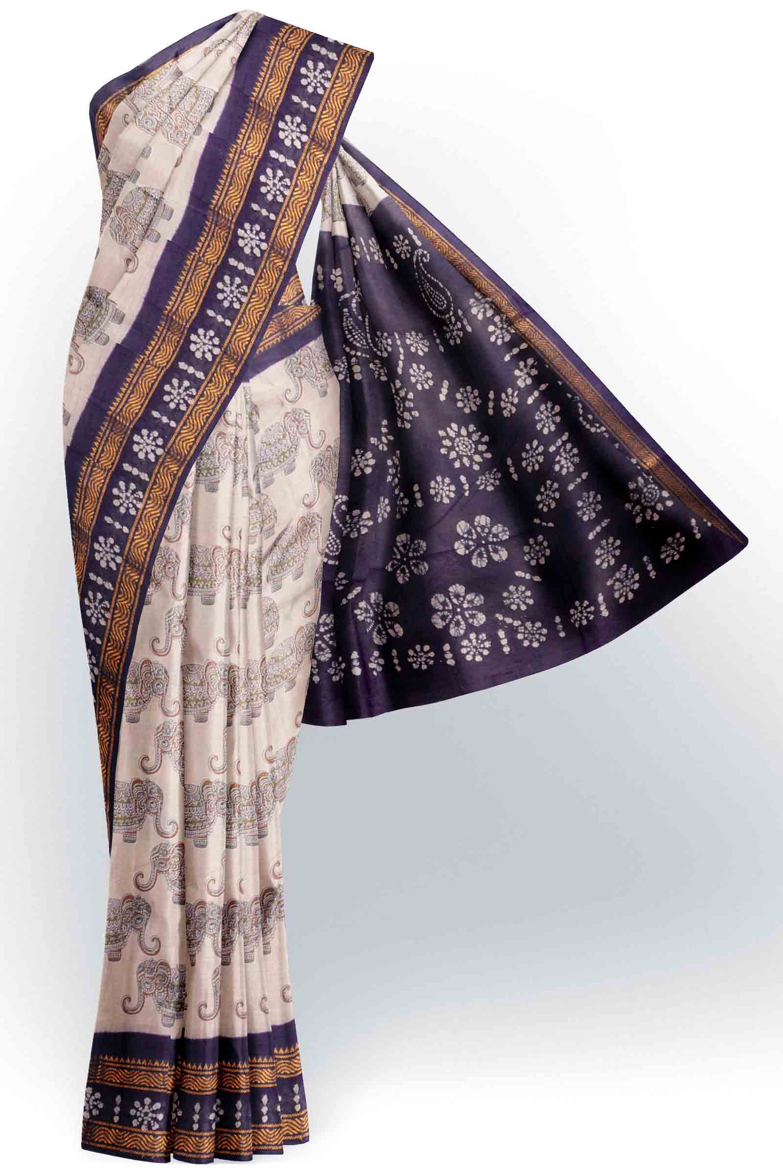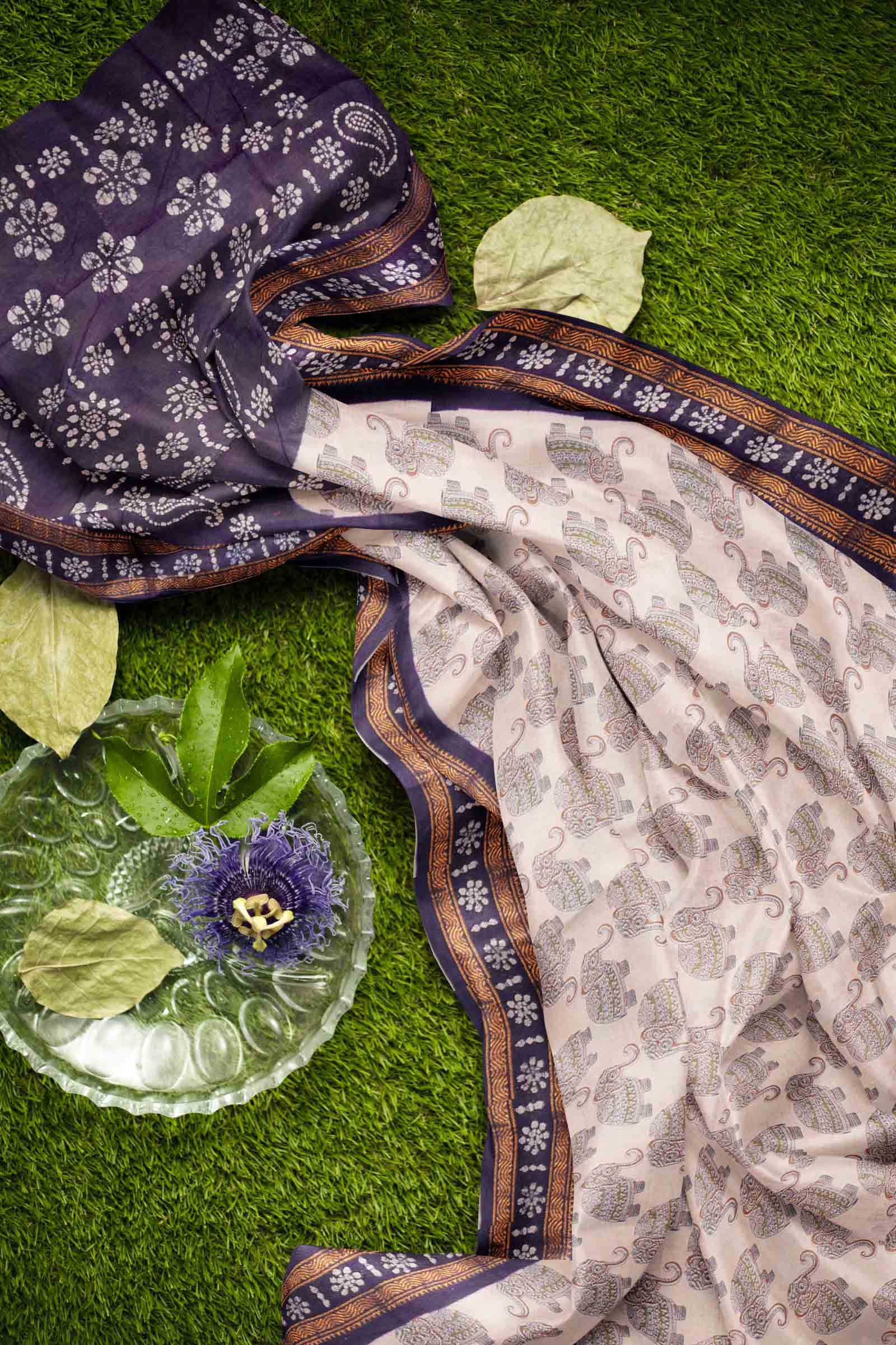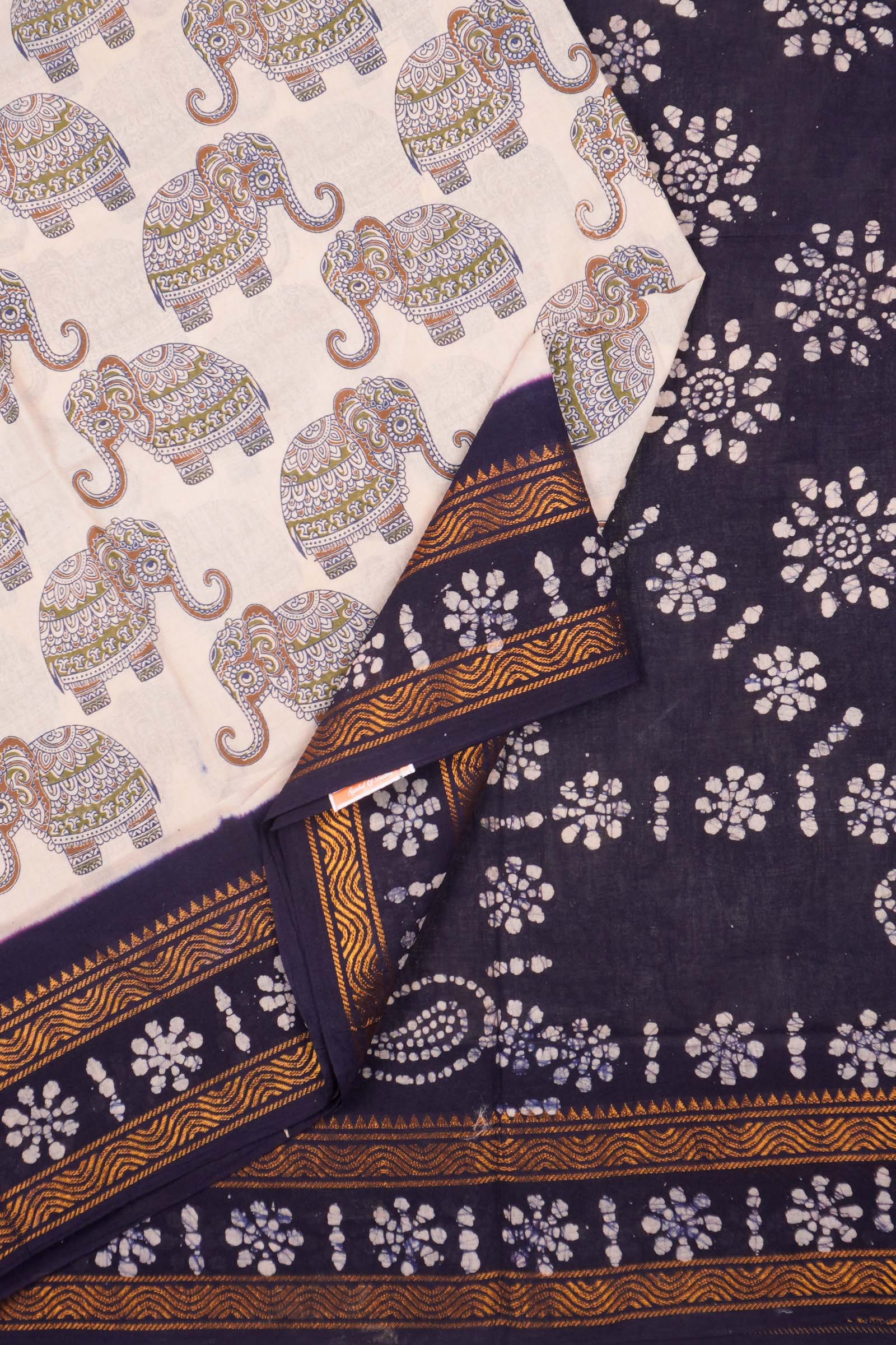 Off White Pure Sungudi Cotton Elephant Design Double Zari Border Saree NAA244