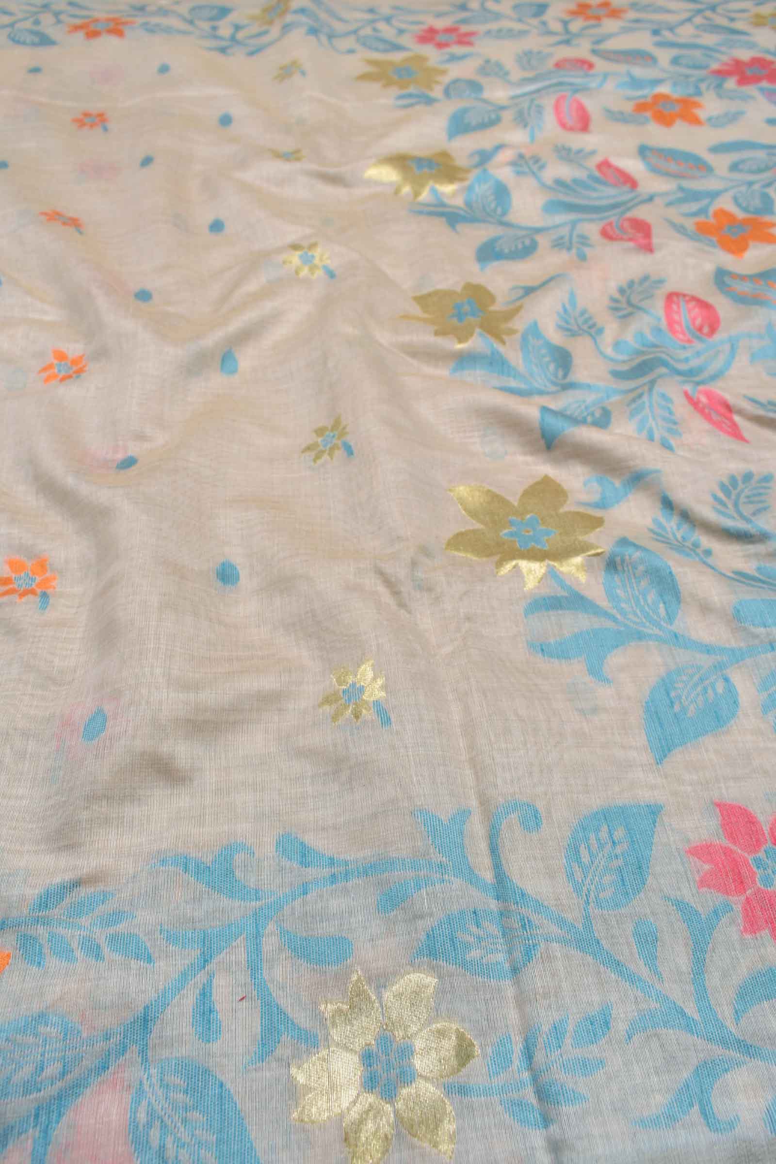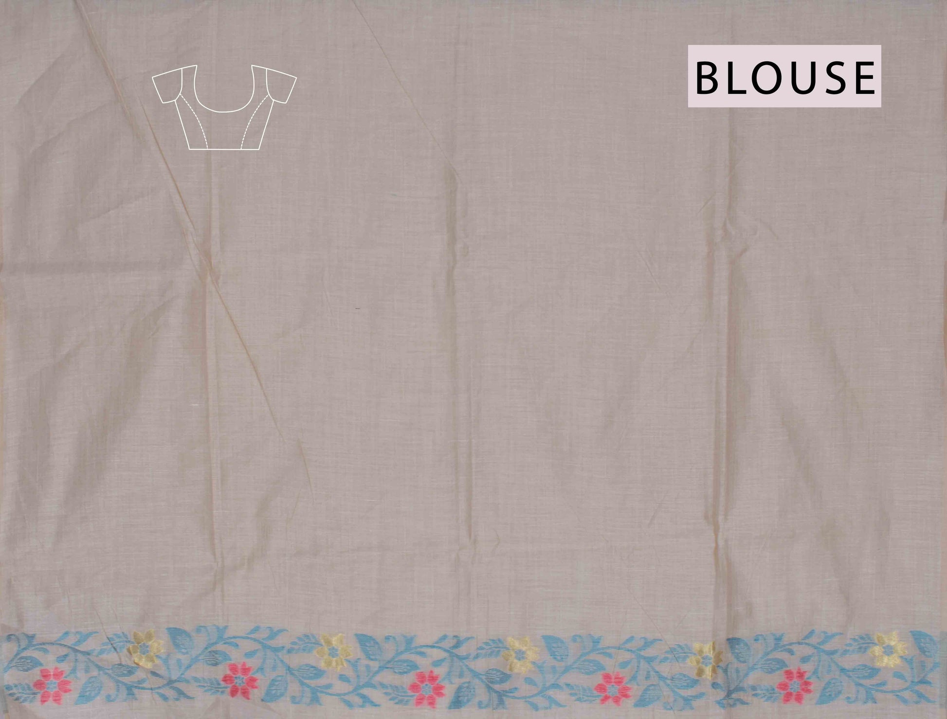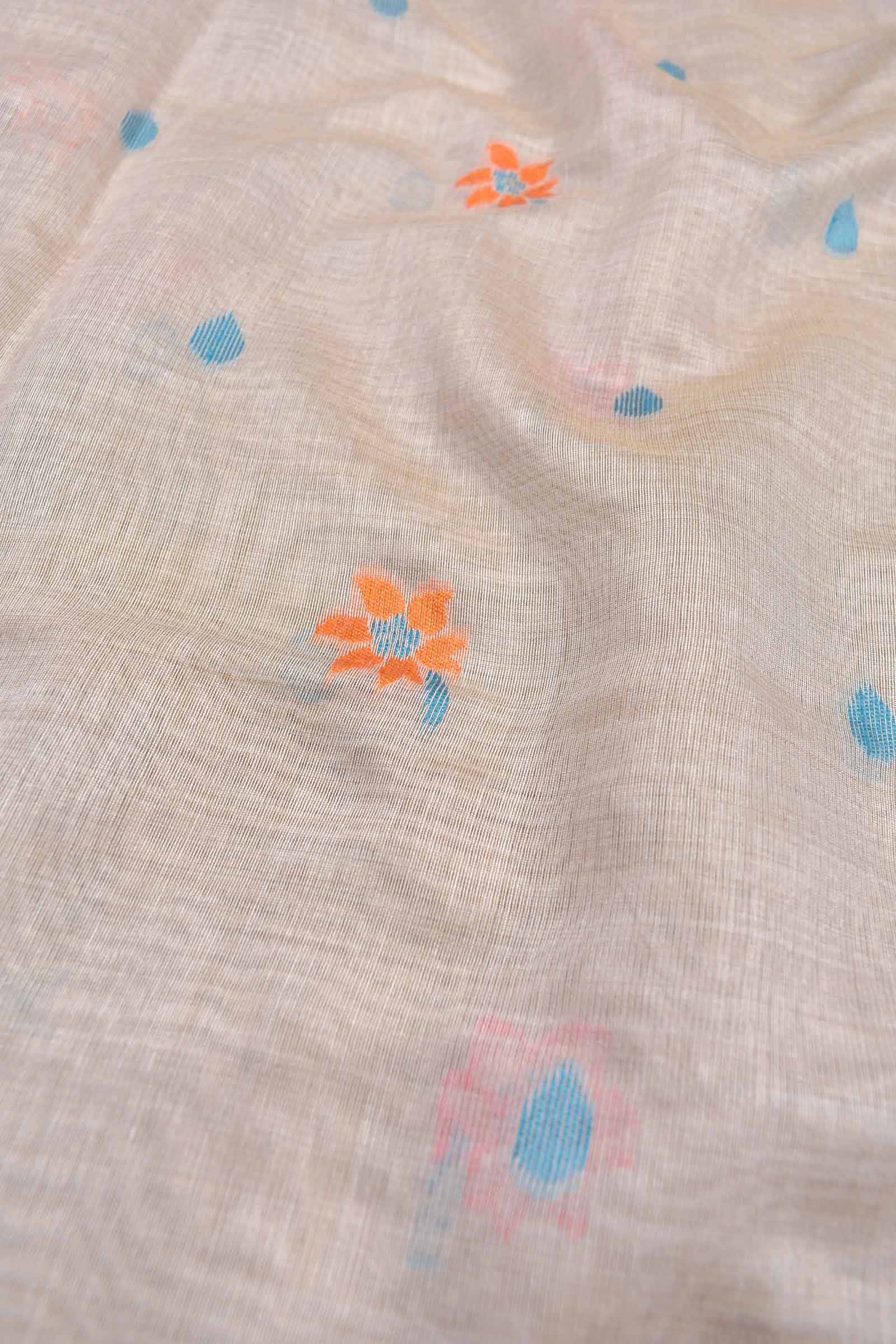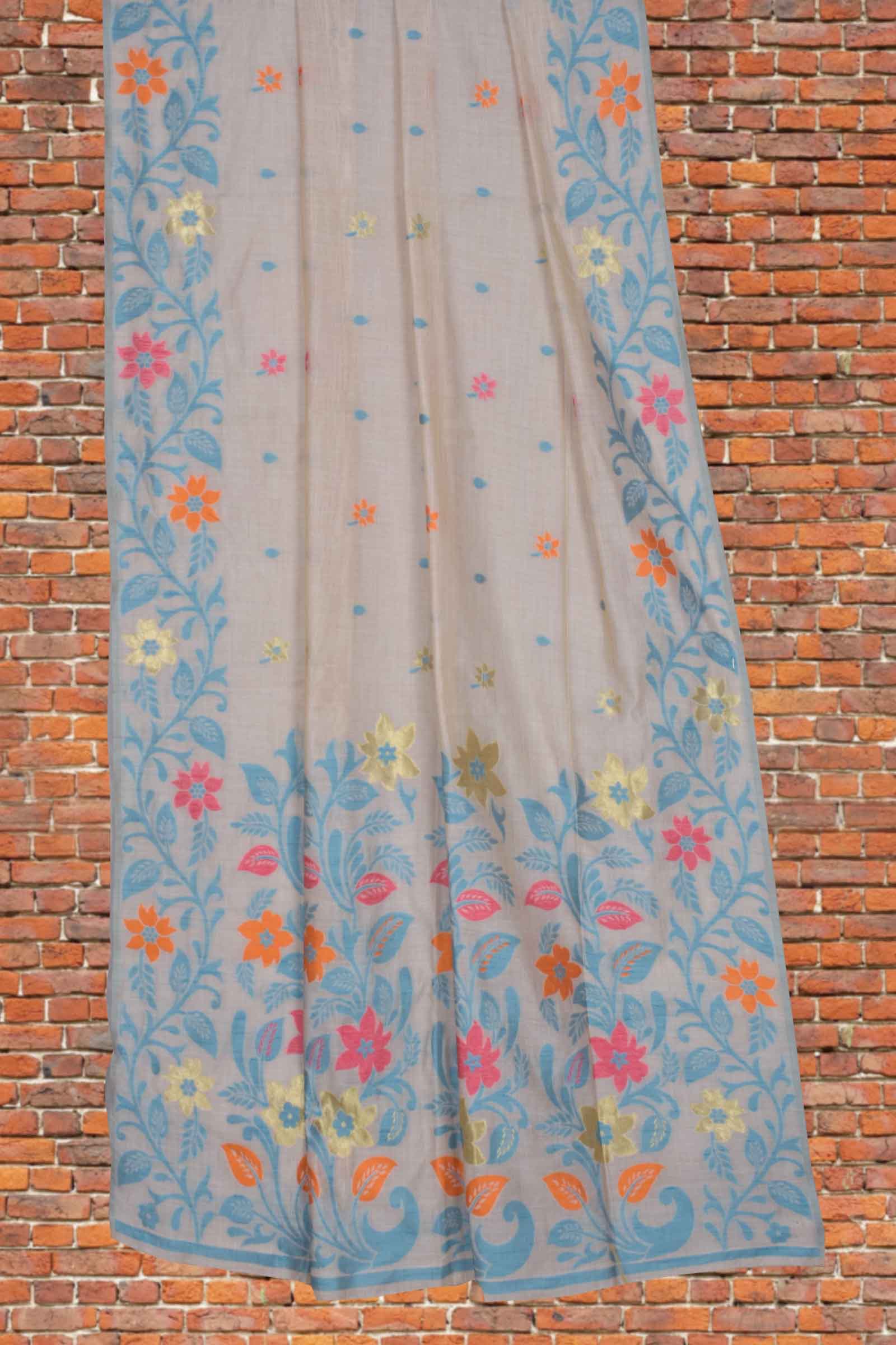 Off White Semi Tussar Flowers Butta Floral Flowers Border Pallu Saree