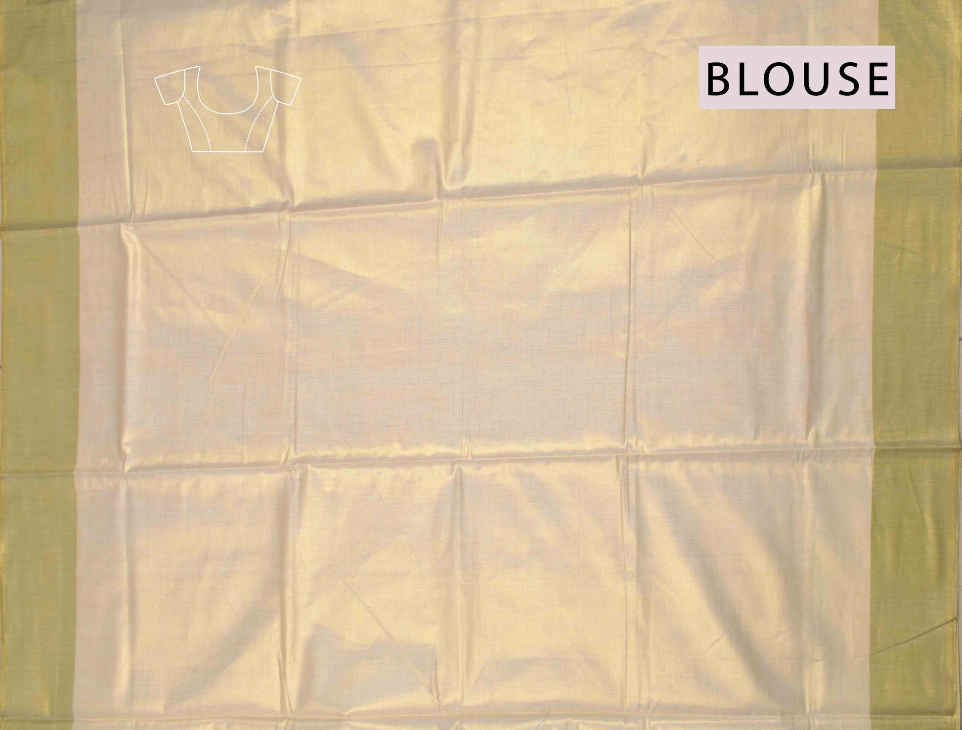 Off White With Green Kerala Tissue Cotton Golden Zari Line Saree