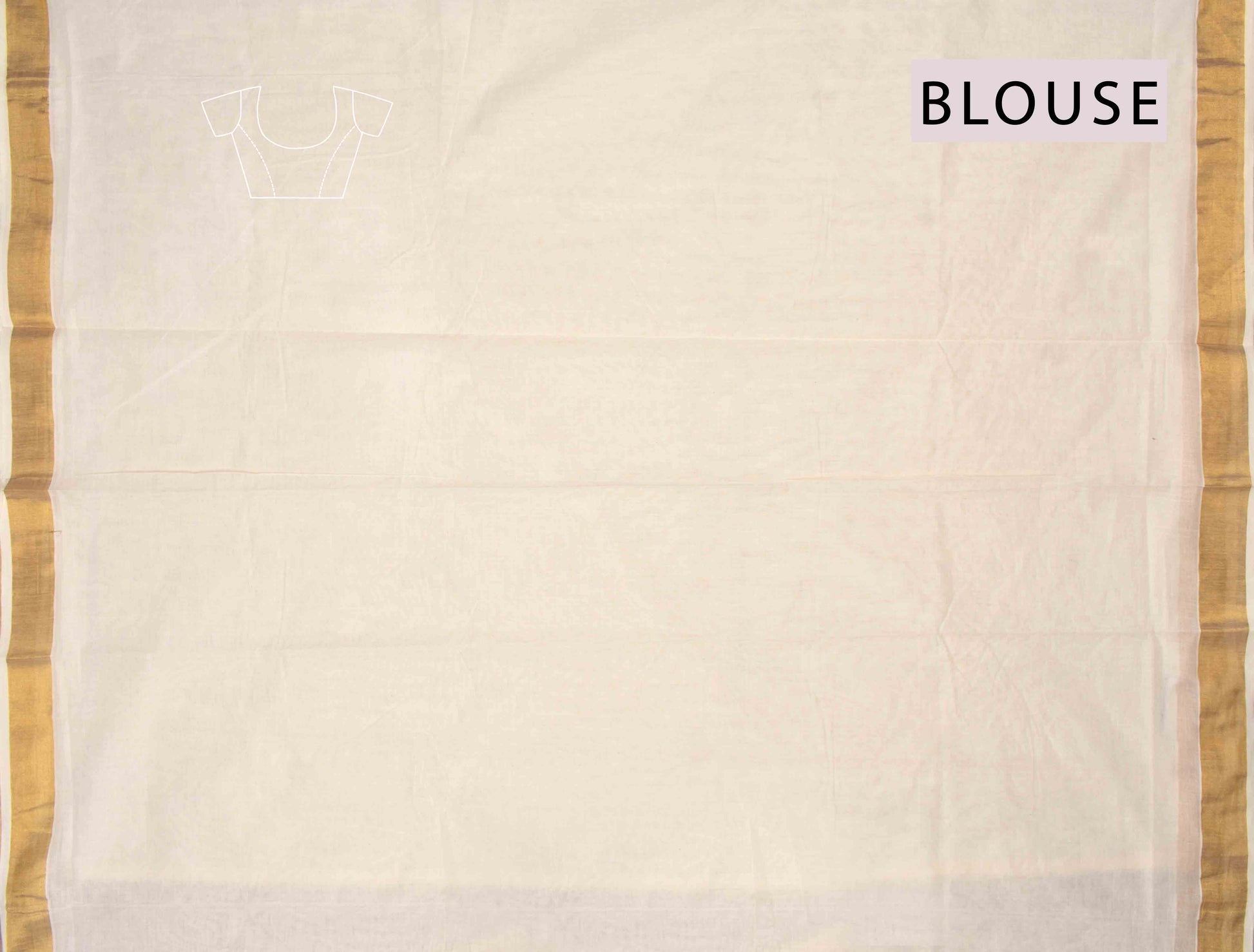 Off White With Green Pure Kerala Cotton Flowers Printed Pallu Design Gold Zari Saree