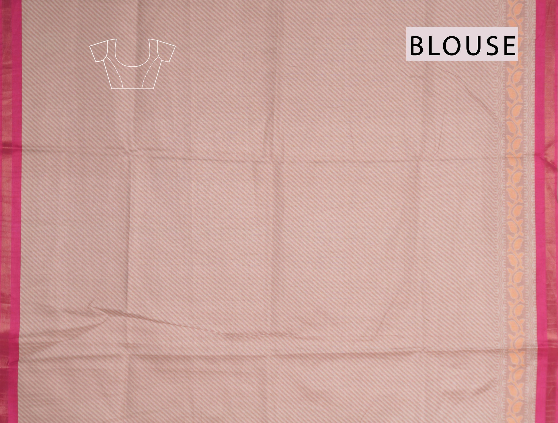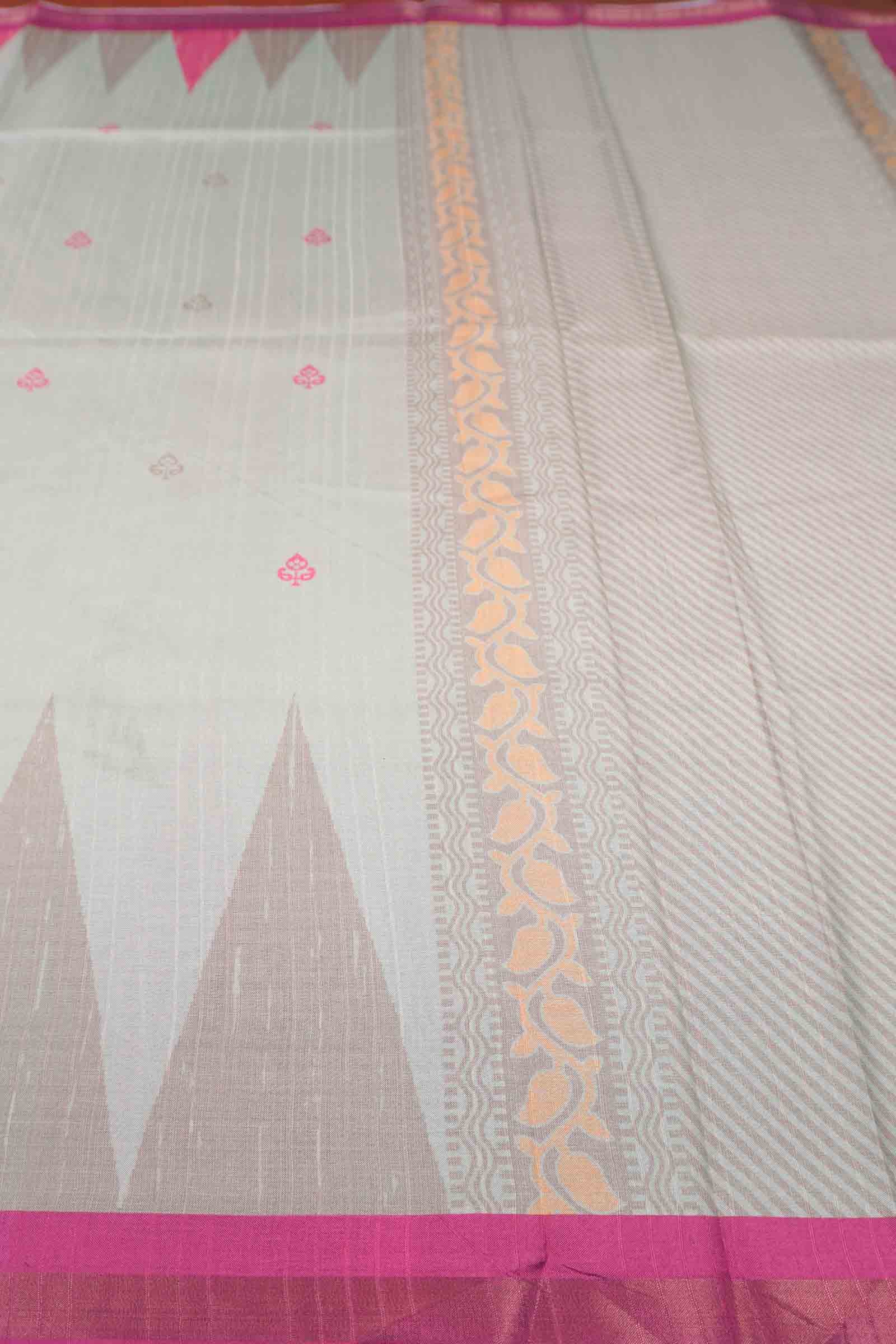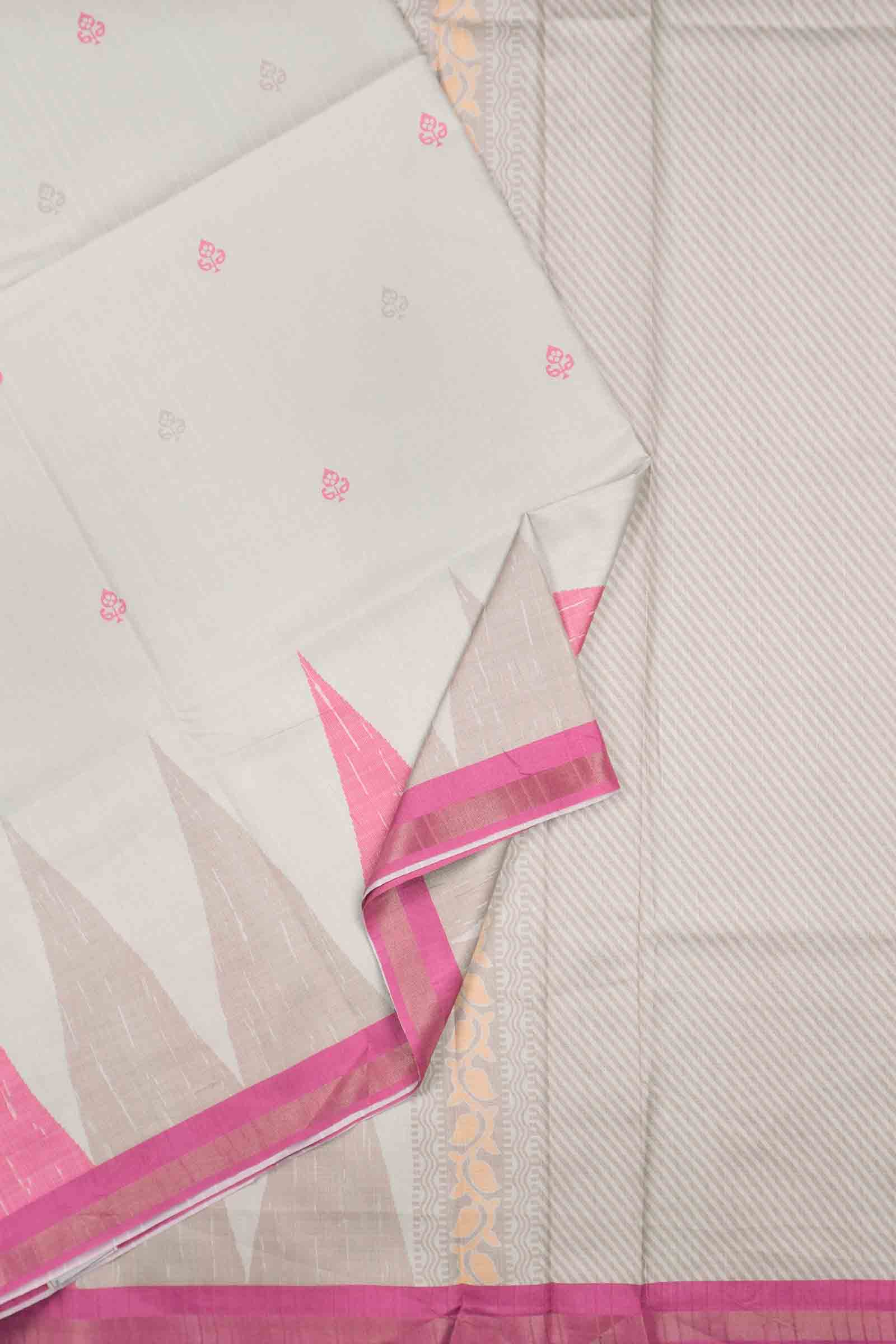 Off White With Pink Printed Cotton Temple Border Butta Saree