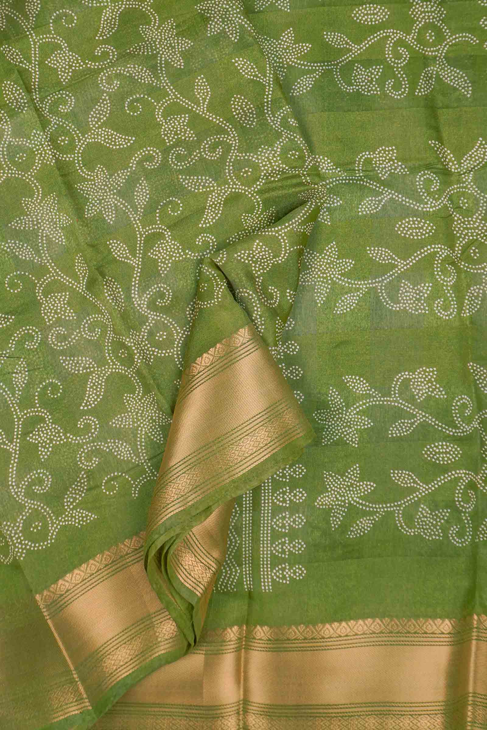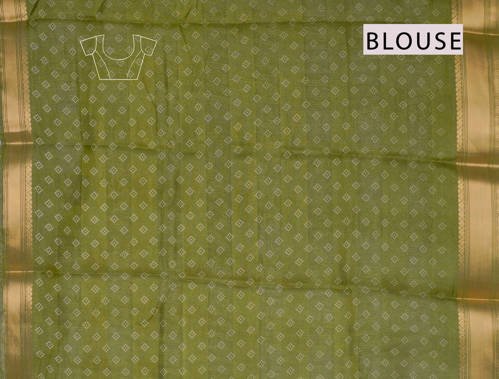 Olive Green Printed Cotton Dot Florals Zari Border Saree