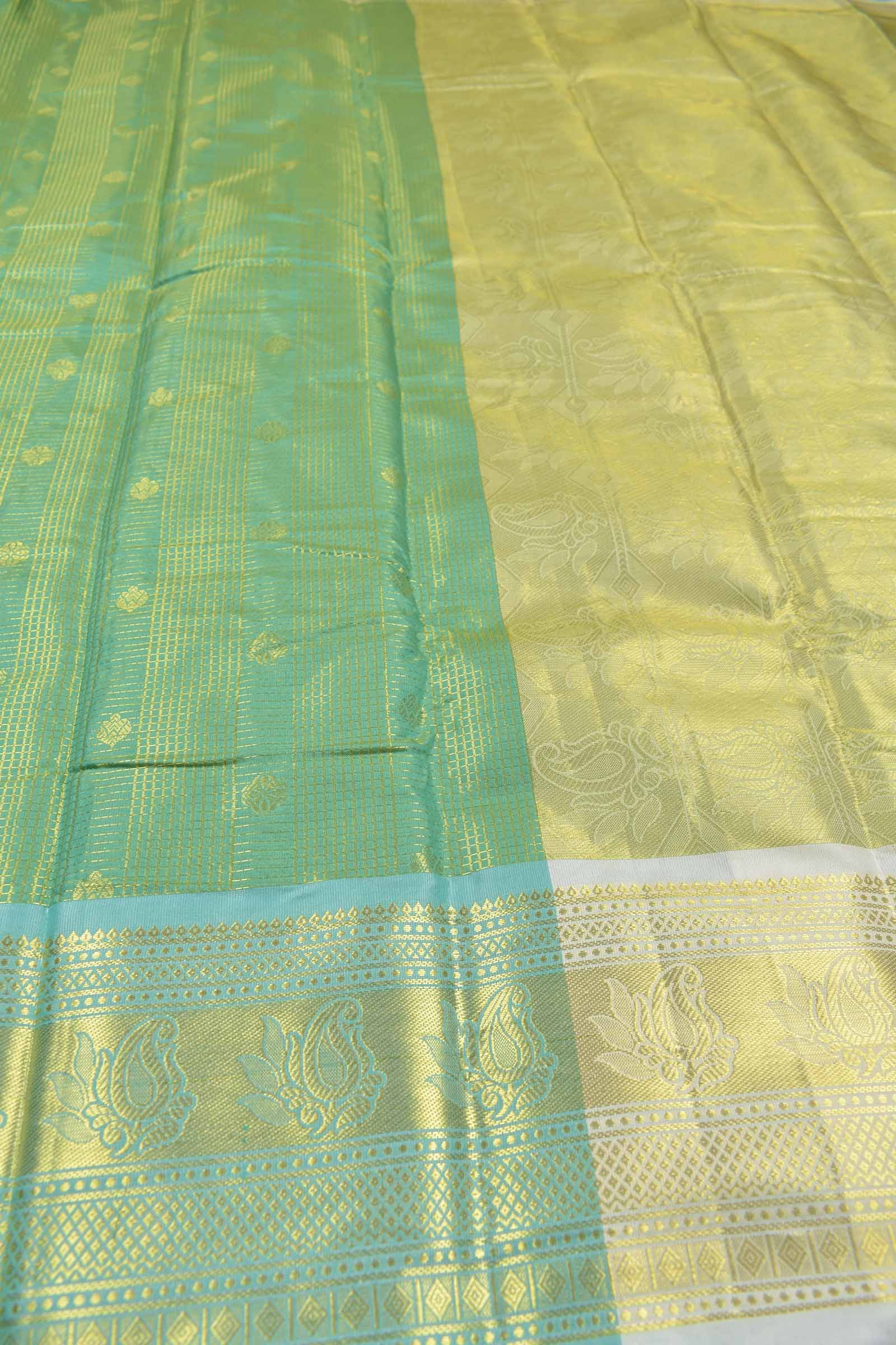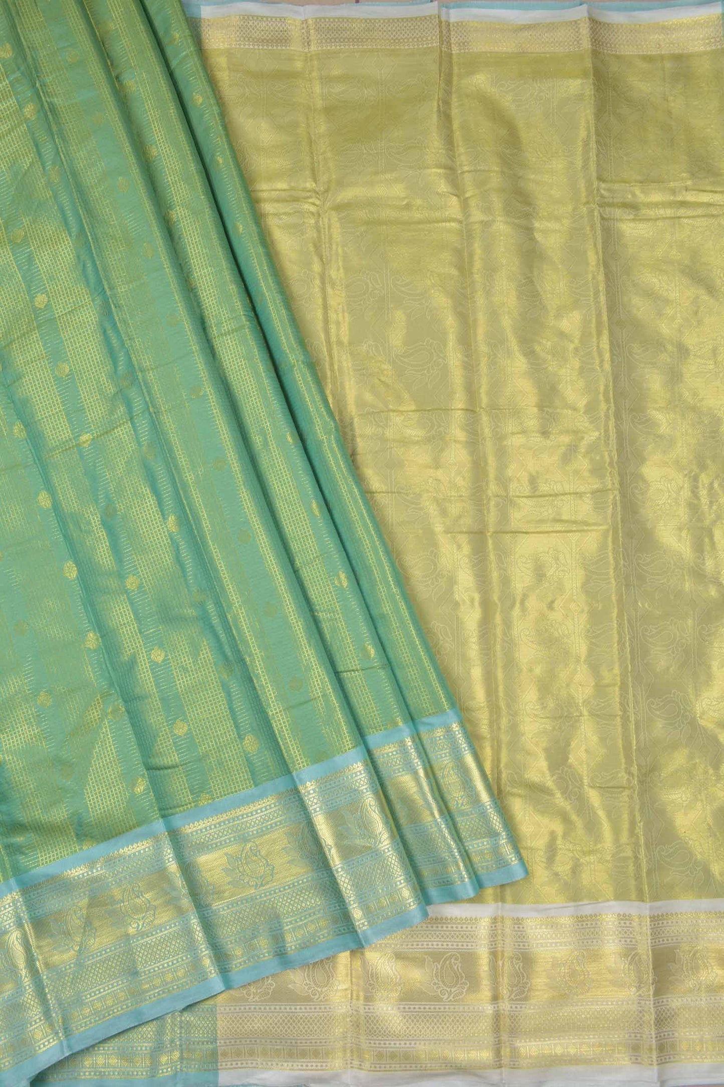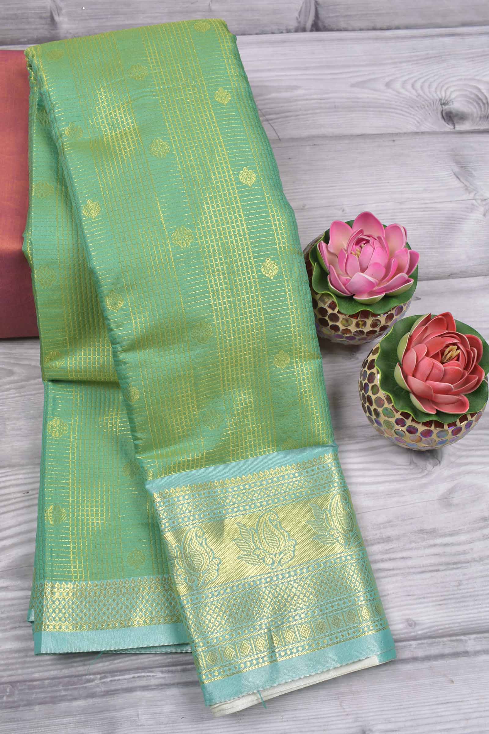 Golden Green Semi Silk Mini Checks Butta Golden Pallu Border Saree