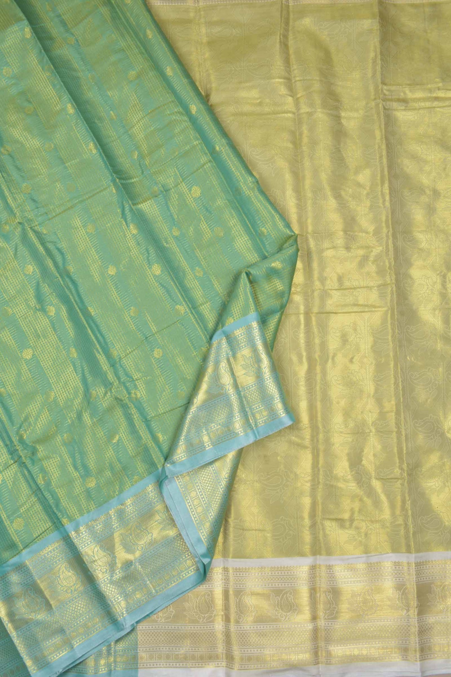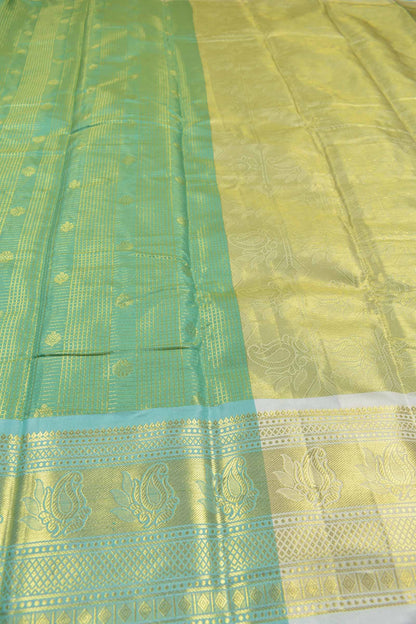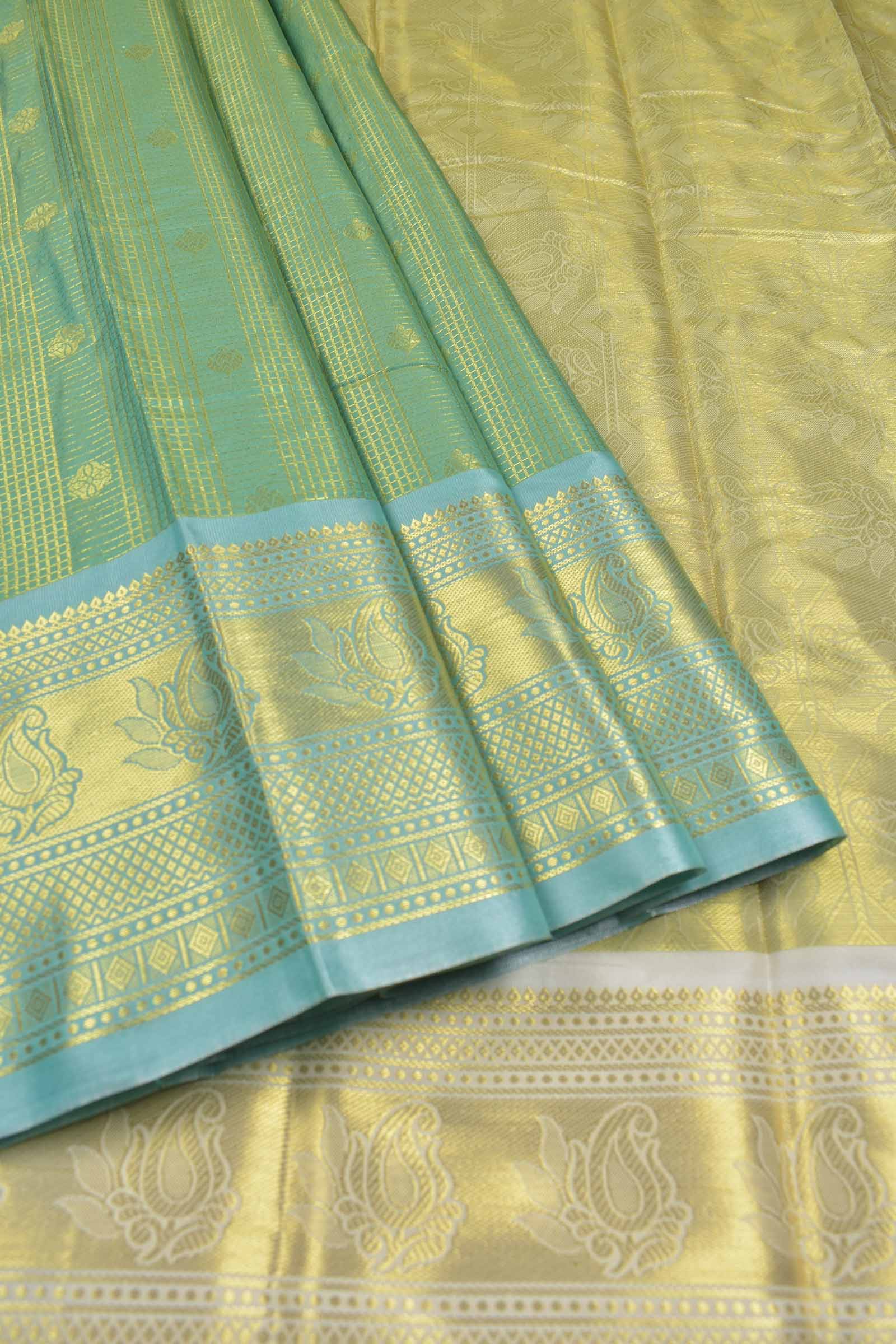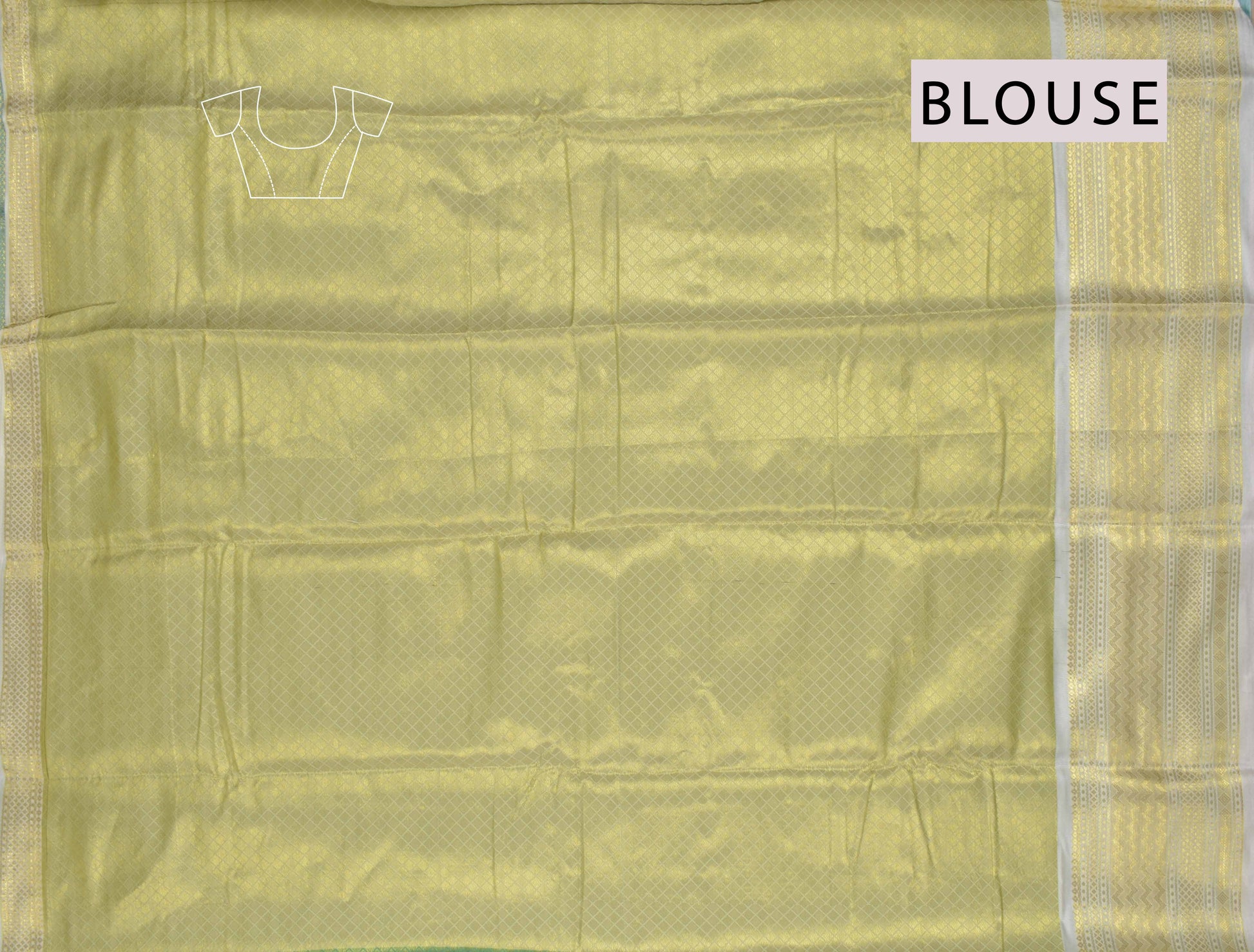 Golden Green Semi Silk Mini Checks Butta Golden Pallu Border Saree