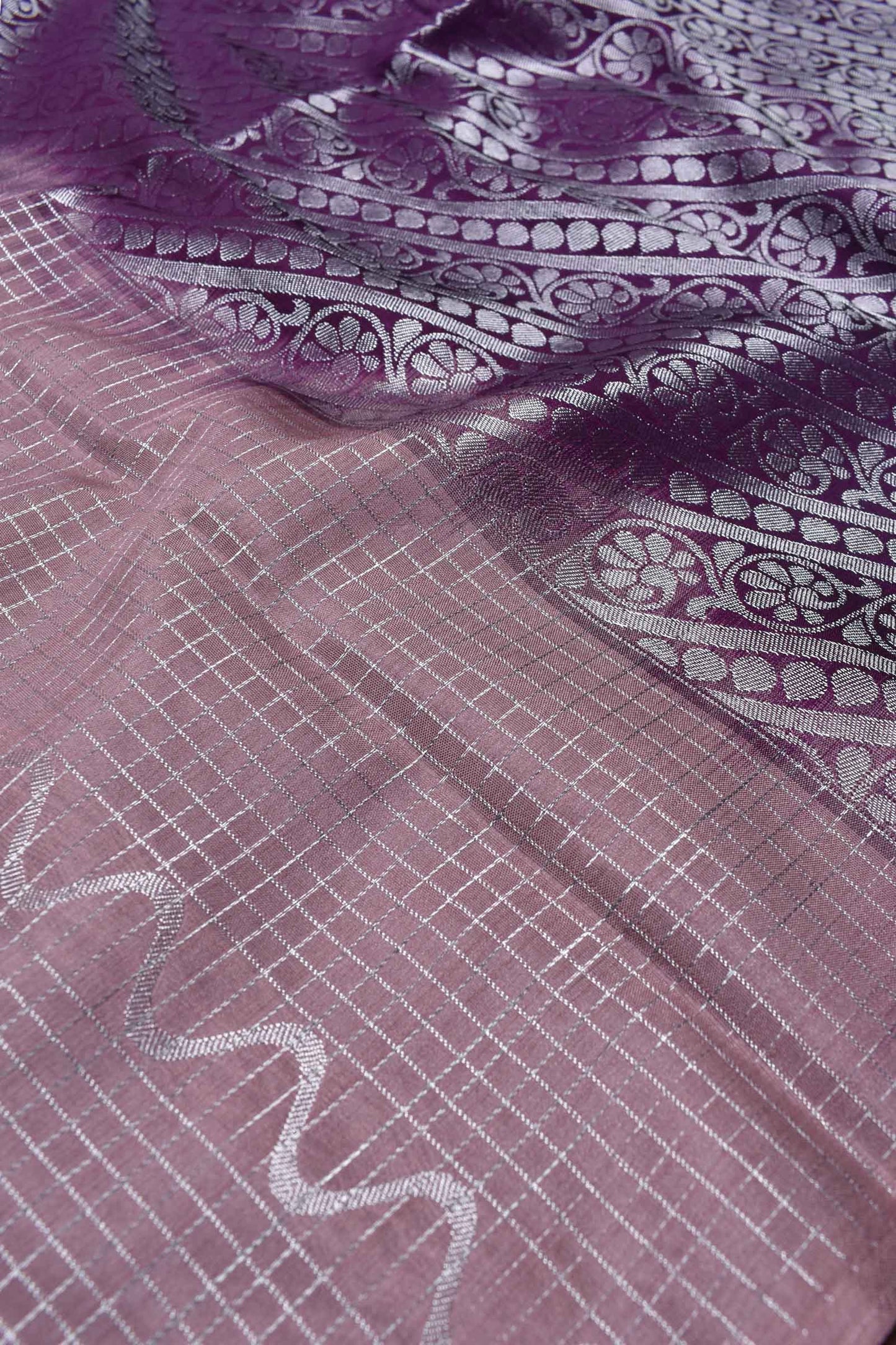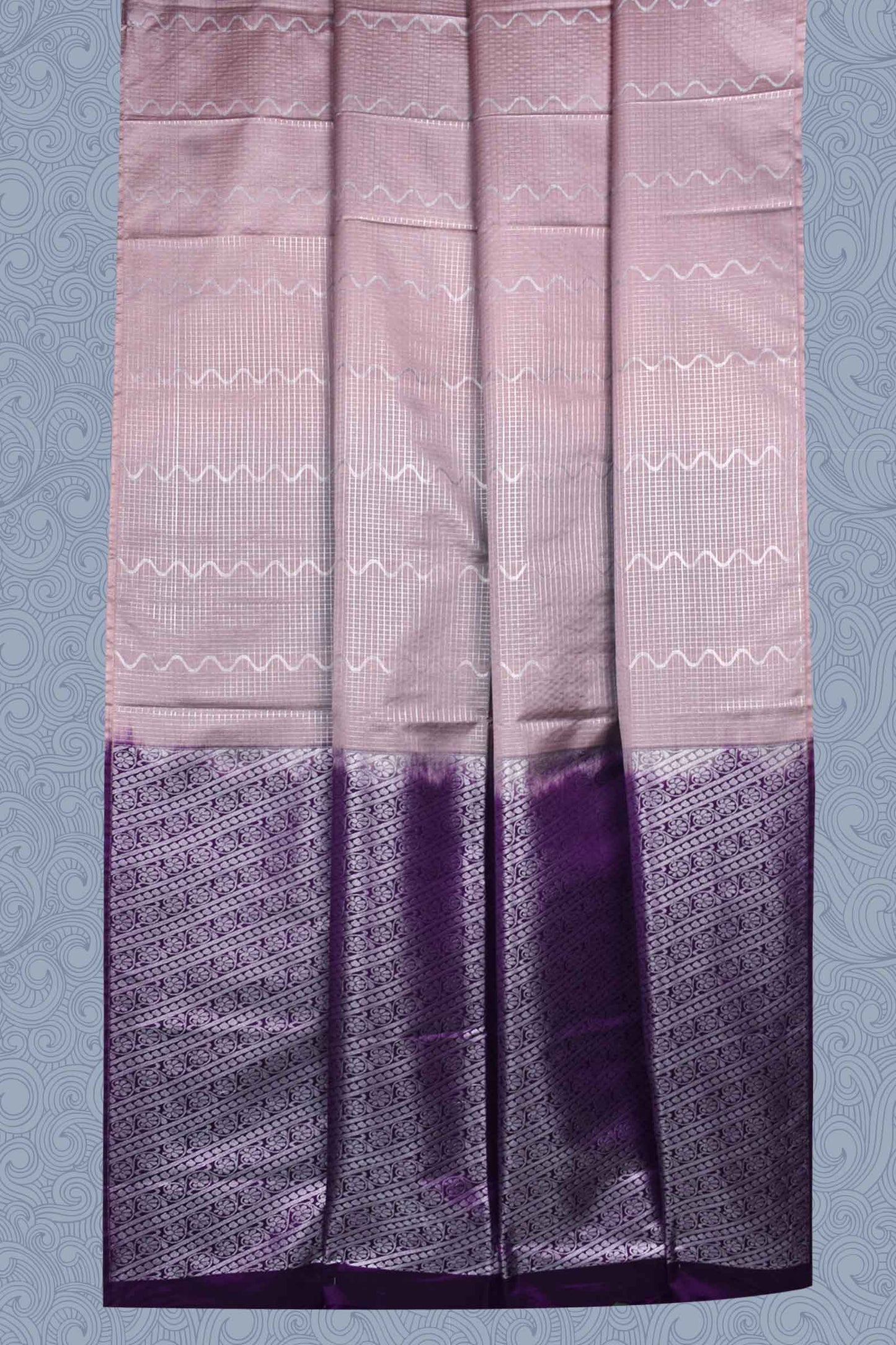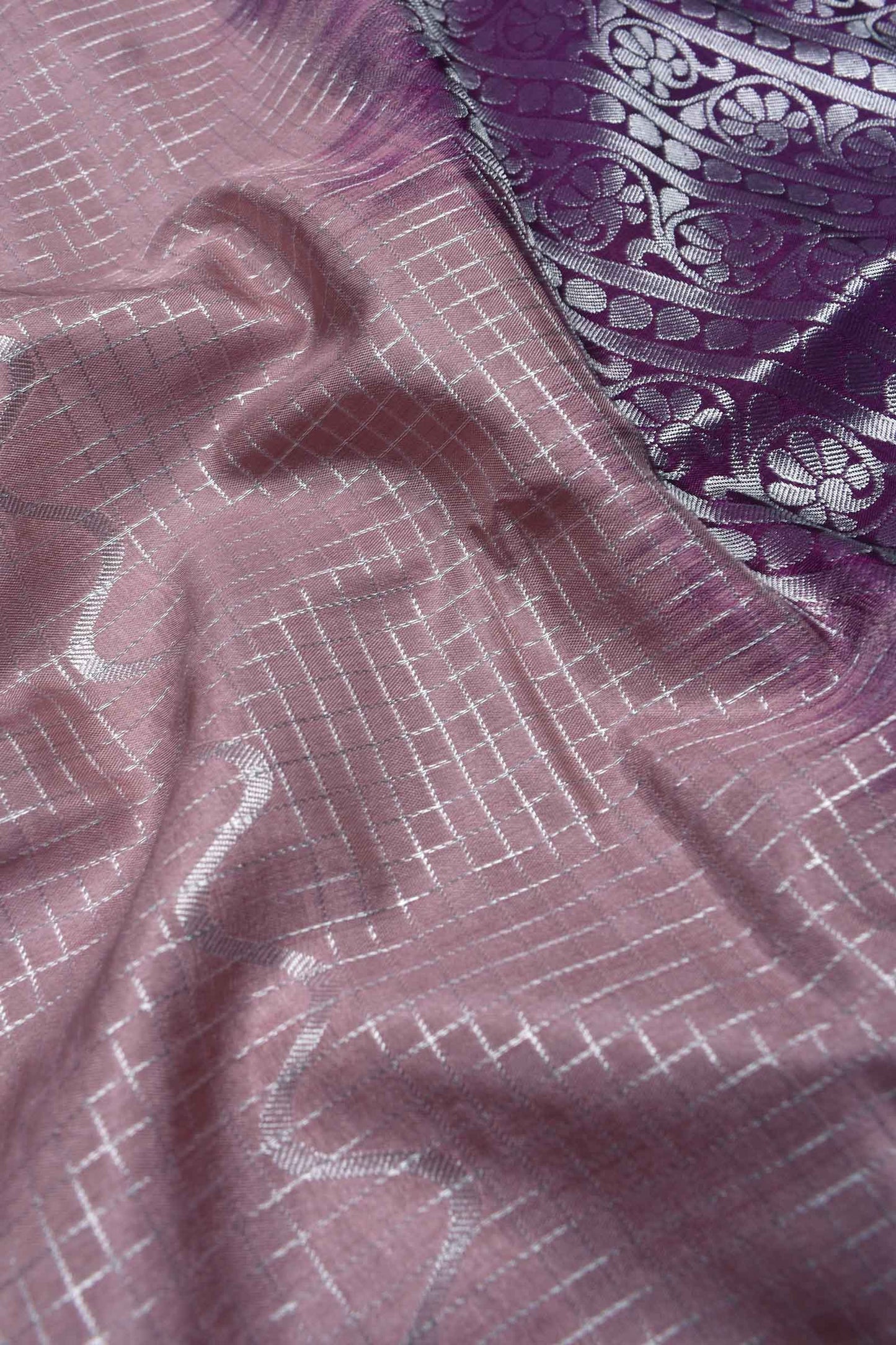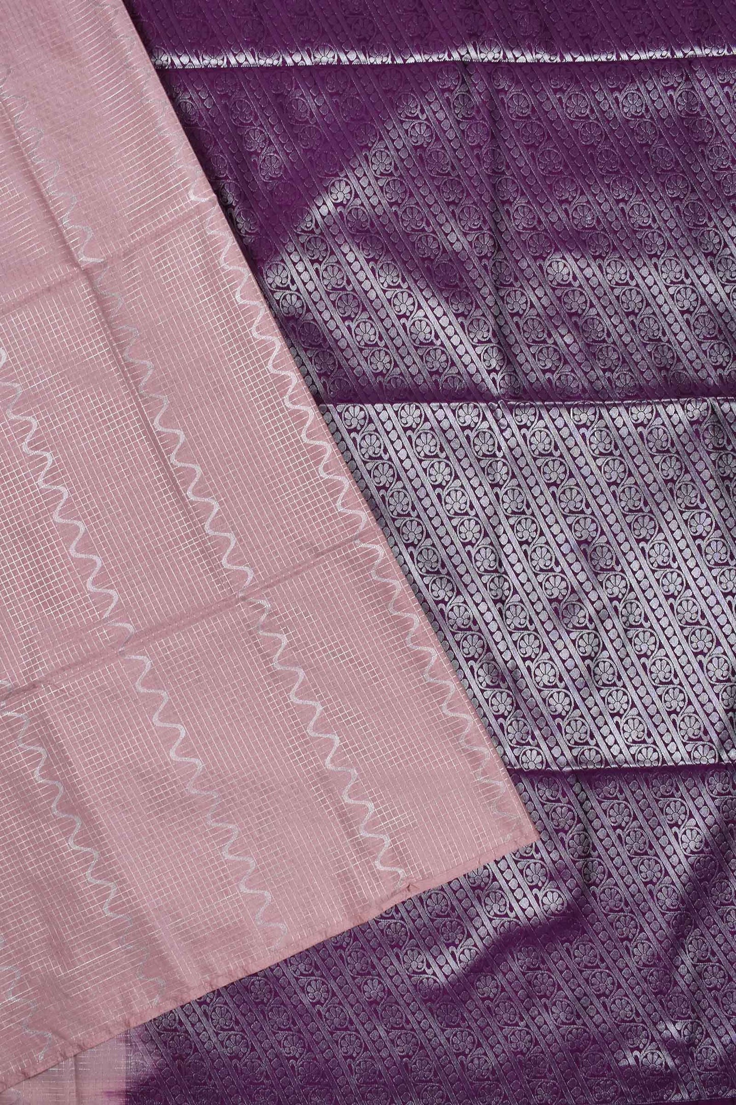 Pink Checkered Waves Semi Soft Silk Contrast Violet Pallu Saree
