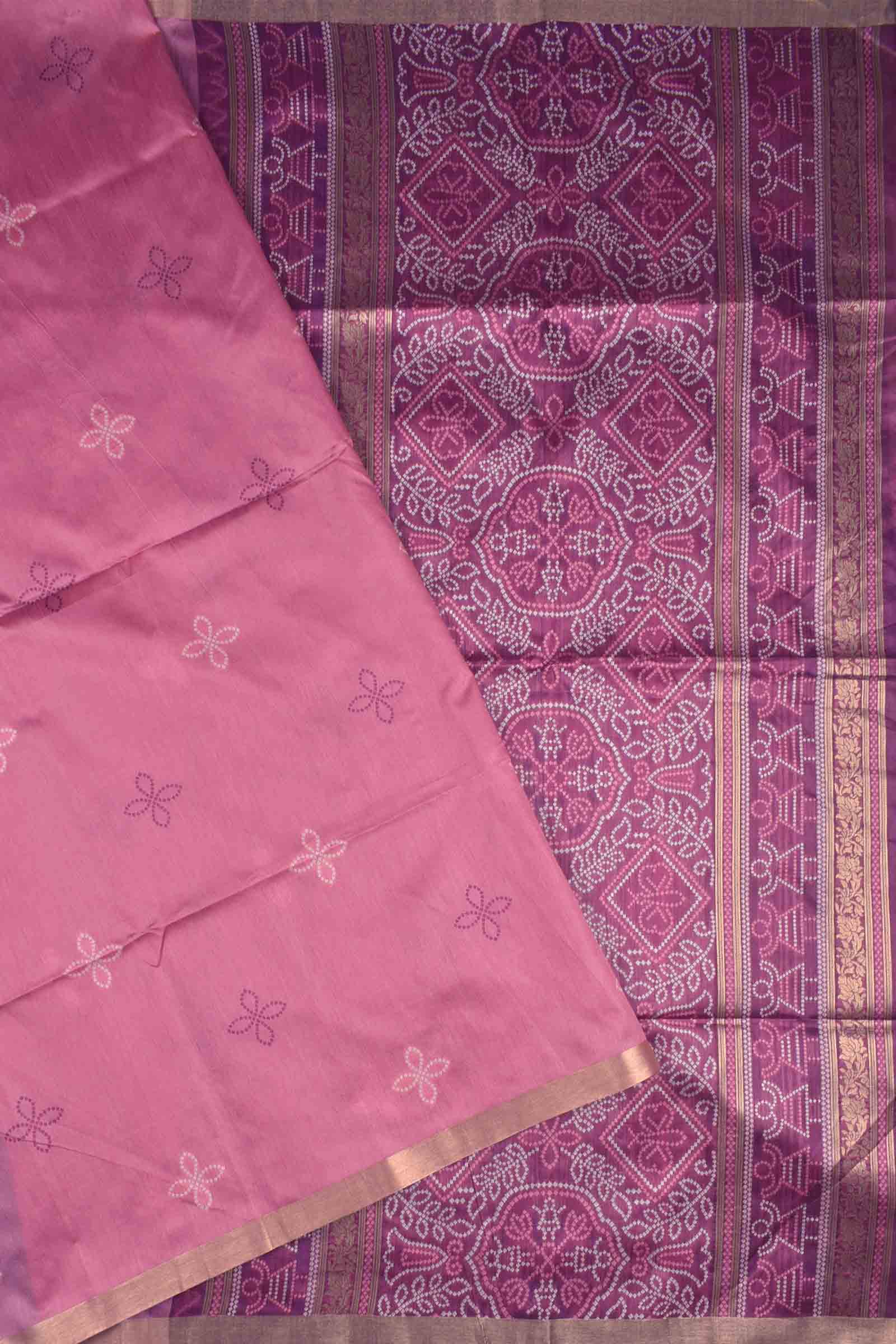 Pink Bandhej Silk Zari Border Saree