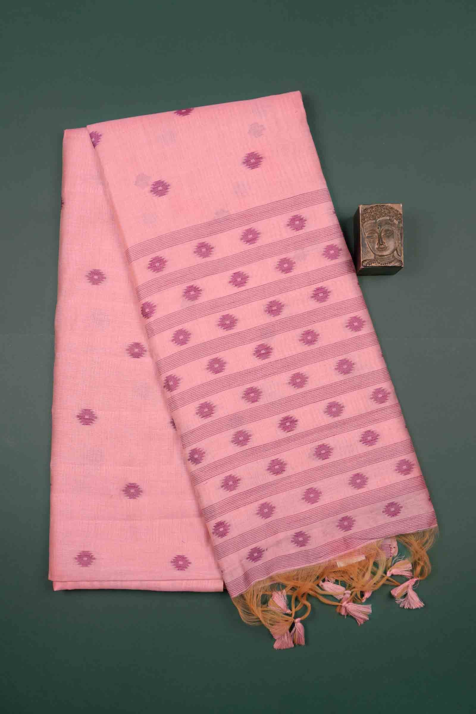 Pink Soft Bengal Cotton Mini Bengal Butta Saree