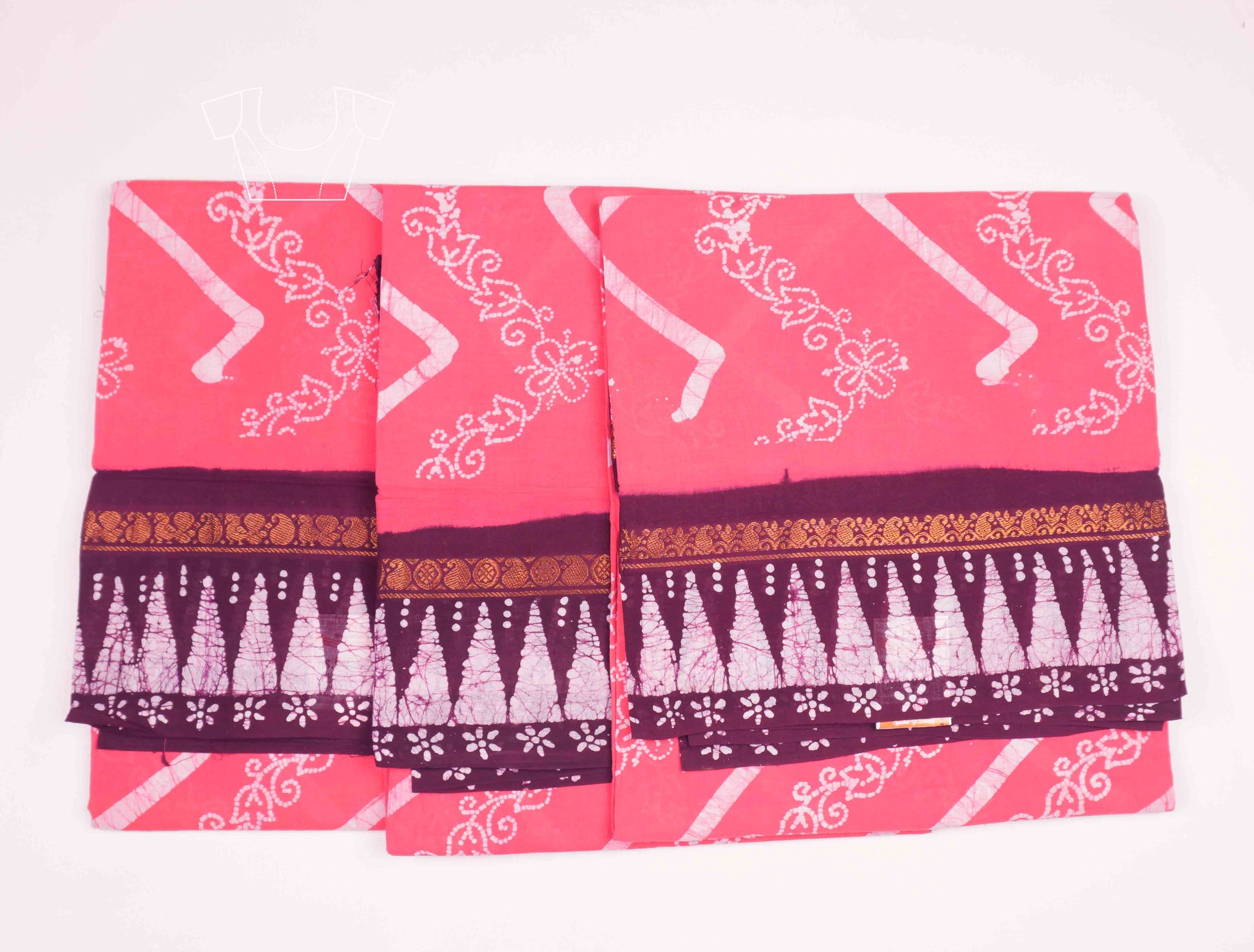 Pink Pure Sungudi Cotton Chevron Stripes Zari Peacock Border Saree