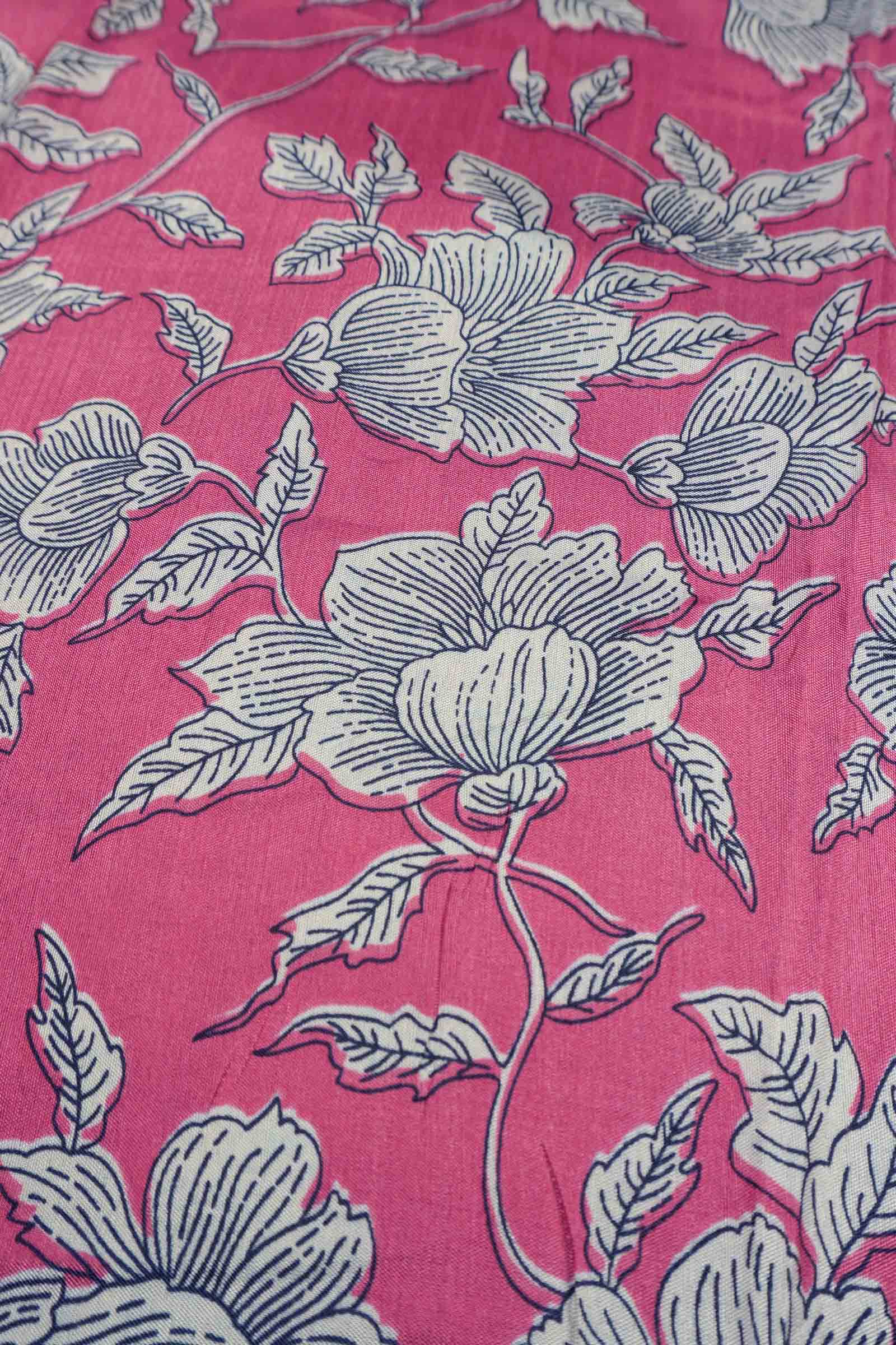 Pink Semi Dola Flowers Print Zari Border Saree