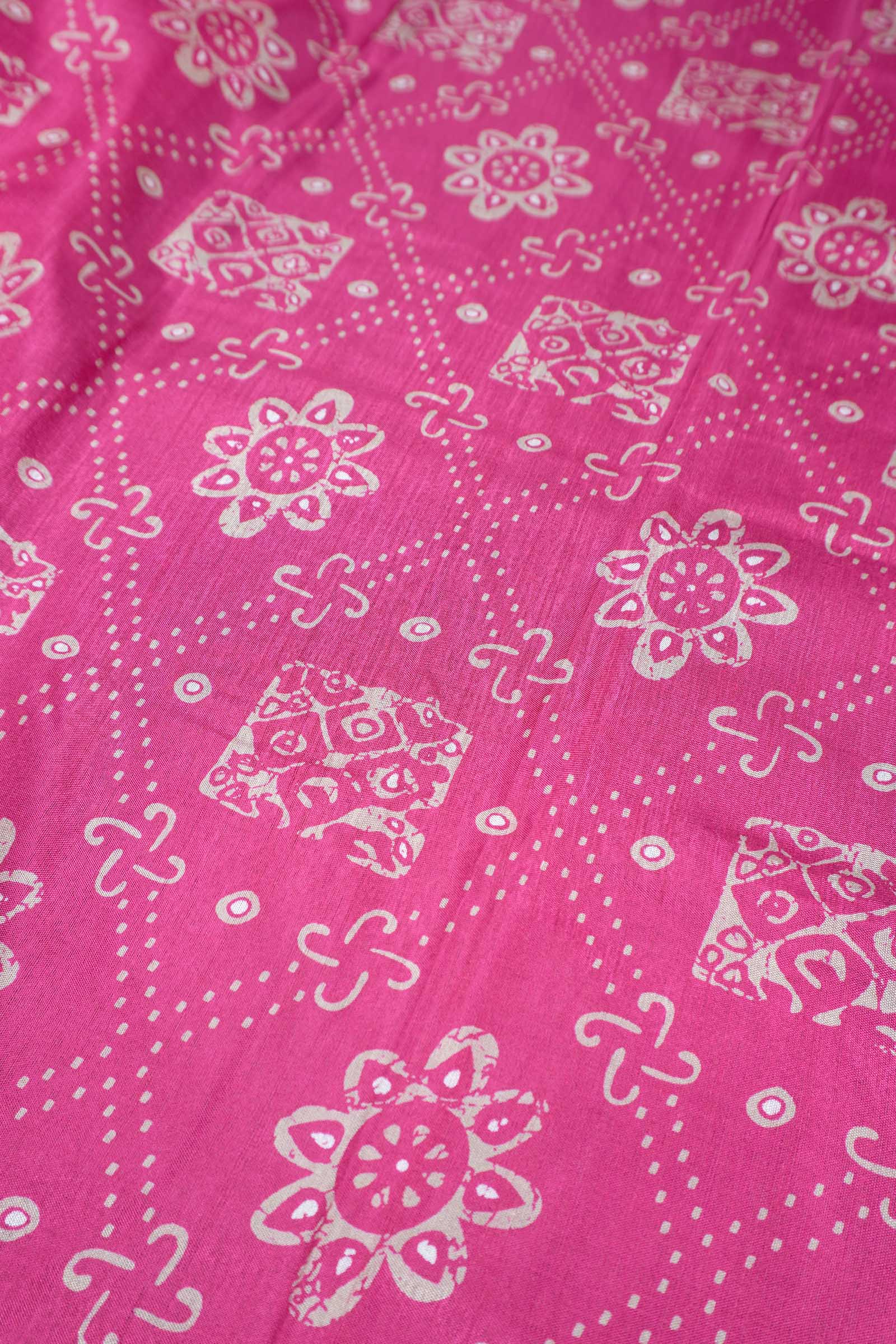 Pink Semi Dola Floral Frames Print Zari Border Saree