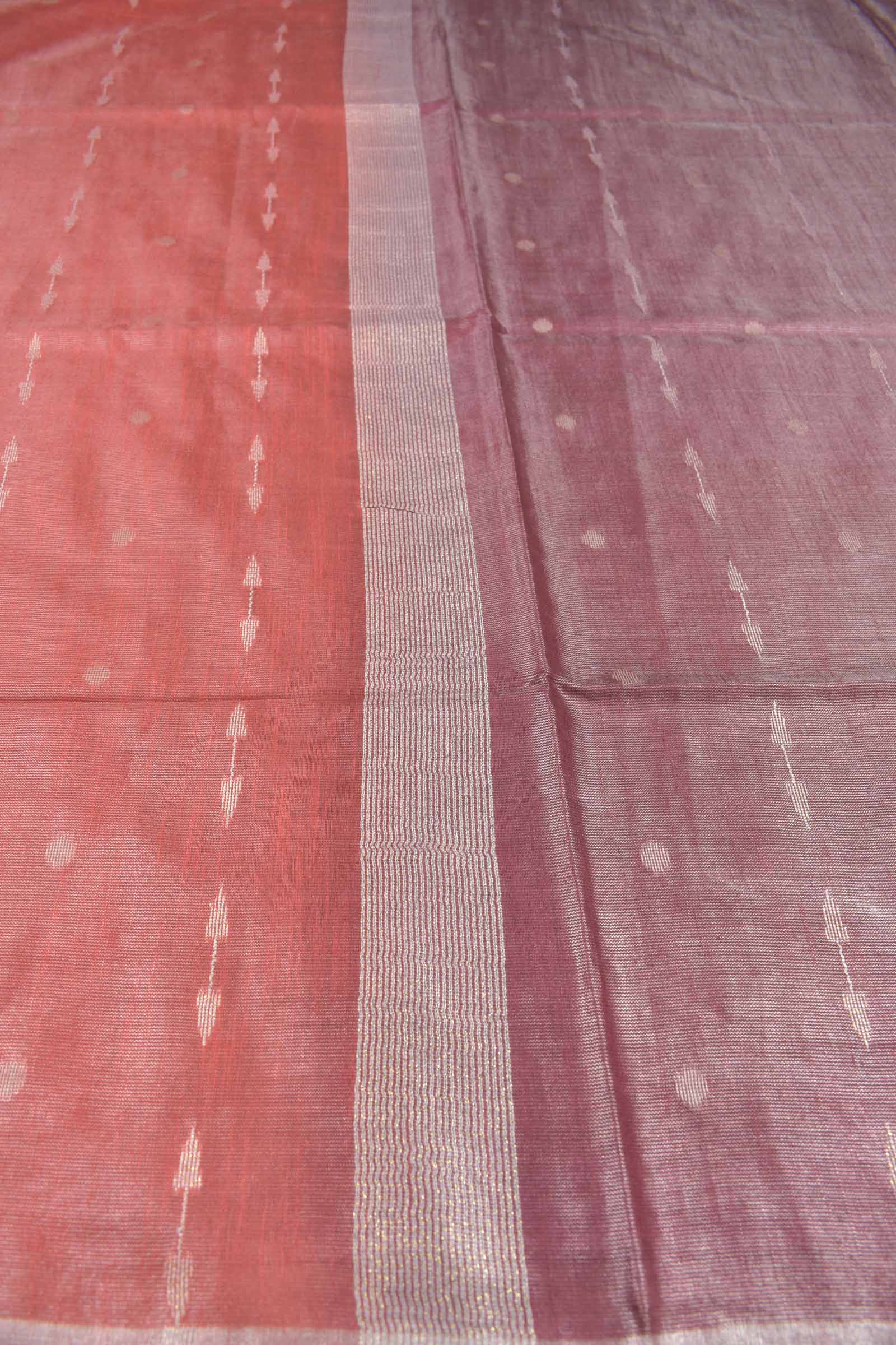 Light Red Semi Linen Dots and Darts Tissue Style Saree