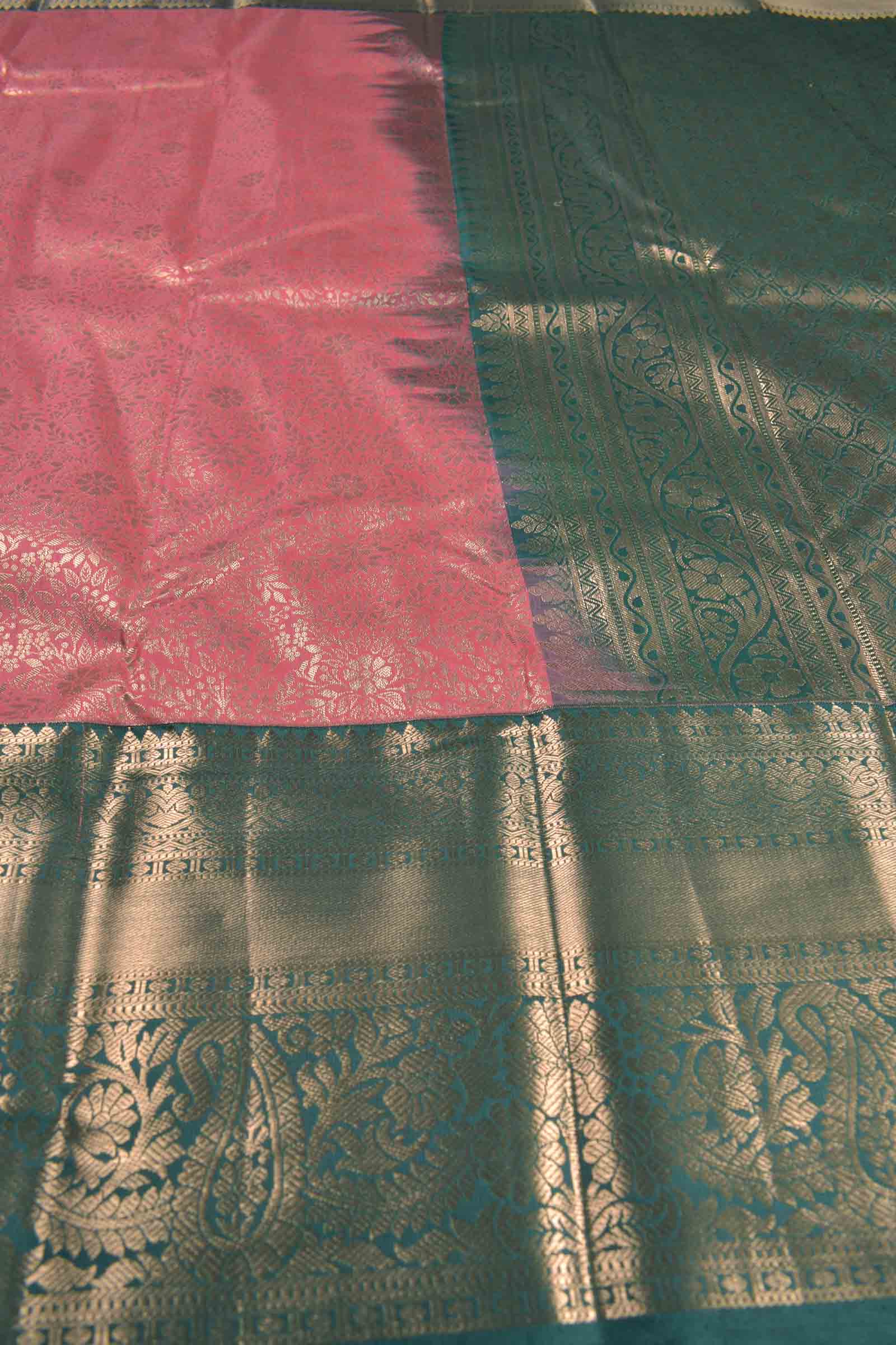 Pink Semi Silk Golden All Over Golden Green Zari Border Pallu Saree