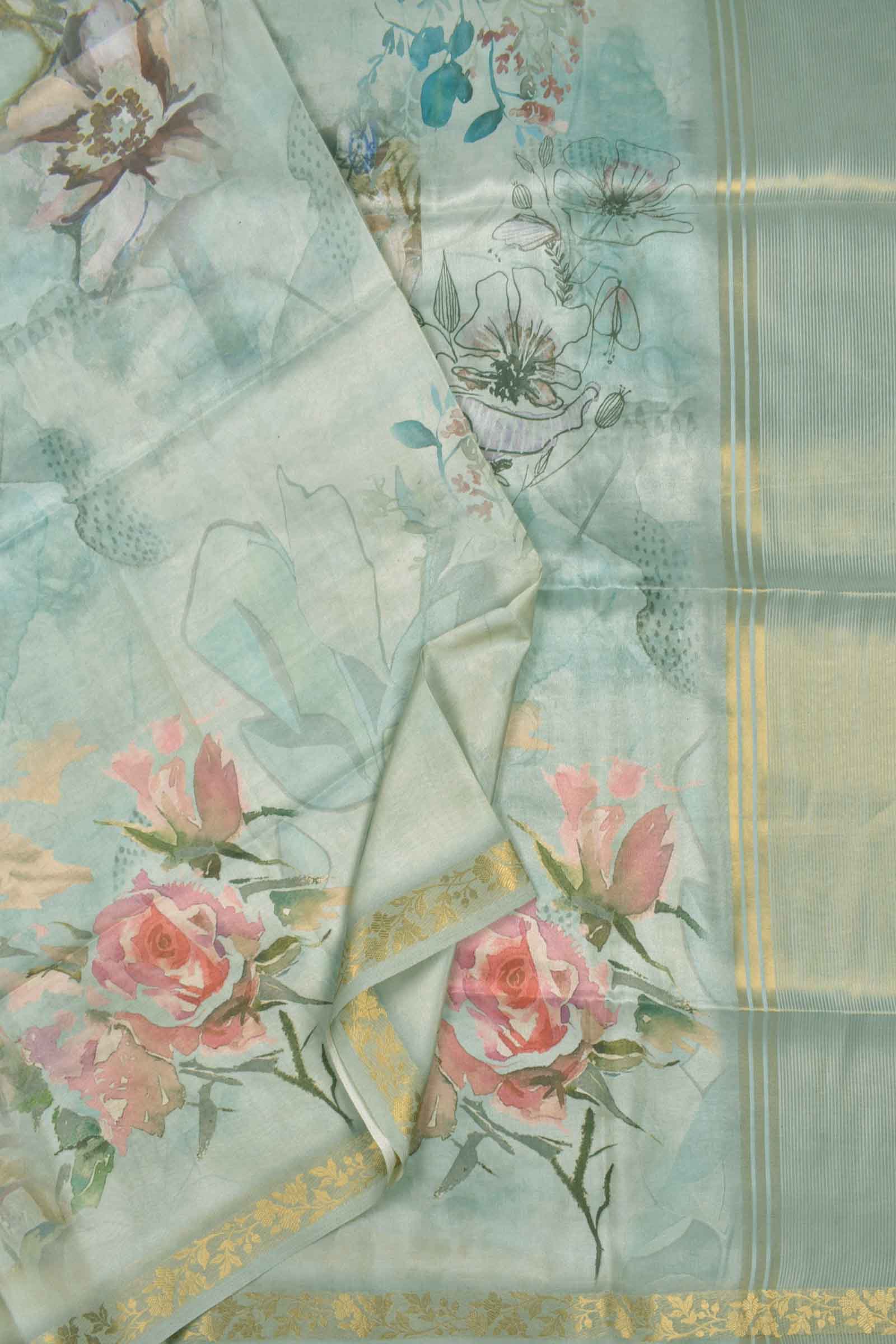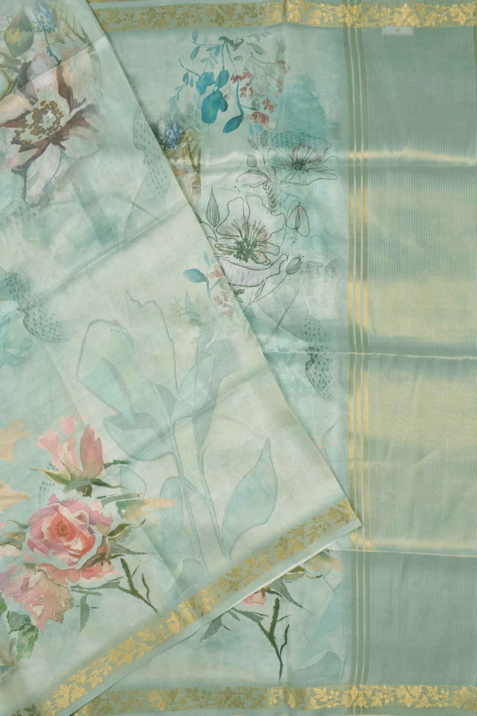 Powder Blue Tissue Fancy Cotton Dreamy Floral Saree