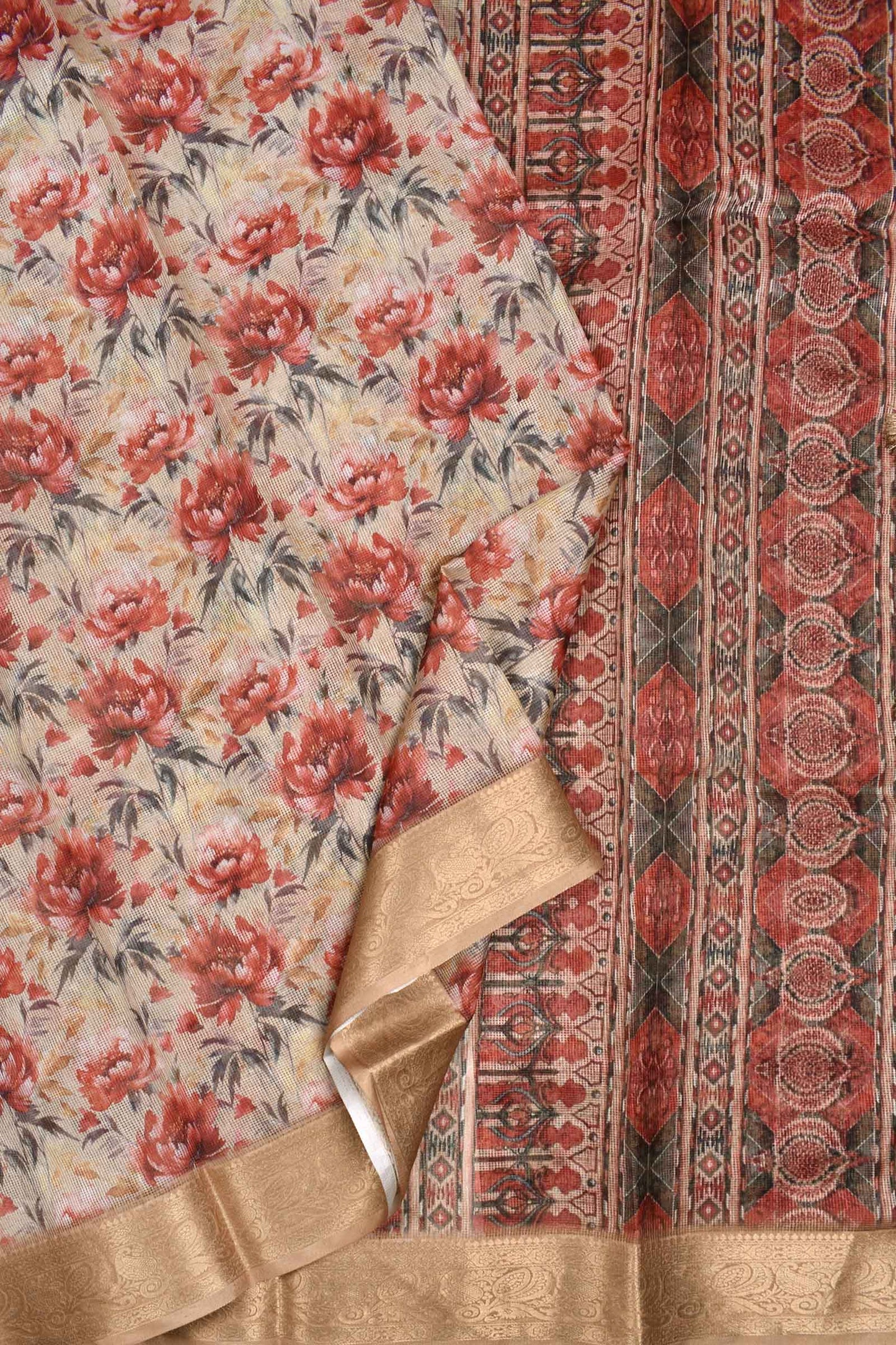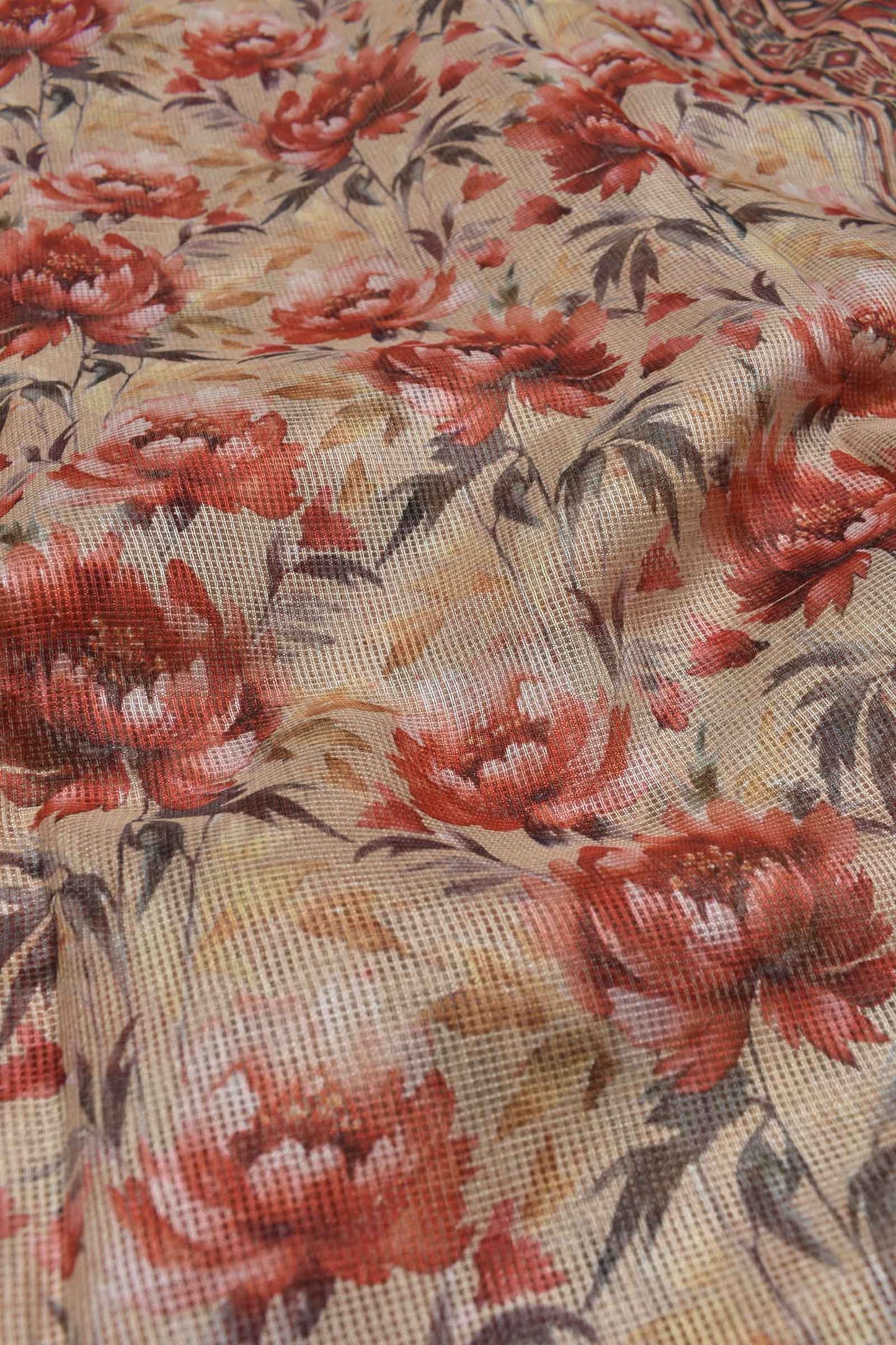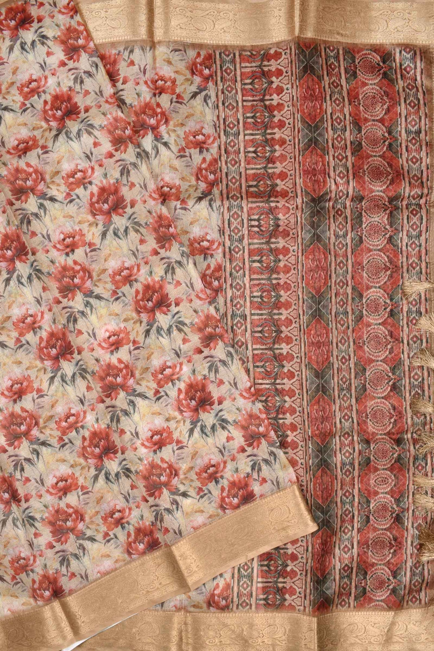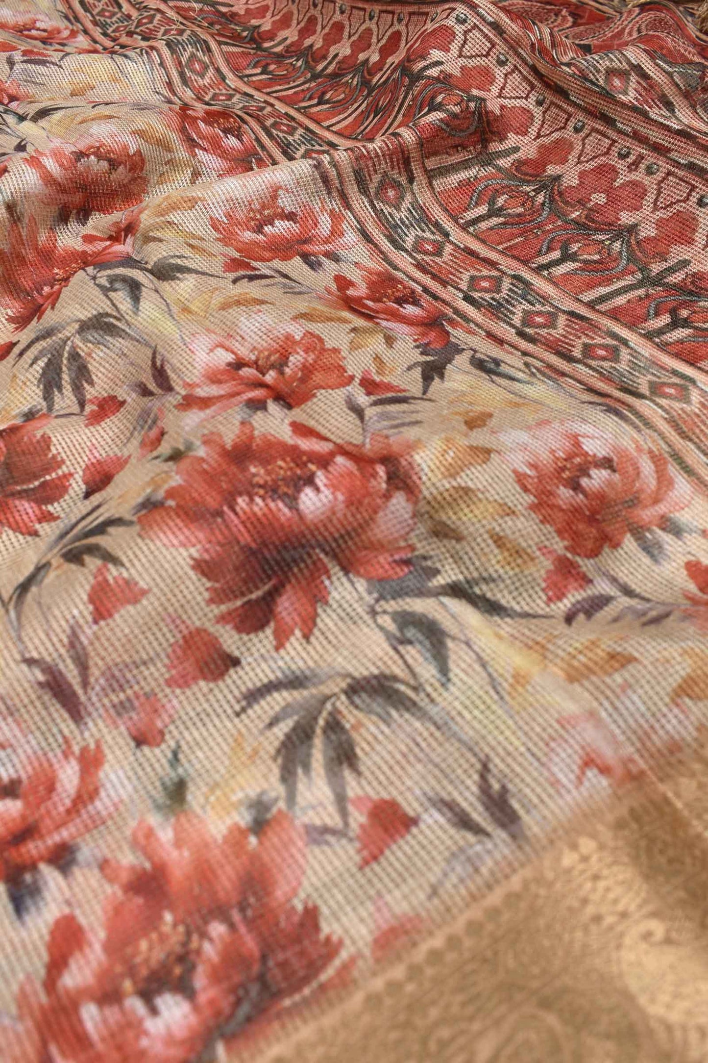 Sandal Super Net Floral Digital Print Fancy Border Saree
