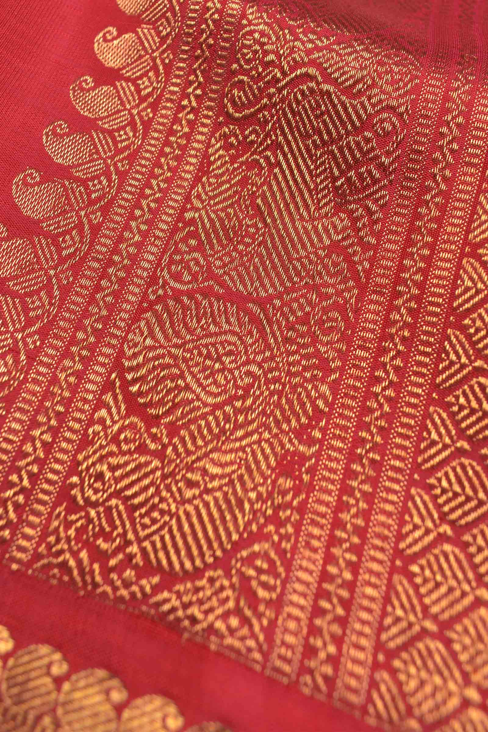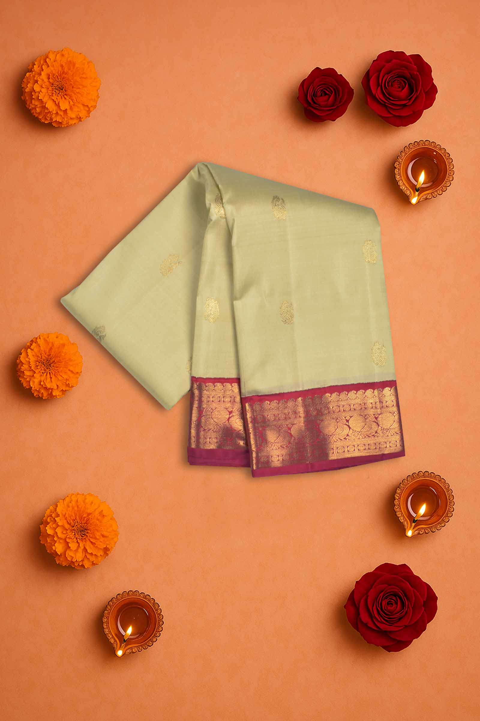 Sandal Light Weight Pure Silk Mini Peacock Butta Contrast Golden Border Pallu Saree NAA105